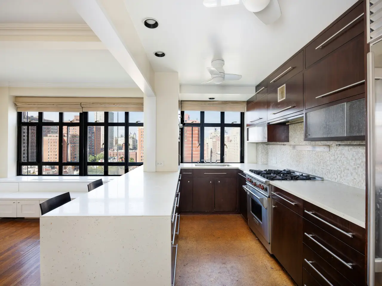 Large windows with East River & Central Park views