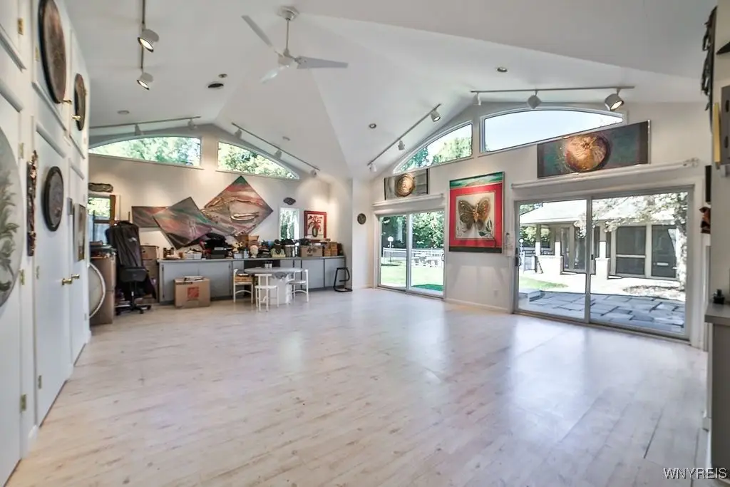 Don't miss this rare opportunity in Snyder! Tucked away in a serene, park-like setting on a private cul-de-sac, this spacious 3-bedroom, 3.5-bath ranch offers exceptional living and entertaining space. The home features a 24' x 64' art studio with soaring cathedral ceilings C/B?B= perfect for creative pursuits or flexible use.Enjoy summer days in the 20' x 40' Gunite pool, or relax in the 3-season room (15' x 17'). Entertain guests in the formal dining room, complete with a bar and kitchenette, or cook with ease in the fully applianced eat-in kitchen featuring granite countertops and a stylish backsplash.Additional highlights include: Central air conditioning, Abundant built-in cabinetry and storage, Professionally landscaped grounds and Smallwood schools.