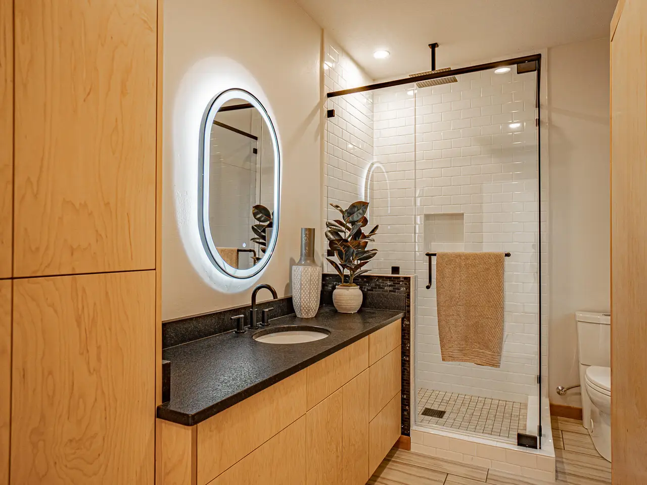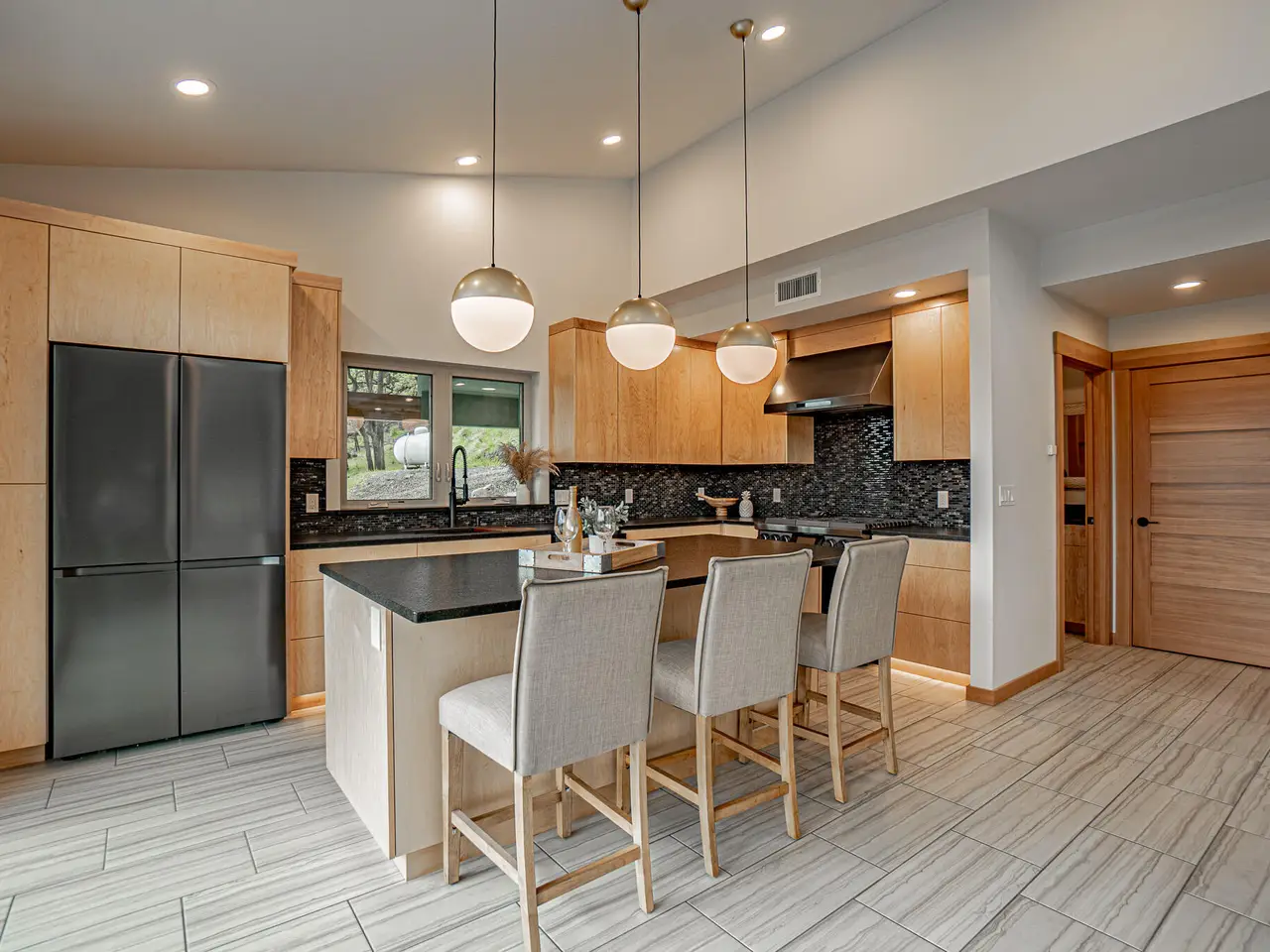 • Porcelain tile in kitchen, bathrooms, and great room
