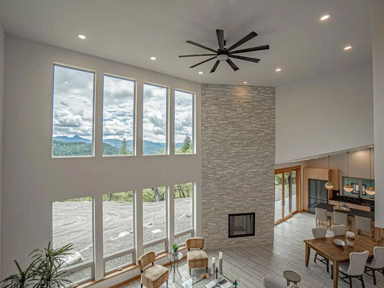 • Stone fireplace to the ceiling