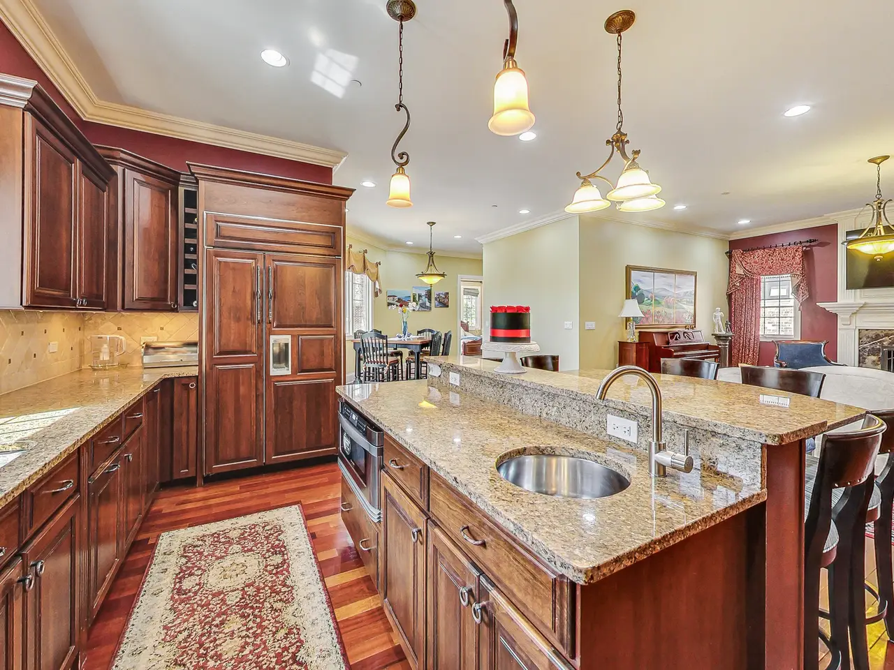 SUITE NEWS: In the field of Luxury Homes THIS ONE has the most SUITES. New construction in '07 and a true custom build where the current and only owners hired the designer/builder and commanded the highest quality, created the perfect floor plan to include a continuous flow from the front veranda through to a most enjoyable and creative patio, grill station and custom luxury exterior garage(appears to be another home) AND can you imagine that all of those exterior walks, verandas, patios are HEATED? Live it here, it's real. It's good to be FIRST...1st floor library/office; 1st floor Suite, 1st floor Custom Amish Mudroom and laundry (one up too); 1st floor family room with custom Butler's Pantry, two 1st floor full baths, a rarity. Much to see in the gourmet kitchen, craftsmanship to experience in every room. UP is completely luxurious as well featuring all 4 bedrooms as suites, the primary boasts a balcony, and there is a FULL second floor laundry room. Lower level includes an extra bedroom and full bath, a full media center, a podcast/recording studio of acoustic integrity, a ballet/exercise room, heated floors and one of 3 fireplaces. You have to wait to occupy this one and it will be worth it as you will be residing in our town's most desirable In Town/""Golden Triangle Area"". Note that there is also an outdoor fireplace, garage EV charger, and extra parking pad.
