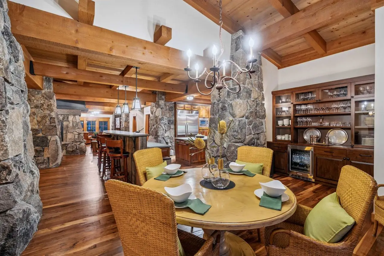 OPEN HOUSE GUESTS MUST PRE-REGISTER. Welcome to The Overlook Lodge: A Classic Tahoe Estate in the Heart of the Private & Gated Lahontan Community & Golf Club in Truckee, California. Located in a sun-drenched cul-de-sac within Truckee's prestigious private Lahontan Golf Community. Offering sweeping views of Lookout Mountain and the 17th fairway, this mountain retreat was designed to elevate everyday living with enduring craftsmanship and thoughtful luxury. From the moment you arrive, the home's presence is undeniable. Architectural stone pillars rise inside and out, blending into native landscaping and an alpine backdrop. Soaring timber beams and custom ironwork hint at the meticulous detail within. Built in 2002 and spanning 5,936 square feet, this 5 bedroom, 6.5 bathroom estate was crafted for connection, celebration, and comfort. Inside, walnut hardwood floors stretch across the main level, softened by Sierra antique stone inlays and warmed by hydroponic radiant floor heating. The great room is anchored by a dramatic four-sided stone fireplace and a wall of picture windows that frame the surrounding mountain landscape, filling the home with natural light and a grounded sense of place. A chef's kitchen offers commercial-grade Kitchenaid appliances, a Viking range, solid granite counters, a dedicated ice maker, and two dishwashers. Solid Alder cabinetry and an oversized island provide warmth and workspace, while a custom buffet and bar with beverage fridge offer the perfect extension for effortless entertaining. A sunny breakfast nook adds comfort for everyday meals and morning coffee. Two large front-facing viewing decks offer sweeping views of Northstar and the high Sierra, while the rear patio and lanai invite four-season outdoor living. A built-in outdoor kitchen, firepit, and private hot tub with mountain views complete the experience. Thoughtfully designed for flexibility, the home features two private primary suites, one with dual his and her bathrooms. A spacious family/media room on the lower level features a full refrigerator and theater-style setup powered by a 26-speaker Sonos system, perfect for game-day gatherings and movie nights. Practical luxury continues with a giant laundry room, a separate pantry, and a heated two-car garage with built-in cabinetry, hanging racks for ski and boating equipment, and a finished attic space above for storage or future conversion. A smart lighting system with an easy all-on/all-off functionality simplifies daily living on the upper levels. The