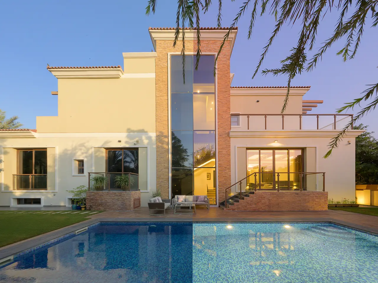 Betterhomes proudly presents this stunning 5-bedroom contemporary villa located on a private cul-de-sac within Wildflower, Jumeirah Golf Estates, which sits on a large private plot. - 5 En-suite Bedrooms (2 Masters with Balconies) - 7 Bathrooms - Built-Up Area: 7,800 sq. ft. - Plot Size: 10,499.55 sq. ft. - Large Mature Garden - Full-Size Swimming Pool - Quiet Cul-de-Sac Location - Double-Height Entrance - Basement with Pantry, Bathroom & Conversion Potential - Elevator with Custom Mashrabia Interior - Closed Scavolini Kitchen + Utility - 2 Study Rooms | Powder Room | Maid’s + Driver’s Rooms - 2 Car Garage + 2 Car Driveway - Vastu Compliant This expansive, light-filled villa offers an exceptional sense of space and scale, set on a generous 10,500 sq. ft. plot with a built-up area of 7,800 sq. ft.—providing ample room for comfortable family living and entertaining along with plenty of storage areas. Designed by a European interior designer from the planning stage through completion, the villa features elegant, high-end finishes such as Italian marble flooring, imported sanitary fittings, solid wood front door, and bespoke detailing throughout. A private lift, a full-size swimming pool, and a sprawling, mature garden, one of the largest in JGE, further elevate the property’s appeal.