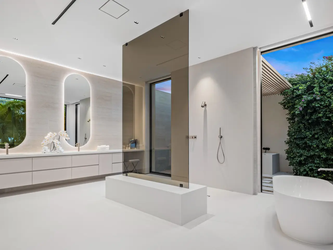 Meticulously designed, 35 Spoonbill Road is a new six-bedroom Point Manalapan estate blending museum-like minimalism with warm luxury. With 111 feet of private Intracoastal frontage and uninterrupted water views, privacy is unparalleled. Ocean Blue Custom Homes delivers a one-of-a-kind residence with an olive tree atrium, dual kitchens, knife-edge pool, outdoor shower garden, and deepwater dock.