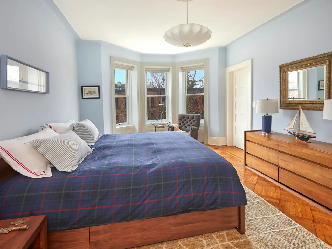 First offer NOT TO BE MISSED renovated and restored to perfection in PLG!!! Built in 1910 and rich in period detail, this 20 foot wide 45 feet deep one family limestone townhouse set on a 100 foot deep lot located in the premier street of the Historic Prospect Park Lefferts Gardens checks all the boxes. This stunning home enjoys a welcoming facade, a charming vestibule with original stained glass details. This careful attention to details is evident in every aspect of the renovation throughout the house. All the walls, inlaid parquet floors, pocket doors, window frames, Brazilian Tiger mantel, stained glass skylight, have been carefully restored to their original grandeur. With its graceful layout and 2 zone air conditioning and heating system, this beautiful home in wonderful move in condition, still retains an awareness of its historic life, and awaits your arrival. This is truly a "turn Key" property. Parlor floor: At the parlor level, a gracious foyer welcomes you to a charming sunlit living room with 10 foot ceilings and triple bay windows looking out onto the lovely Midwood Street. The living room flows easily to the adjacent dining room, which then gives access to the kitchen/family room through stunning glass-stained oak pocket doors. The fabulous kitchen enjoys sparkling new top of the line appliances including Viking stove and refrigerator, Bosch dishwasher and a zephyr hood vent. The kitchen counters as well as the island counter are Carrera marble covered. The spacious, eat-in kitchen/family room combination with access to a large dining deck and a lovely, landscaped garden. Second floor: The large primary bedroom with two large windows facing Midwood Street, is full of light, has a beautiful newly renovated bathroom with a double sink and rain shower. The oversized walk-in closet is a masterpiece of organized space. The two additional bedrooms share a beautifully renovated hall bathroom with a tub and a great skylight. The common hall at this level also enjoys a colorful stained-glass skylight. Basement: The windowed English basement with concrete flooring throughout provides a fourth windowed bedroom. The large space is currently used to serve multiple activities, a den with exercise equipment, a pantry, a storage closet, mechanical closet and a beautifully large Spanish tiled bathroom and a full-sized washer/dryer. The proximity to Prospect Park and the convenient commute to Manhattan via the B/Q and 2/5 trains has made Prospect Lefferts a destination for homebuyers seeking convenience, comfort, and value.