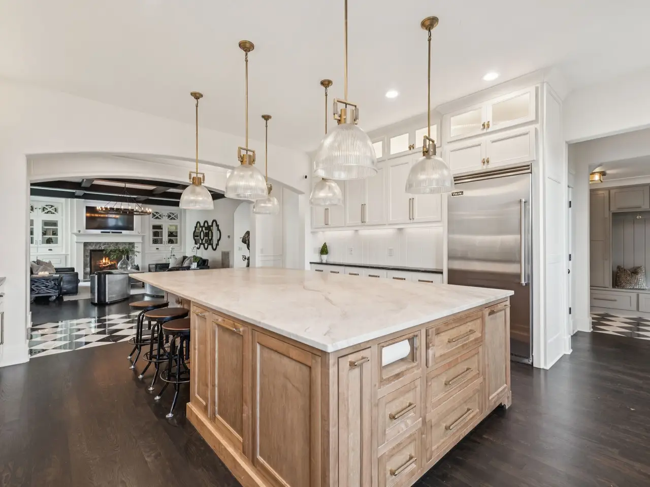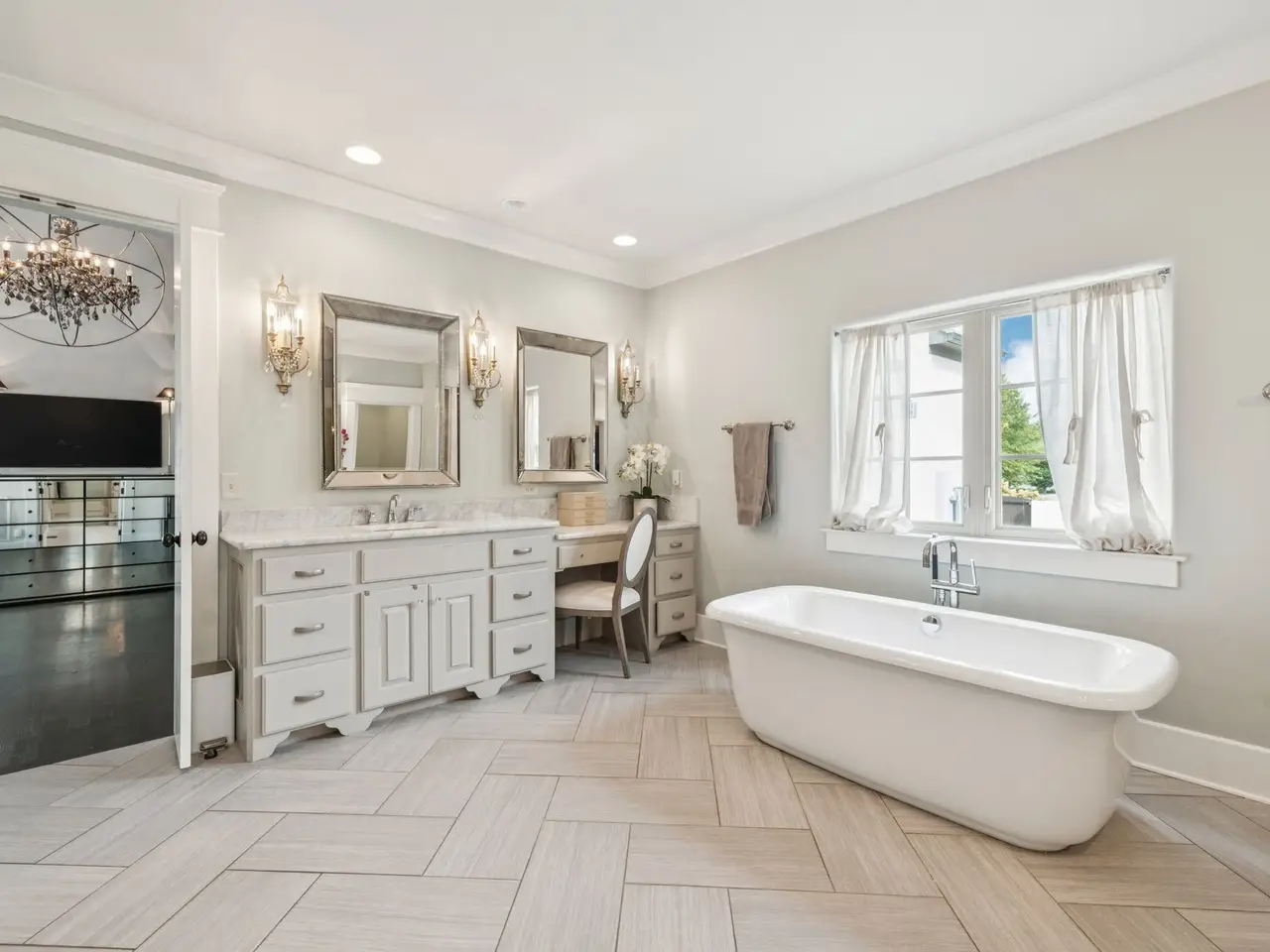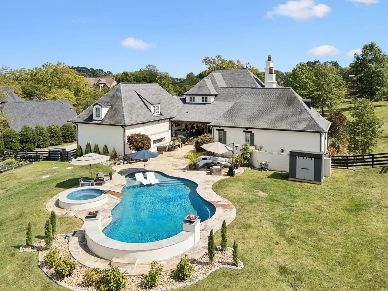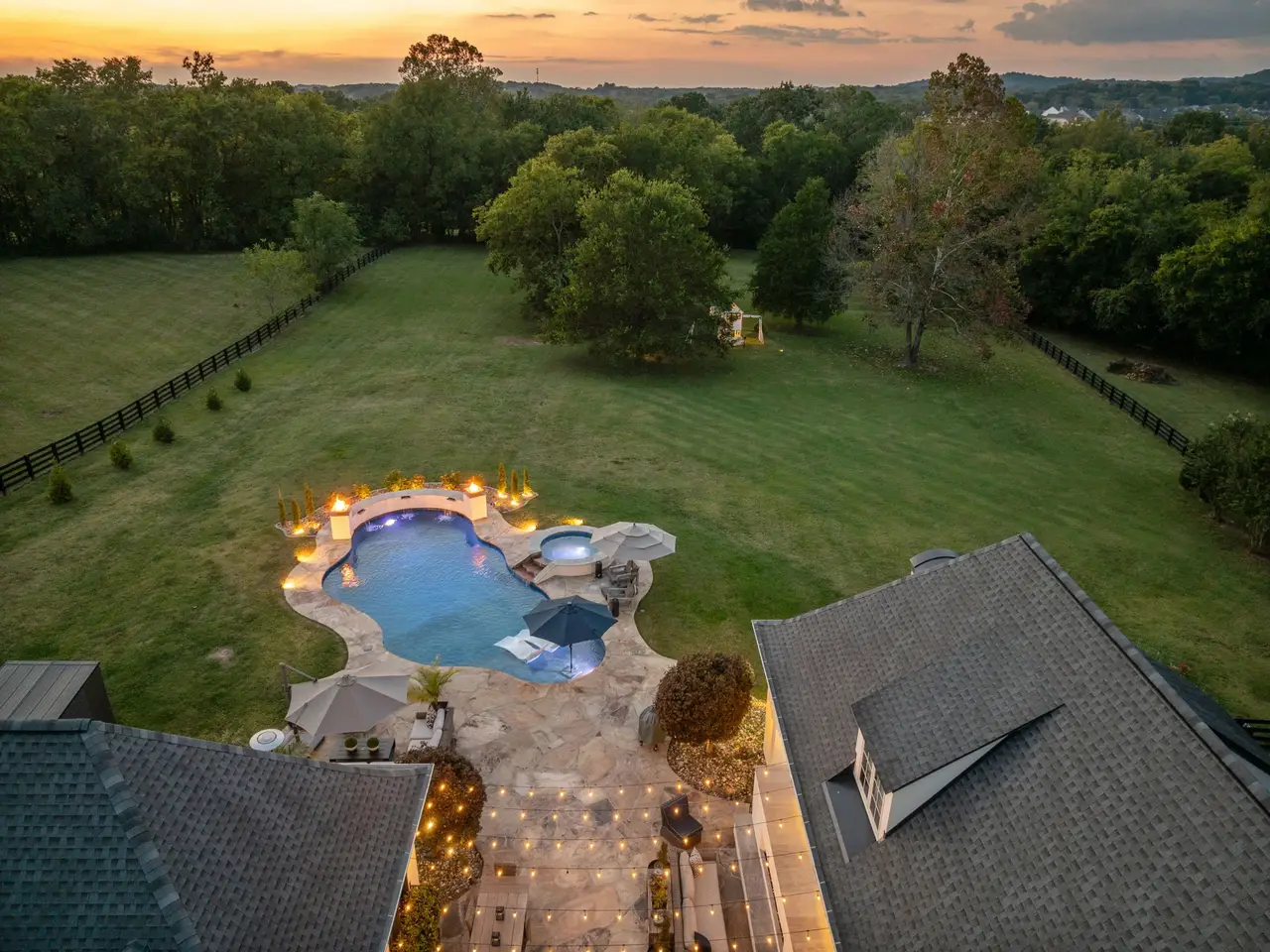 Experience refined country living on 3.39 acres with a private creek, gated entry, and incredible outdoor amenities that create a true resort-style retreat. Extensively renovated, this property pairs timeless architecture with thoughtful modern updates. Inside, the home welcomes you with a dramatic foyer showcasing checkered tile and wainscoting. The main level offers elegant spaces for gatherings, including formal living and dining rooms with gleaming hardwood floors. Arched openings, custom trim, and statement lighting carry throughout, while the coffered-ceiling family room features built-ins and a stone fireplace, flowing seamlessly into a chef's kitchen. The kitchen is designed for serious cooks and entertainers alike. An oversized island, wet bar, dual sinks, and a full suite of luxury appliances anchor the space--Fisher & Paykel refrigerator/freezer columns, an ILVE Italian dual-fuel range with gold accents, stainless vent hood, dual dishwashers, walk-in pantry, and a fluted glass buffet add both function and style. The primary suite on the main floor provides a private haven, complete with two walk-in closets, a marble shower, soaking tub, and dual vanities. A future bar area can be customized to your taste. Upstairs, one wing hosts a state-of-the-art media room with 11.2 surround sound and flexible storage, while the other offers three bedrooms, two baths, and a versatile bonus area. The grounds are exceptional, offering spaces for both quiet enjoyment and grand entertaining. A covered porch and fireplace patio overlook a sprawling fenced yard with raised garden beds. The pool complex features a sun shelf, integrated spa, and dramatic fire features. A separate creekside firepit provides an intimate escape. Additional highlights include a three-car garage, extended parking, and mature trees lining the private drive. Just minutes from Arrington Vineyards and Franklin, and within easy reach of Nashville.