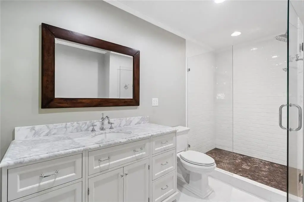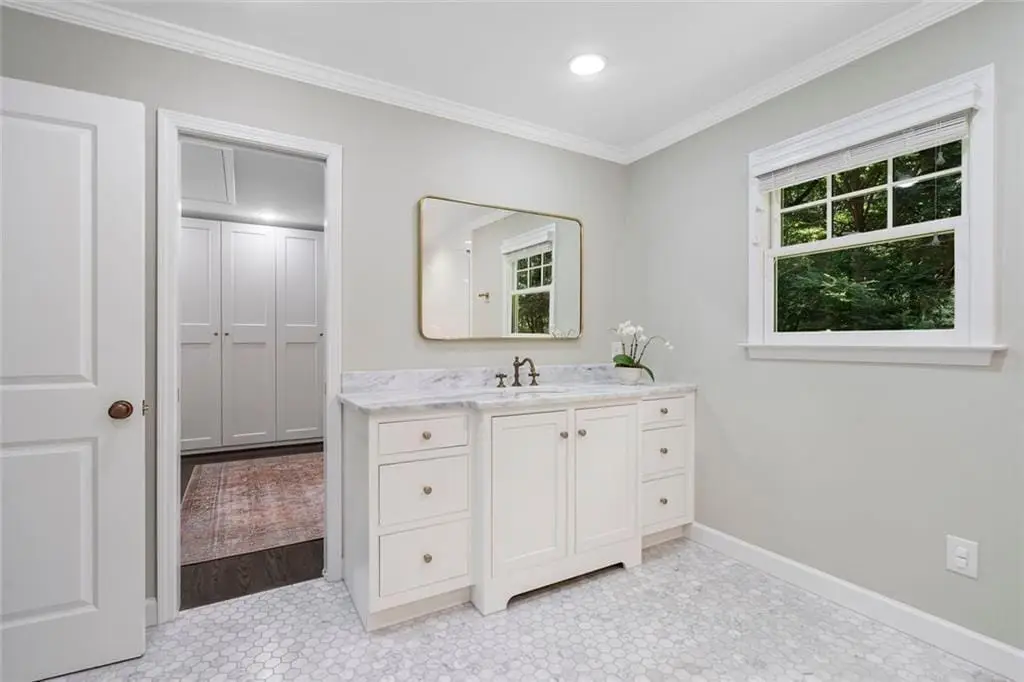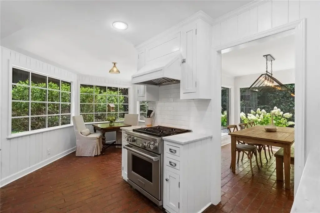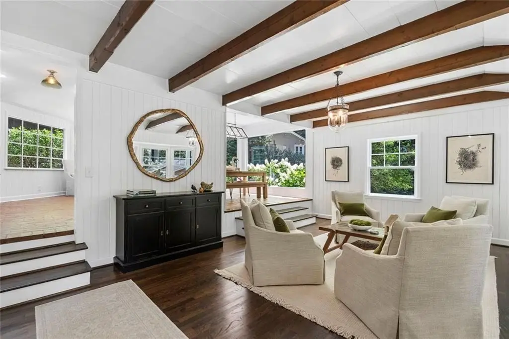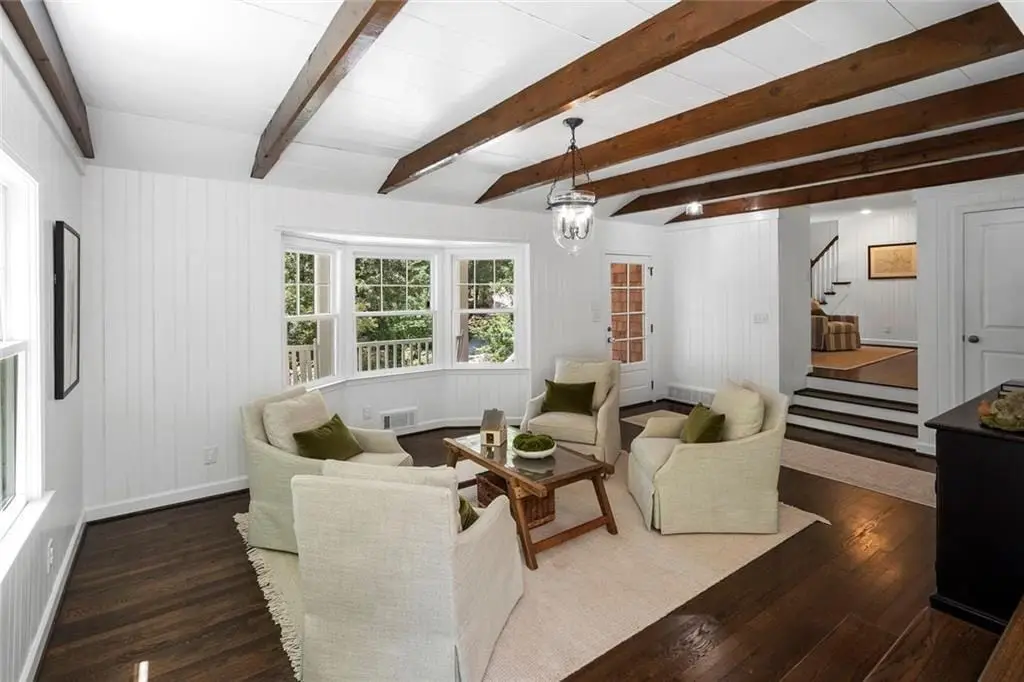 In the heart of Chastain Park, this exquisite Hamptons-inspired renovated home embraces original Earl McMillen-designed charm. Nestled on a quiet tree lined cul-de-sac street, this sophisticated home tucks into a private acre. A charming bluestone front porch leads into a main level living room, with beamed ceilings, oak paneling, and hardwood floors. The kitchen features marble counters, Wolf range, original brick floors and custom steel windows in the breakfast nook. This seamlessly flows into the spacious living room and dining area, as well as the den, all ideal for entertaining and everyday living. Delightful living areas with tons of natural light, sweeping views of nature, and lots of details that add character. The main level also has original primary suite and en-suite bath, and additional bedroom and full bath in hall. The expanded second story addition features new primary suite with en-suite bathroom, double vanities with marble counters, and oversized closet with built-ins. Additionally, two en-suite bedrooms and a bonus room drenched in sunlight. Lower level daylight flexible living area, bath, and laundry room. Professionally landscaped and fully fenced, gated front entry, large walk-out patio off kitchen, whole-house generator, Rain Bird irrigation system, and detached 2-car garage with storage and EV charger capacity. Located in the sought after Jackson Elementary School District and just minutes to schools, the PATH, amphitheater, horse park, NYO ballfields, tennis, golf, pool and playground. Easy access to Sandy Springs, Buckhead, and major highways.