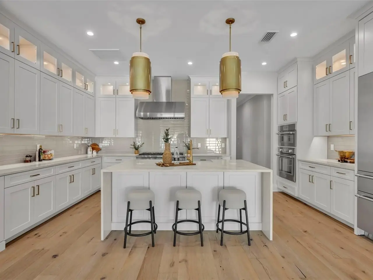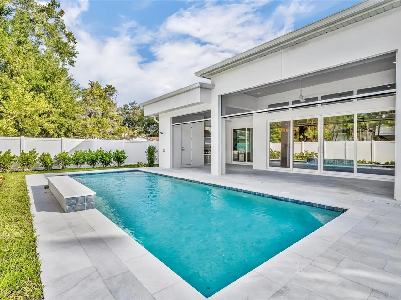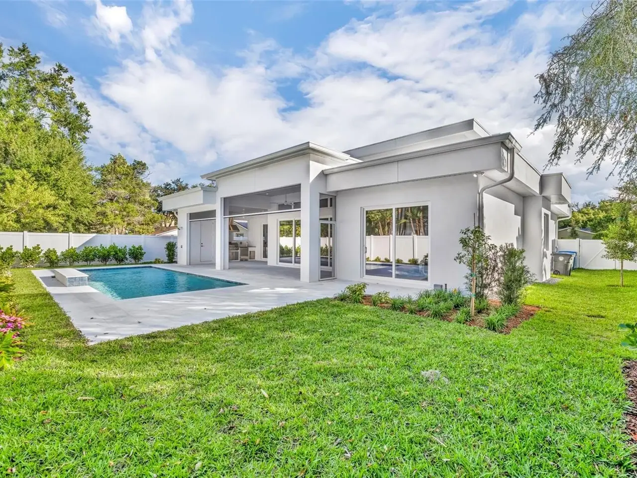 Introducing a stunning new custom home by Ellsworth Gallimore and Butler Ridge Development, ideally situated in a prime Winter Park neighborhood. This residence combines timeless elegance with modern luxury, showcasing exceptional design and craftsmanship throughout. The thoughtfully designed home features a marble front façade and professional landscaping. Inside, you’ll find an open, bright layout with high ceilings, wide-plank white oak floors, oversized picture windows, and refined crown molding. A welcoming flex space—perfect as a sitting room or den—greets you at the entry, across from another room ideal for a private office. The great room, at the center of the home, offers 12-foot ceilings, a sleek fireplace, and a full wall of sliding glass doors that open to the resort-style backyard. Designed for both entertaining and daily living, the open-concept kitchen, dining, and living areas flow seamlessly together. The chef’s kitchen impresses with a striking waterfall island, premium Thermador appliances, a dual-fuel range with a 6-burner gas cooktop, a third oven plus convection microwave, and an expansive custom pantry. A stylish mudroom and decorative laundry room complete the main level’s amenities. The primary suite on the first floor features direct access to the pool, a spa-inspired bath with a soaking tub, multi-spray shower, dual sinks with a large vanity, and a spacious custom walk-in closet. Upstairs, a loft-style bonus room connects to three additional bedroom suites, each with custom closets and ample storage. Outdoor living includes a saltwater pool with an elegant fountain feature, marble pavers, a summer kitchen with a built-in grill, sink, and beverage fridge, an outdoor bathroom, and a lush grassy area perfect for play or pets. Additional highlights include a two-car garage and zoning for top-rated schools—Lakemont Elementary, Maitland Middle, and Winter Park High. Walk to the Winter Park YMCA and Phelps Park, and enjoy being just minutes from vibrant downtown Winter Park. Elegant design, modern luxury, and a prime location—this exceptional new home offers the very best of Winter Park living.