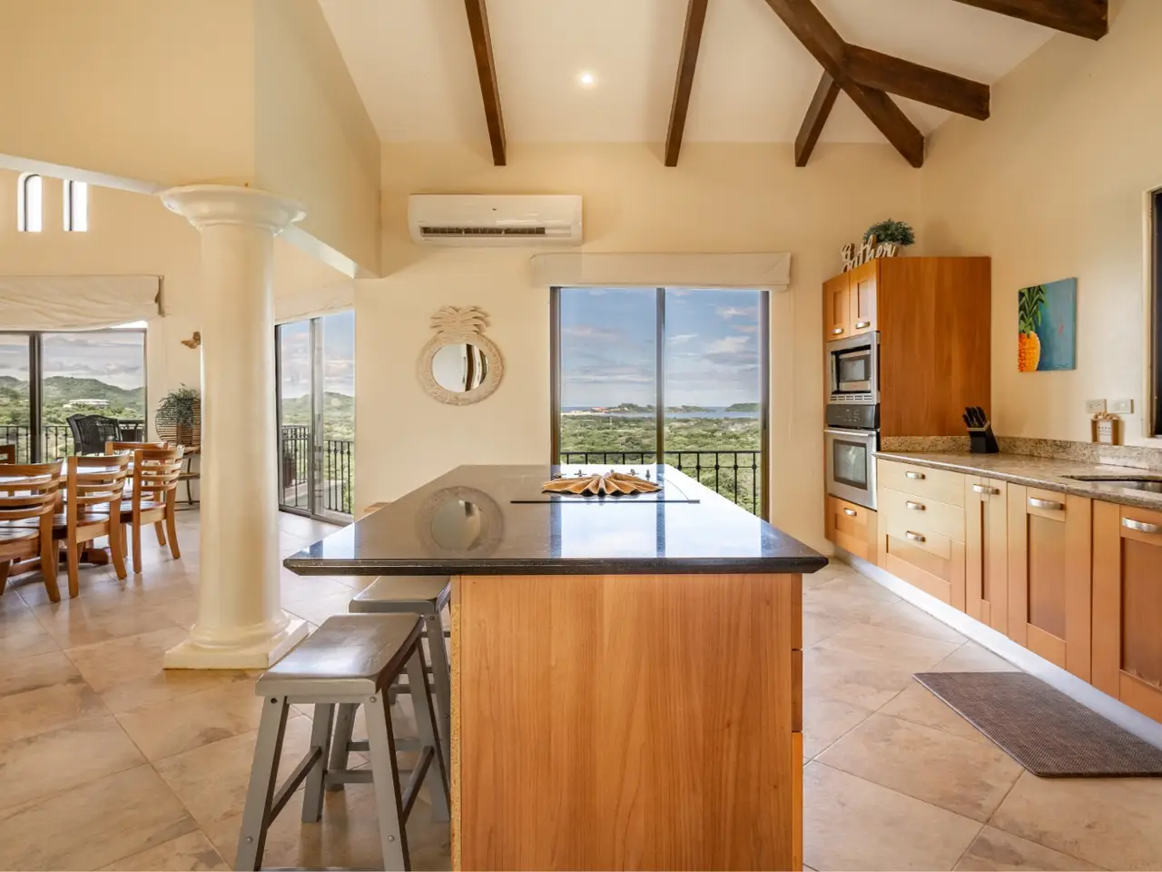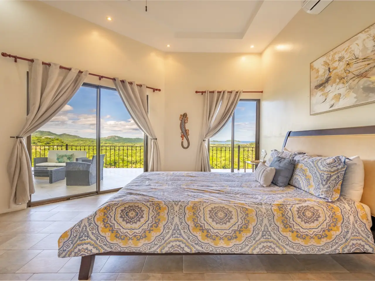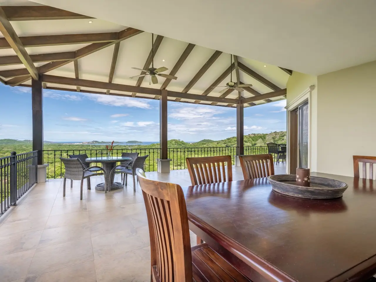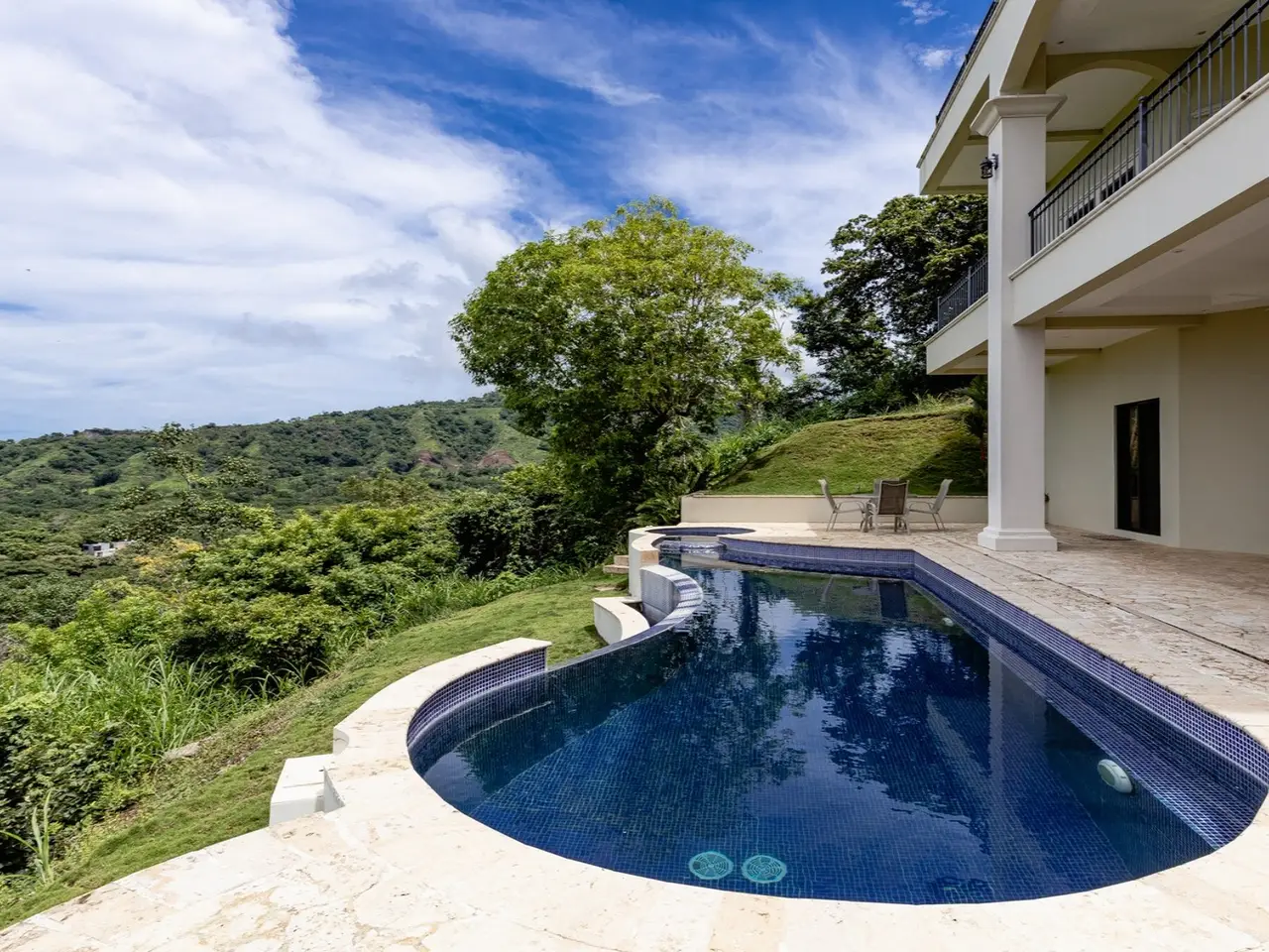 Welcome to Casa De La Promesa — a stunning 5-bedroom, 5.5-bath retreat located in the lush hills of Vistas de Flamingo, in Potrero. Casa de la Promesa is an exquisite Mediterranean-style home that offers a rare combination of privacy, elegance, and natural beauty. This multi-level 5330 sq ft villa is perfectly situated to capture breathtaking panoramic views of the Pacific Ocean, the surrounding mountains, and the green valley below. The home’s classic architecture, with its red-tile roof and arched lines, exudes timeless charm and sophistication from the moment you arrive. Inside, the spacious interior is filled with natural light and warm finishes. The open-concept design flows effortlessly from the gourmet kitchen to the expansive dining and living areas. The kitchen features granite countertops, custom hardwood cabinetry, stainless-steel appliances, and a large center island—ideal for casual gatherings or gourmet entertaining. The adjoining great room is framed by vaulted ceilings with exposed wood beams, creating a bright and inviting space that blends indoor comfort with the beauty of the outdoors. Just beyond the living room, an expansive covered terrace wraps gracefully around the back of the home, seamlessly blending indoor and outdoor living. From this elevated vantage point, take in breathtaking views of the Pacific Ocean, the Flamingo Marina, rolling mountains, and the picturesque farmland below — a truly captivating backdrop for everyday living and elegant entertaining. The home offers 5 generously sized bedrooms and 5 and a half bathrooms, each thoughtfully designed for comfort and privacy. The luxurious master suite includes a private balcony, a spa-inspired bathroom, and large windows that capture stunning ocean and mountain views. Guest suites also enjoy access to outdoor terraces or patios, ensuring every guest has a space to relax and unwind. One highlight of Casa de la Promesa is its resort-style infinity pool and sun deck, which seamlessly integrate into the surrounding landscape. Next to the pool area you will find a mature mango and lime tree! Whether you're enjoying a morning coffee, an afternoon swim, or a sunset cocktail, this serene outdoor setting is the perfect place to take in the sights and sounds of Costa Rica’s natural beauty. The lot is 5156m2. The home also features multiple covered terraces for al fresco dining, a gated driveway with ample parking, air conditioning throughout, and high-speed internet. Located just a short drive from Playa Flamingo, Playa Potrero, and the new Flamingo Marina, Casa de la Promesa is ideally positioned to enjoy the best of Costa Rica’s Gold Coast. Whether you’re seeking a permanent residence, a luxurious vacation home, or a high-end rental investment, this exceptional property delivers a lifestyle of tranquility, comfort, and panoramic beauty. Ready to experience the luxury and tranquility of Casa De La Promesa for yourself? Don't miss out on this incredible opportunity! Contact us today to book a private showing. Your dream home awaits!