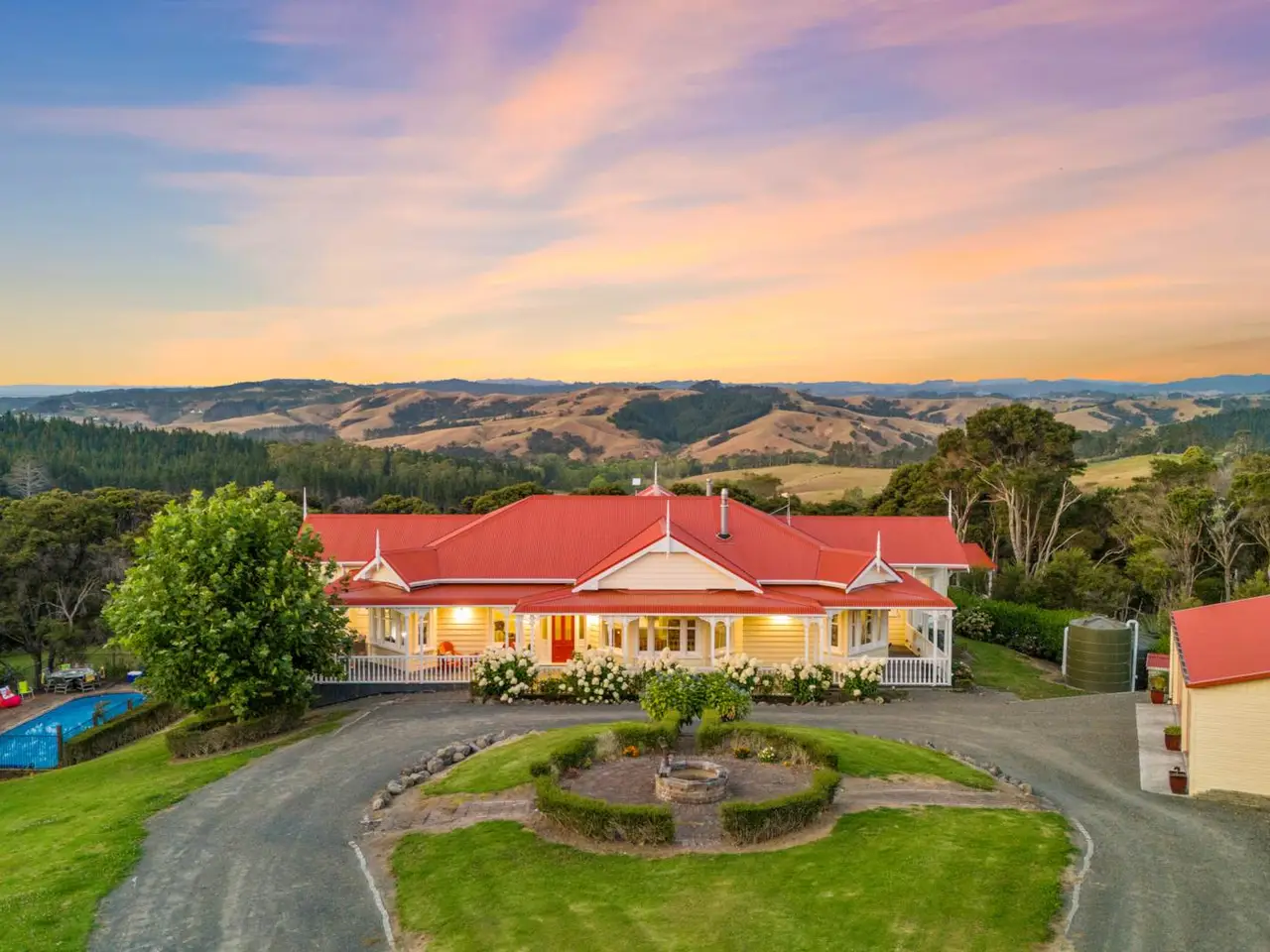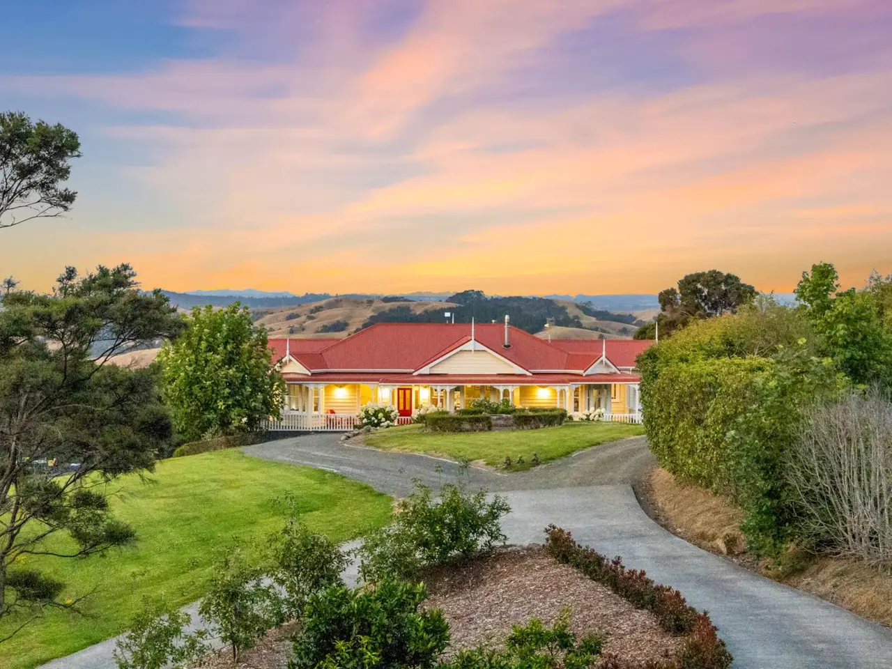 Walking through the gate and looking down the 100-metre drive, you will be captivated by this extraordinary home. This award-winning modern re-creation of a 1900’s era Victorian Villa, resplendent in its beauty, leaves a lasting impression on everyone who visits! It's more than just a home; it's a dream come true, blending contemporary construction with traditional character and the endearing charm of yesteryear!This 6-year-old Supreme Winner of the NZ Grand Designs House of the Year Award bears the exclusive hallmark of bespoke luxury and impeccable craftsmanship. Driving down the concrete driveway past the two-bedroom guest dwelling-The Lodge-the magnificent scale of the villa emerges.Private and established on more than three acres of native bush and landscaped gardens, the villa’s elevated position offers views of the McKenzie Ranges, Kaipara Harbour, and idyllic rural vistas.The luxurious, richly textured interior décor exudes glamourous opulence throughout, with plush carpet underfoot, gallery hallways, 3.6 m high ceiling, feature stained glass windows & bejewelled elegant chandeliers overhead. The layout is spacious & grand. Built to modern standards, the home features a heat pump, double glazing & solar power, providing energy-efficient, comfortable living all year round.The hub of the home is the epic open-plan designer kitchen/dining room with a towering Cathedral ceiling. The awe-inspiring rural views from the enormous kitchen picture frame window take your breath away. The designer kitchen features bespoke imported cabinetry, a Belling Gas Hob, a Wagener coal range & double fridges. Access opens out onto the entertainment area with steps leading down to the swimming pool & deck. A spa pool with a covered rotunda is also included.The family lounge, with its wood burner fire, is an intimate & relaxing space for the whole family. The library doubles as a media room, secondary living, or extra bedroom. The family bathroom features a claw-foot bathtub & pedestal basins.The five large bedrooms include the Master Suite with a walk-in wardrobe and ensuite bathroom.The Lodge accommodates extended family living or additional income opportunities, e.g., Air BnB.A large, near-new triple Versatile garage offers excellent storage & vehicle parking.
