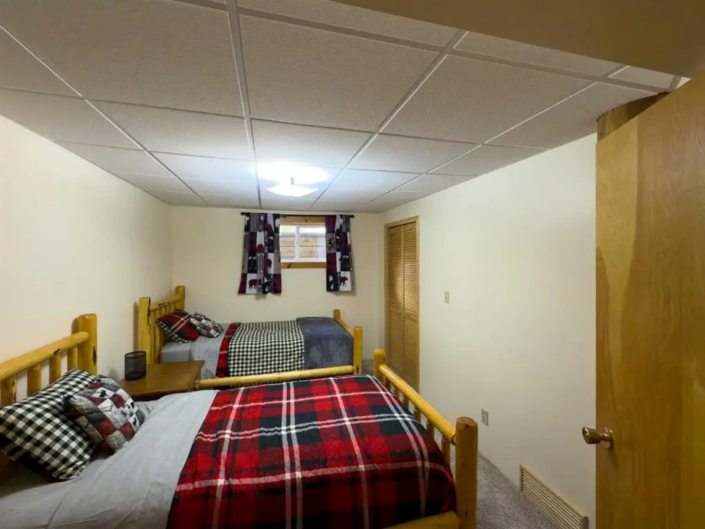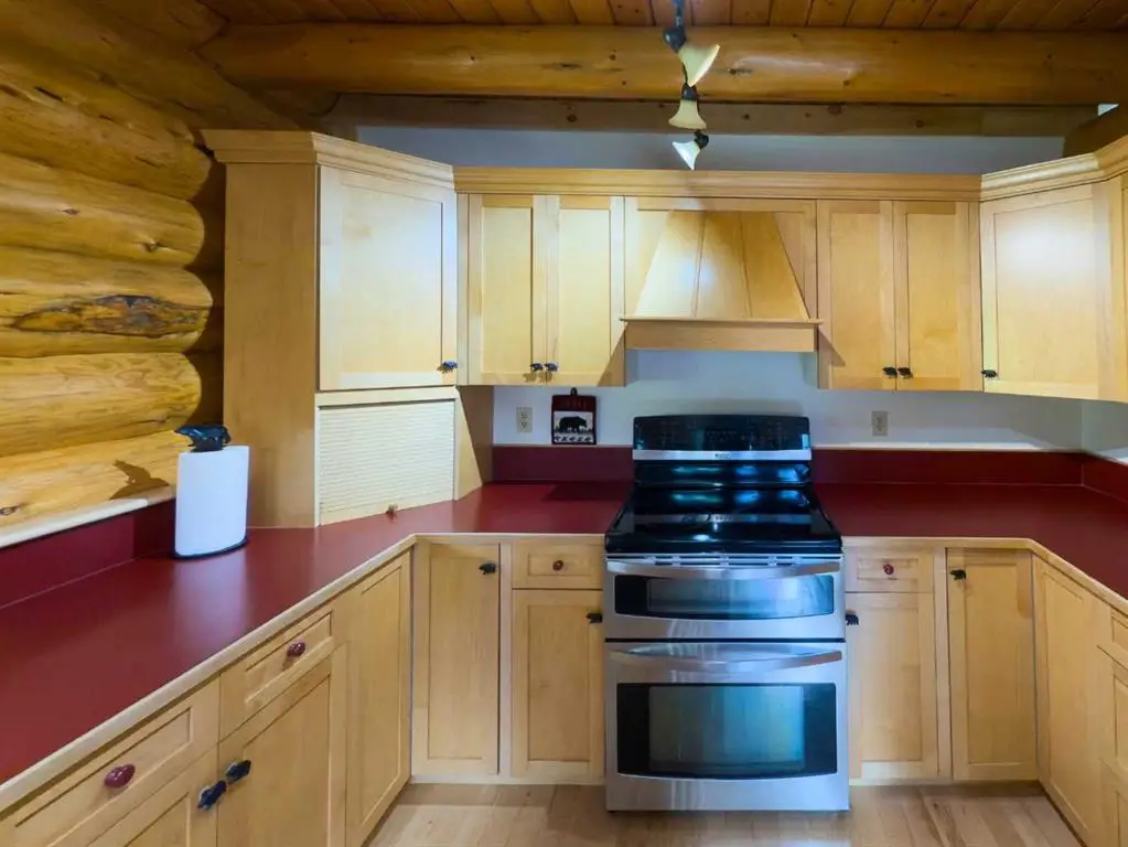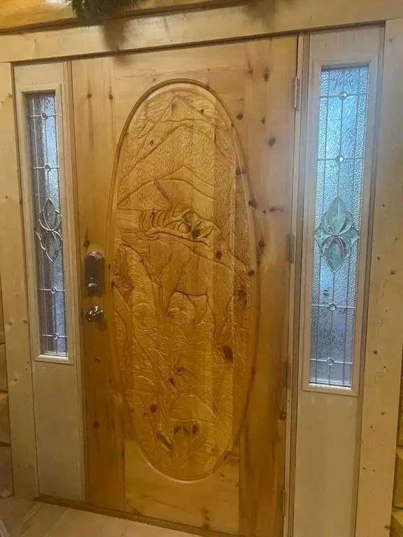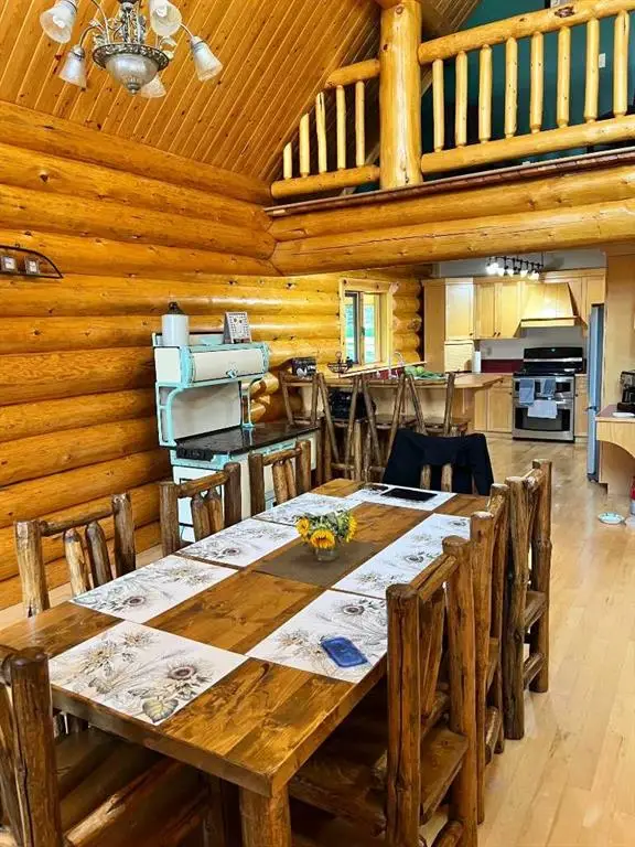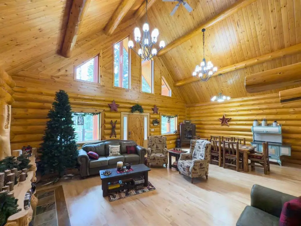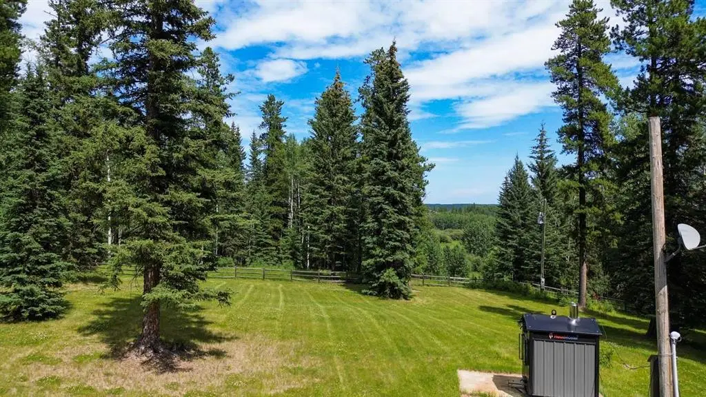 Rarely does one find a property such as this.....offering PRIVACY and QUIET SOLITUDE while still being convenient to amenities. Surrounded by crown land and on a no thru road, this oasis is located approximately 30 kms west of Rocky Mountain House. The private driveway with your own bridge crosses the Chamber Creek that flows through the property, then up the hill to the yard site. The custom built scribed log home offers 1790 square feet of beautiful living area. The main floor offers kitchen, den (currently being used as a bedroom), 3 piece bathroom, storage/boot room conveniently located just inside the main front entrance and a spacious great room with vaulted ceilings and maple hardwood floors. The upper level offers the primary bedroom with walnut flooring, a walk in closet and a 4 piece ensuite complete with free standing bath tub for those relaxing bubble bath soaks. The lower level has 3 bedrooms, family room with wood burning stove, the laundry room, 4 piece bathroom and mechanical room. This beautiful home has covered decks front and back for enjoying the fully landscaped yard with cedar fencing and retaining walls of limestone quarry rocks. The wood fired boiler provides heat for the house, with a propane furnace back up heat source. The 24' x 30' log barn with metal roof is complete with box stalls, tie stalls, tack room and upper loft...just waiting for your equine friends!! There are three stock waterers, corrals, a 90' x 30" calving shed and two water wells on the property ...all set up for your livestock. And the grass...it is belly deep and lush!!! Words truly cannot describe this property...you will not be disappointed!! Book your private viewing today!!