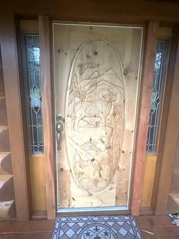 • Scribed log home with maple and walnut flooring