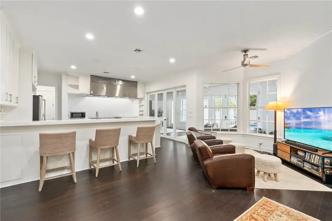 Rare opportunity to own this oceanside gem! Single-story concrete block home. 4 bedrooms + den. Separate large cabana guest suite w/ den & kitchenette. Beautifully renovated throughout. Spacious chefs kitchen w/ large bar & wine closet.3 separate areas perfect for entertaining! Large courtyard w/ heated/cooled pool. Recent updates: new kitchen, hardwood floors, electrical, lighting, a/c, paint, custom plantation shutters, appliances, resurfaced pool. A/C 2-car garage. Not in flood zone! Deeded beach access, clubhouse, clay tennis courts, 24 hr guard gate. Sizes are approx/subj to error.