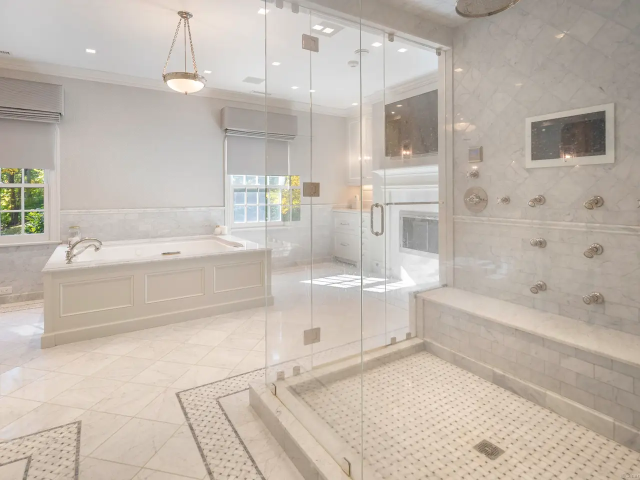 Luxurious primary suite with spa-like bath