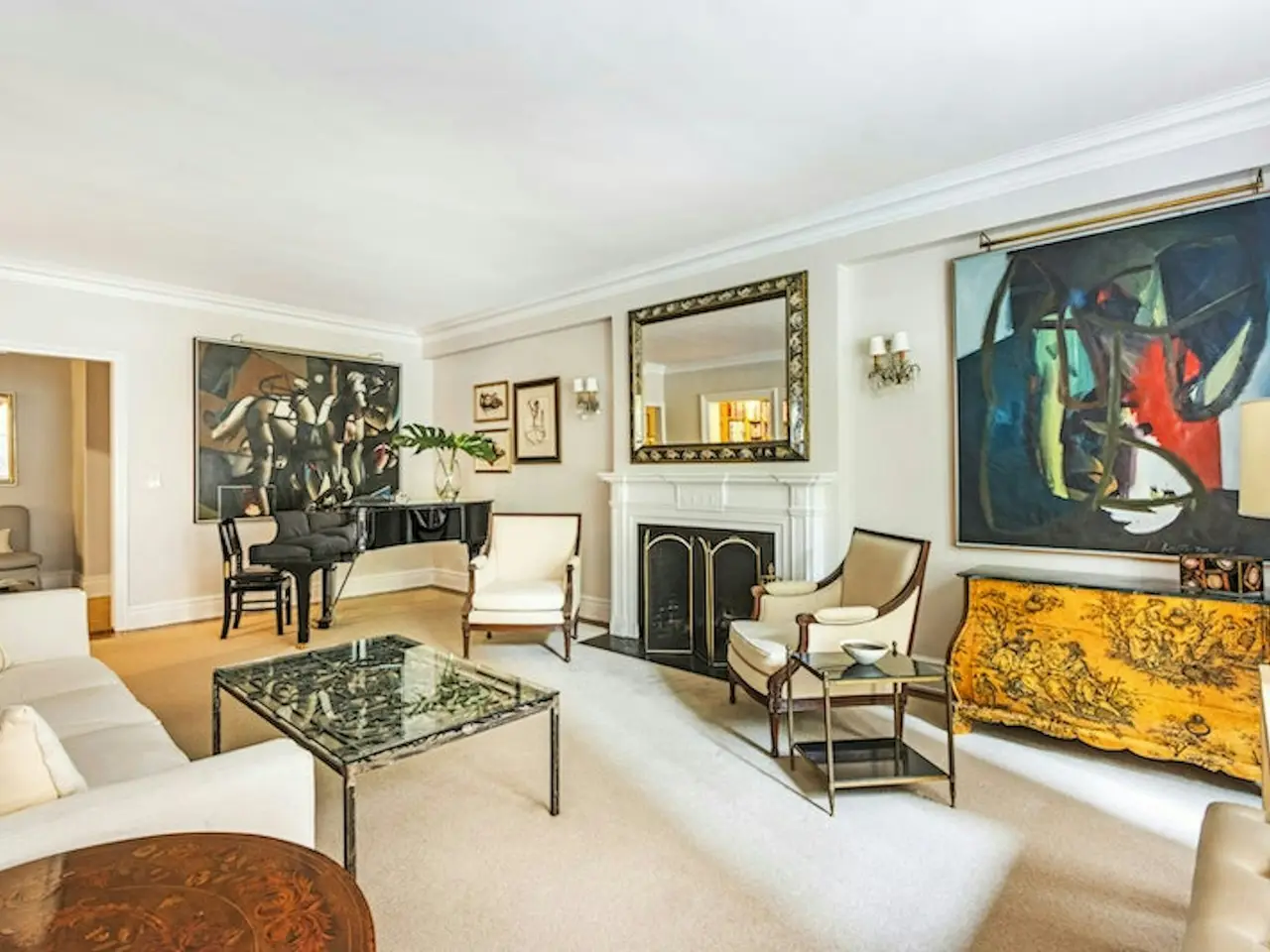 A true oasis of serenity in the city. Move right into this stunning and sprawling nine-room apartment in renovated, stylish condition, in one of Carnegie Hill's loveliest pre-war coops. A jaw-dropping, massive foyer is the centerpiece of this elegant apartment, and leads to a large sunny east-facing living room with lovely proportions, high ceilings, fireplace, crown moldings, and herringbone floors. An adjoining library (or easy fourth bedroom) has beautiful custom built-ins, a decorative fireplace, and a secret door leading to the bedroom hallway and powder room. The second bedroom is also off this hall and shares a full bath with the library. A separate hallway leads to the sunny corner primary, with south and east exposures, and a renovated bath. The third bedroom is currently used as a guest room/study and has a sunny southern outlook over trees. A large, elegant dining room faces south onto 89th street and is large enough for its current use as both sitting room with television and formal dining room seating ten. A beautifully renovated butler's pantry separates the public space from the kitchen, with custom cabinetry, stainless-steel counters, a bar sink, a Sub-Zero refrigerator/freezer, and a Miele dishwasher. Beyond is the beautifully renovated eat-in-kitchen with custom millwork, marble counters, two sinks, two Dacor ovens, a 48-inch Sub-Zero and a six burner Viking cooktop. A lovely banquette is built in and ideal for casual dining or homework. Off the kitchen is a large, windowed laundry room with fabulous storage and a vented Asko washer/dryer. There is also a large maid's room with custom desk and shelving, a built-in twin bed and a newly renovated full bath. With excellent south and east exposures onto Madison Avenue, apartment 2A enjoys wonderful sunlight in all major rooms and verdant tree-lined views. 17 East 89th Street has a full-time doorman, concierge and live-in resident manager. Amenities include a fitness center, playroom, bike room and a stunning furnished roof deck with exquisite Central Park and Reservoir views. Prime location close to Museum Mile and the best shopping and restaurants on the Upper East Side. Pet friendly. 2% flip tax paid by the buyer.