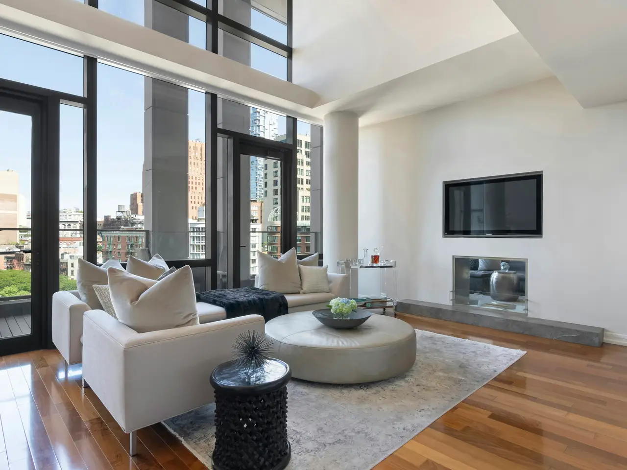 Experience Elevated Living in this 3 bedroom/3 bathroom Condominium in the Heart of Tribeca - 99 Warren Street Welcome to this stunning 3-bedroom, 3-bathroom condominium at the highly sought-after 99 Warren Street. Nestled on the 9th floor, this light-filled residence boasts over 20 foot, dramatic ceilings and floor-to-ceiling windows throughout, offering expansive open views and an unparalleled sense of space. Enjoy serene mornings and sophisticated evenings on your private, covered 308-square-foot terrace-a rare luxury in the heart of Manhattan. The Bulthaup-designed kitchen is a culinary masterpiece, featuring sleek stone countertops and fully integrated Miele and Sub-Zero appliances for a seamless, contemporary aesthetic. Unwind in the spacious living room beside your eco-smart fireplace, blending comfort with modern elegance. The thoughtfully designed split-bedroom layout offers ultimate privacy, with each bedroom featuring open views and en-suite bathrooms. The primary bathroom is beautifully appointed with a soaking tub, a glass-enclosed rain shower, and elegant double vanities. Building Features & Amenities: - 24-Hour Doorman & Concierge - State-of-the-Art Fitness Center with on-site trainer - Full-service Spa - Expansive Indoor/Outdoor Children's Play Area - Conference & Screening Room - Elevated Pine Tree Forest - a unique urban oasis - Sun Deck - Attended Parking Garage Located just steps from Whole Foods and under three blocks from Chambers Street (1/2/3/A/C trains), the location is both convenient and vibrant. Please Note: A monthly assessment of $809.27 is in place through June 2030.