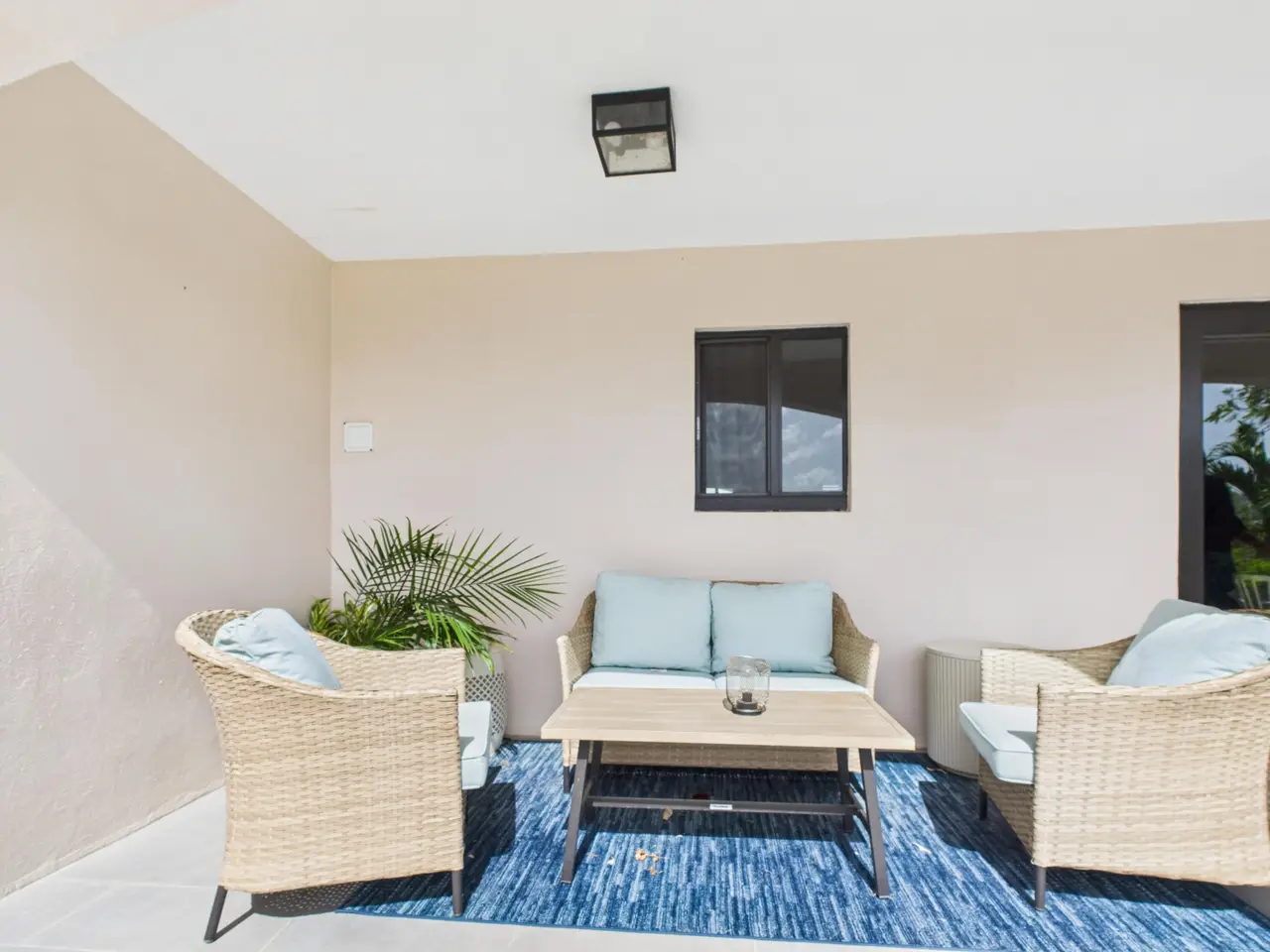 This luxurious home is located in the premier gated beach community of Shoys and features 3 bedrooms and 3 baths upstairs, plus a private 1-bedroom apartment with separate driveway below. Enjoy panoramic views of Christiansted town and The Buccaneer golf course. The interior boasts a spacious open floor plan and a beautiful chef's kitchen with views of Buck Island and the marina. The outdoor living areas seamlessly connect to the interior, creating the perfect setting to relax or entertain. The entire house has been updated and notable features include impact glass windows and doors, modern furniture and an electric gate. Ideally situated just minutes from Shoys Beach, Green Cay Marina, and historic Christiansted with fine dining, shopping, and culture nearby.Fully updated home located in the sought-after gated beach community of Estate Shoys, one of St. Croix's most desirable neighborhoods.