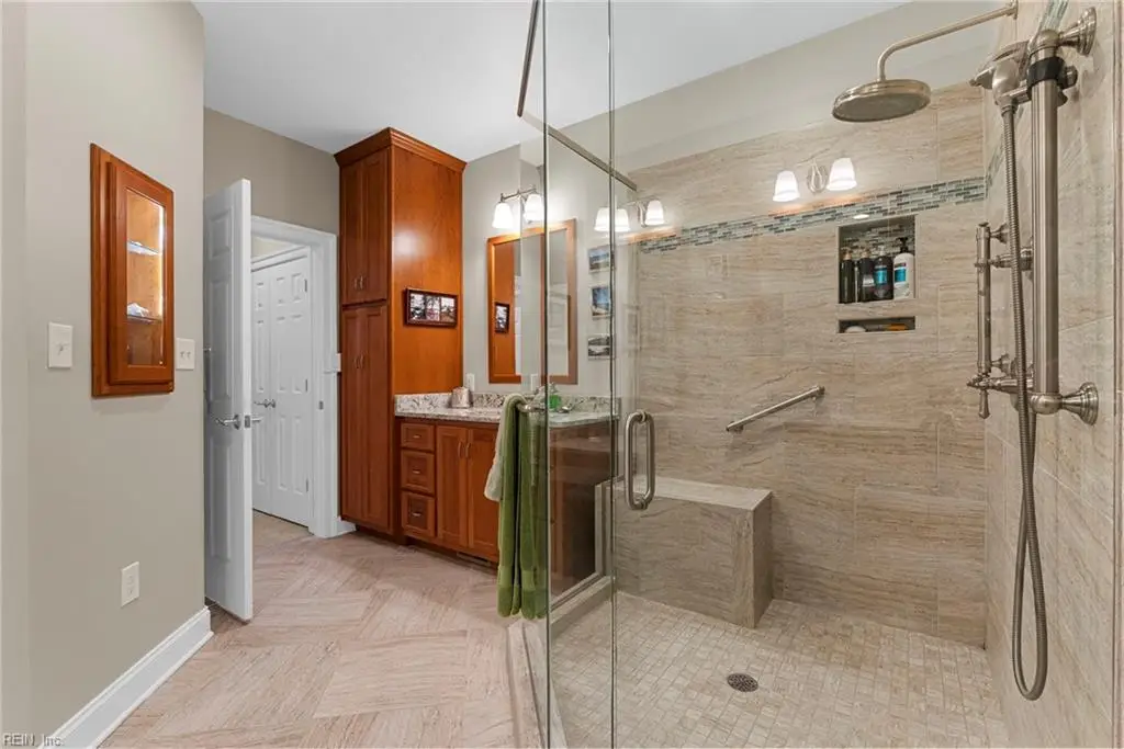 Welcome to Rivers Edge, one of Kingsmill's most coveted low-maintenance communities offering unforgettable pond views and exceptional living. This beautifully designed, mostly one-level home features 3 spacious bedrooms, 3.5 baths, plus a dedicated office with custom built-ins. Gorgeous hardwood floors, stunning trim details, and an elegant two-story family room with built-ins and a cozy fireplace create a warm and inviting atmosphere. Expansive water views grace the main living areas and most windows, providing a truly serene backdrop. Impeccably maintained with superb attention to detail this is the easy, elevated lifestyle you've been waiting for!