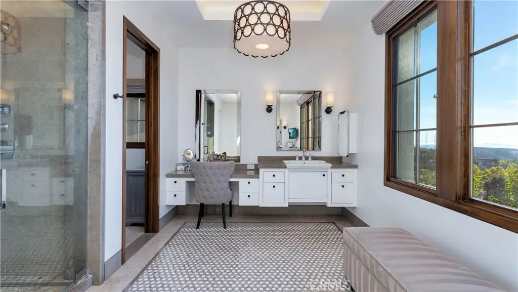 Discover the Luxury California Lifestyle at 2 Thomas Rd! This breathtaking, custom home offers approx. 7,476 sf. of luxury living on a sprawling lot with ocean and Saddleback Mountain views. This home is more than just a place to live—it's a lifestyle. Inside you are greeted by the warmth of aged Mediterranean, wire-brushed, wood floors, set against soft, neutral tones throughout the home. The contemporary Adobe-style exterior complements the stunning Walnut woodwork inlays seen in cabinetry, baseboards, ceilings, and doors. At the heart of the home is the gourmet family kitchen, a chef’s dream with 2 oversized islands, a breakfast bar, soft-close cabinetry and weathered marble countertops. The state-of-the-art appliances include a Sub-Zero double refrigerator, freezer, a Viking 8-burner range, a KitchenAid double oven and microwave, making both everyday meals and grand entertaining a breeze. And don’t forget the cozy breakfast nook with a wood coffered ceiling, where you can enjoy your morning coffee while sunlight filters through the skylight and adjacent windows. The great room seamlessly blends style and function with walnut ceilings, a designer fireplace, and panoramic sliding doors that open to reveal an entertainer's dream backyard. Take in the views while relaxing by the custom saltwater pool and spa. Host unforgettable gatherings with the outdoor kitchen, travertine decking, and a hidden automated TV station. For fitness and fun, head downstairs where a full media room, game room, weight room, and another kitchen await. Whether it’s movie night in the home theater or a competitive game of basketball on your own half-court, this space has been designed for maximum enjoyment. The primary suite is a serene sanctuary with a custom wood-paneled fireplace, motorized sunset shades, and dual walk-in closets with custom-built-ins. The spa-like primary bath features a steam shower, rain shower and dual vanities, creating the perfect relaxation retreat. Rounding out this luxurious property are flex spaces like a dedicated office, a home management and craft room, an upstairs loft, and a four-car garage with custom storage solutions. The entire home is automated with the Crestron and iAquaLink Smart Home systems offering effortless control of lights, climate, pool and security—all from your phone or tablet. This home is the ultimate expression of California luxury, blending modern convenience with timeless elegance. Your Luxury California Lifestyle Awaits!