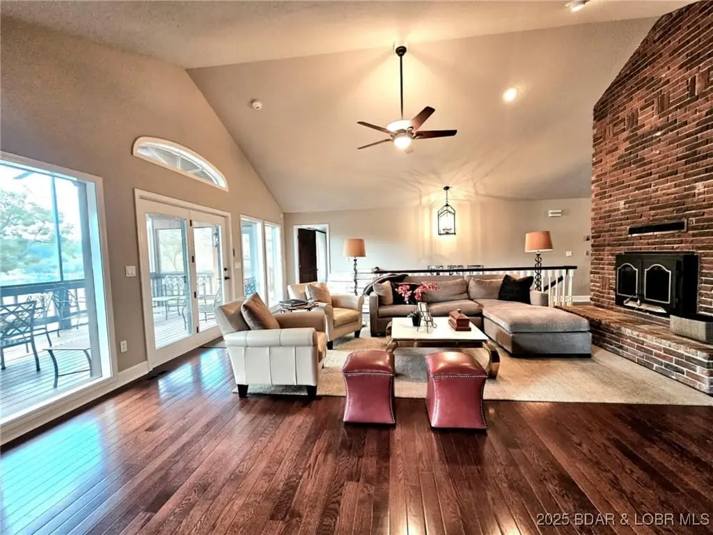 Step inside and be wowed by the stunning floor-to-ceiling brick fireplace, perfect for cozy evenings. Vaulted ceilings and an open living area. Spacious kitchen, complete with a breakfast nook, cabinets galore, double oven, and a gas cooktop. Enter through the garage into a handy mudroom/office that effortlessly flows into the kitchenideal for unloading those grocery hauls. The dining area has a wall of windows and seating for 14. Main level master suite with a lavish bathroom, featuring double sinks, tub, a walk-in shower, and a private toilet room. Step out onto the screened porch and soak up the lake views. Descend the gorgeous staircase to find yourself in the family room, with yet another brick fireplace and a wet bar for entertaining. The lower level is complete with two bedrooms and a bath on each side of the living space, plus a utility room with storage and a second washer and dryer set. The lower level deck offers more outdoor gathering space. Lets not forget the concrete dock, which includes two boat slips, a PWC slip, and a dock shed, making this the ultimate waterfront retreat. After 16 cherished years, the seller is ready to hand over the keys to this beauty.