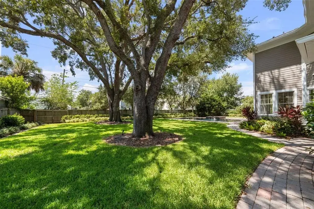 Rare opportunity to own one of the largest lots in New Suburb Beautiful and one of only a handful of homes with a three-car attached garage in the neighborhood. Only one other has sold in the past 20 years offering both features. This quintessential beauty is situated on a double lot measuring 120x138 and is like no other. As you approach the John Sample custom home, look around at the street replete with a gorgeous canopy of trees creating an idyllic setting. Note the sidewalks for evening strolls and sprawling front yards for extended play. Imagine visiting with neighbors on the expansive front porch. This gem was designed to echo the 1920s Southern Colonial architecture reflected in the neighborhood, but with a floor plan appealing to modern families. Upon entry, stop to appreciate the 10’ high ceilings, custom crown molding, wood plantation shutters, and the sightline to the fabulously large back yard. To your right, a stately study with built-ins, powder bath and French doors for added privacy. Just beyond, is a sizable sunroom perfect for cuddling up with a great book or extra play space. To the left of the entry, find the spacious formal dining room, ideal for large dinner parties. An added feature of the space is the fireplace (gas and wood burning) with an antique marble mantle, lovingly restored from the original home on the property. Between the dining room and kitchen find a walk-in pantry and built-in wet bar. Imagine the concoctions your favorite mixologist will create to delight your friends! This home was built for entertaining! The kitchen offers a built-in oven, warming drawer, Viking gas range, Subzero side by side fridge and freezer, Scotsman ice maker, microwave and Bosch dishwasher. Guests will love visiting with the chef while seated at the expansive breakfast bar. The kitchen opens to the living room featuring built-ins and a fireplace that is both wood-burning and gas operated. But what will truly impress, are the abundance of windows looking out on the exceptionally large backyard. Beyond the French doors, find a large hand laid brick porch that wraps along the back of the home. Perfect for lounging, dining, setting up cocktail tables or all the above! Gather around the pool deck, take a dip in the pool, relax in the spa or play in the expansive yard. A separate entrance provides easy access to the pool bath. The oversized mud room offers a stackable washer and dryer for wet towels or sports clothes, storage cabinets, a utility closet and a built-in bench for backpacks and shoes. Upstairs, find the primary bedroom with two walk-in closets. The bathroom features a dual sink vanity, a garden tub and walk in shower. Bedrooms two and three, have an extended Jack and Jill bathroom with separate vanities and toilets and a private bathtub in between. Bedrooms four and five each have their own full baths. There is also a great bonus room with closets that could be used as media room, gym or sixth bedroom. The laundry room is enviable with a sink, extra cabinets and counter space. Other features of the home include a long driveway for extra parking, GarageTek storage system, tankless gas water heater, walkable attic with installed flooring, newer roof (2022), and termite warranty. It is convenient to downtown Tampa, A-rated schools (Mitchell, Wilson and Plant), Howard Avenue, Bayshore Boulevard, and Hyde Park Village. X flood zone and no flood insurance required thanks to the neighborhood's higher elevation.