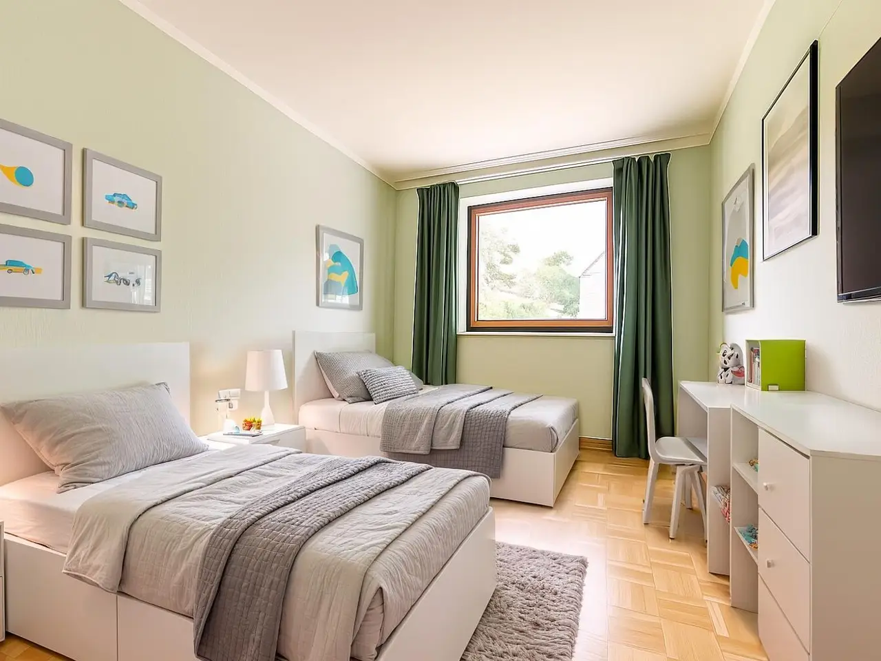 Welcome to your new home. A semi-detached house that inspires with loving details, a generous room layout and a very special feeling of living. On the first floor, a light-flooded living and dining area with large window fronts opens up to a view of the greenery. This central heart of the house is the place to play, laugh, eat and relax. The stylish fireplace in the living room creates a cozy atmosphere and makes for pleasant hours. From the living room, the path leads to the beautiful garden with sunny terrace, pavilion and extra tool shed. Here you can enjoy balmy summer evenings or fire up the barbecue with friends. A well-kept fitted kitchen rounds off the offer on the first floor. Upstairs you will find a spacious master bedroom with access to its own balcony, as well as two further rooms that are ideal for use as children's, study or guest rooms. In one of these rooms, an additional fireplace ensures a cozy atmosphere. A comfortable family bathroom with a large shower is also centrally located on this floor. The top floor surprises with a further room, which creates its very own oasis of well-being with its charming sloping ceilings and natural light. Whether as a retreat, guest room or creative hobby area - there are a variety of possible uses here. This level is complemented by a practical attic that offers additional storage space. A highlight is hidden away in the basement: a small but exquisite spa area with sauna, shower and bathtub with whirlpool function. Here you can transform your home into your own personal wellness oasis, ideal for relaxing and unwinding after a long day. A garage with direct access to the garden provides additional convenience and completes this attractive overall package. This semi-detached house is more than just four walls, it is a place where family life thrives, dreams grow and memories are made.