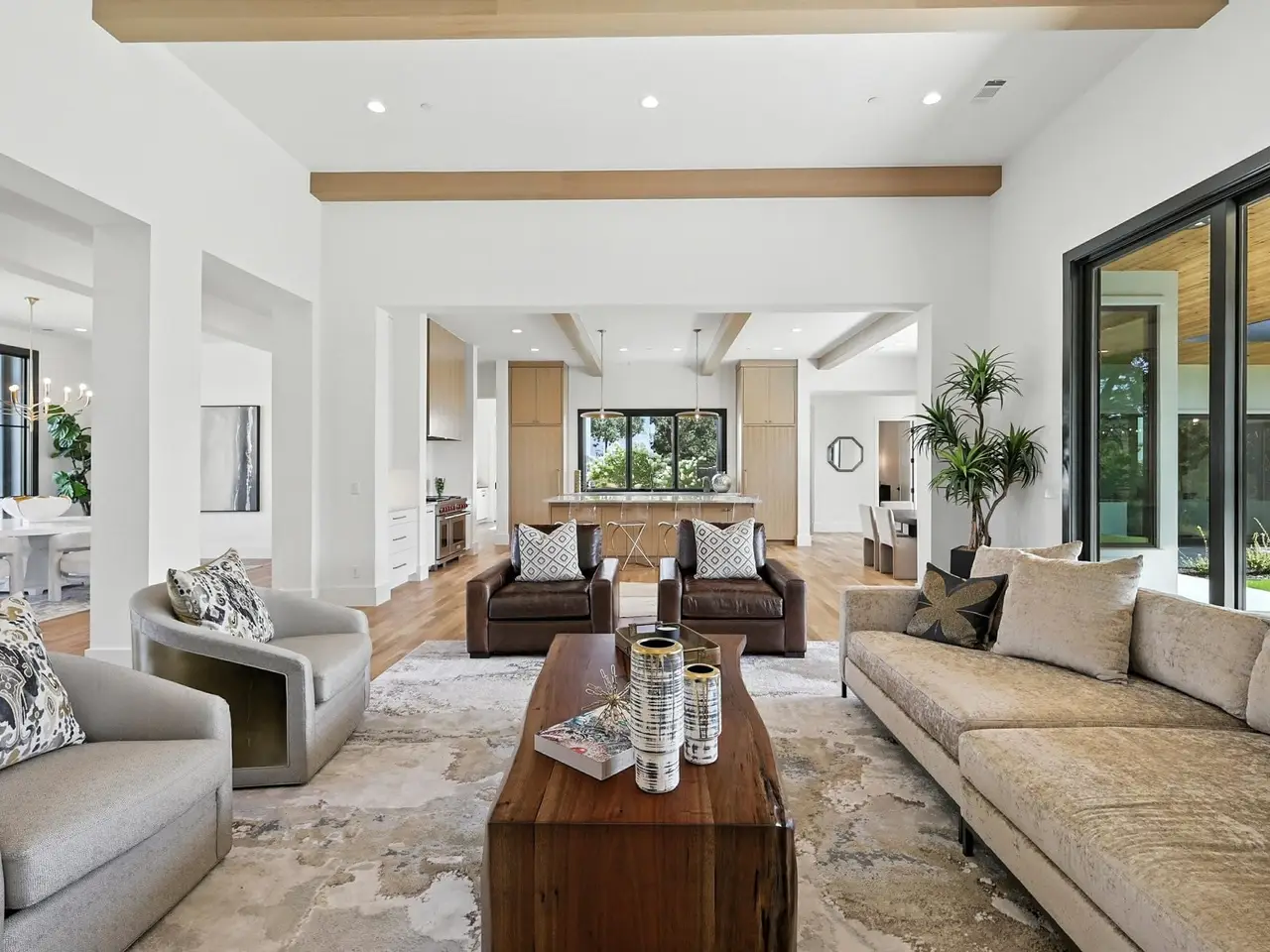 Welcome Home to this brand new, gorgeous Calais Custom Home. Nestled in the quiet, back part of the prestigeous Old Grove neighborhood, this modern home offers an unparalleled living experience, exceptional floor plan, light and bright finishes and a spacious backyard for you to create your backyard dream oasis. As you enter the impressive steel and glass pivot front door, you are greeted with 21 foot soaring ceilings, walls of windows, gorgeous wood floors and open plan living. Blending luxurious finishes with modern design, this home features highest end Wolf and Subzero appliances, stone countertops, designed hardware and plumbing fixtures, and white oak floors. The open-concept offers a large Family - Breakfast - Chef's Kitchen with huge island with quartizite counters, for family and friends to enjoy. Step into the Game Room with wet bar with sliding doors to the oversized backyard, covered patio and serene views.The dream Primary Retreat features lovely backyard view, a lavish spa bath and expansive closet. 2nd Primary suite is also downstairs. Upstairs offers 3 large Bedrooms with en-suites and walk-in closets, plus a Exercise Room, Loft and Bonus space. As you head into the backyard, you find a large veranda, complete with a with cozy fireplace for year-round enjoyment, and surrounded by exquisite landscaping and mature trees that enhances the home's secluded ambiance. Home also boasts an Executive Study, Prep Kitchen, large Laundry room, tons of storage, a spacious 4 car garage. This is a truly extraordinary residence, and a rare combination of privacy, elegance, and functionality.