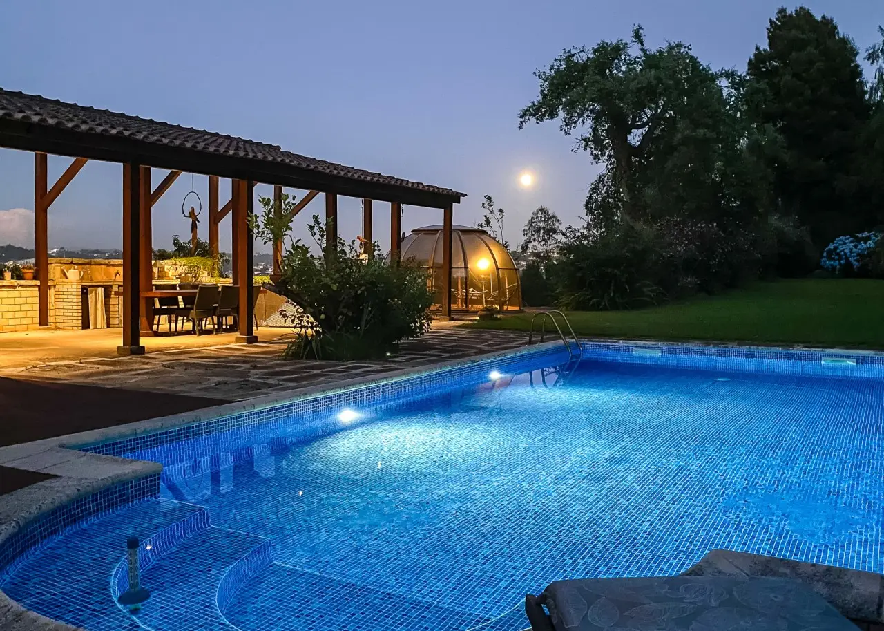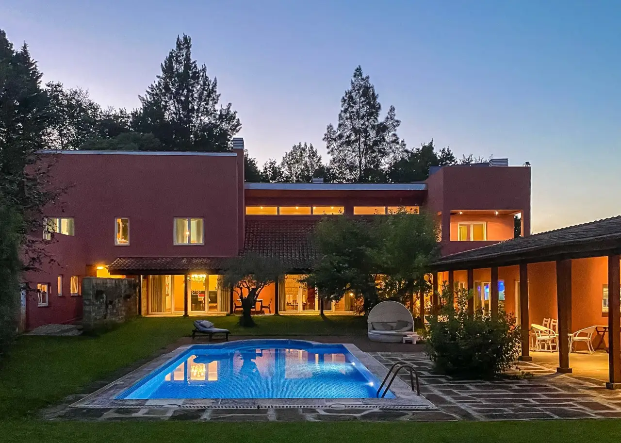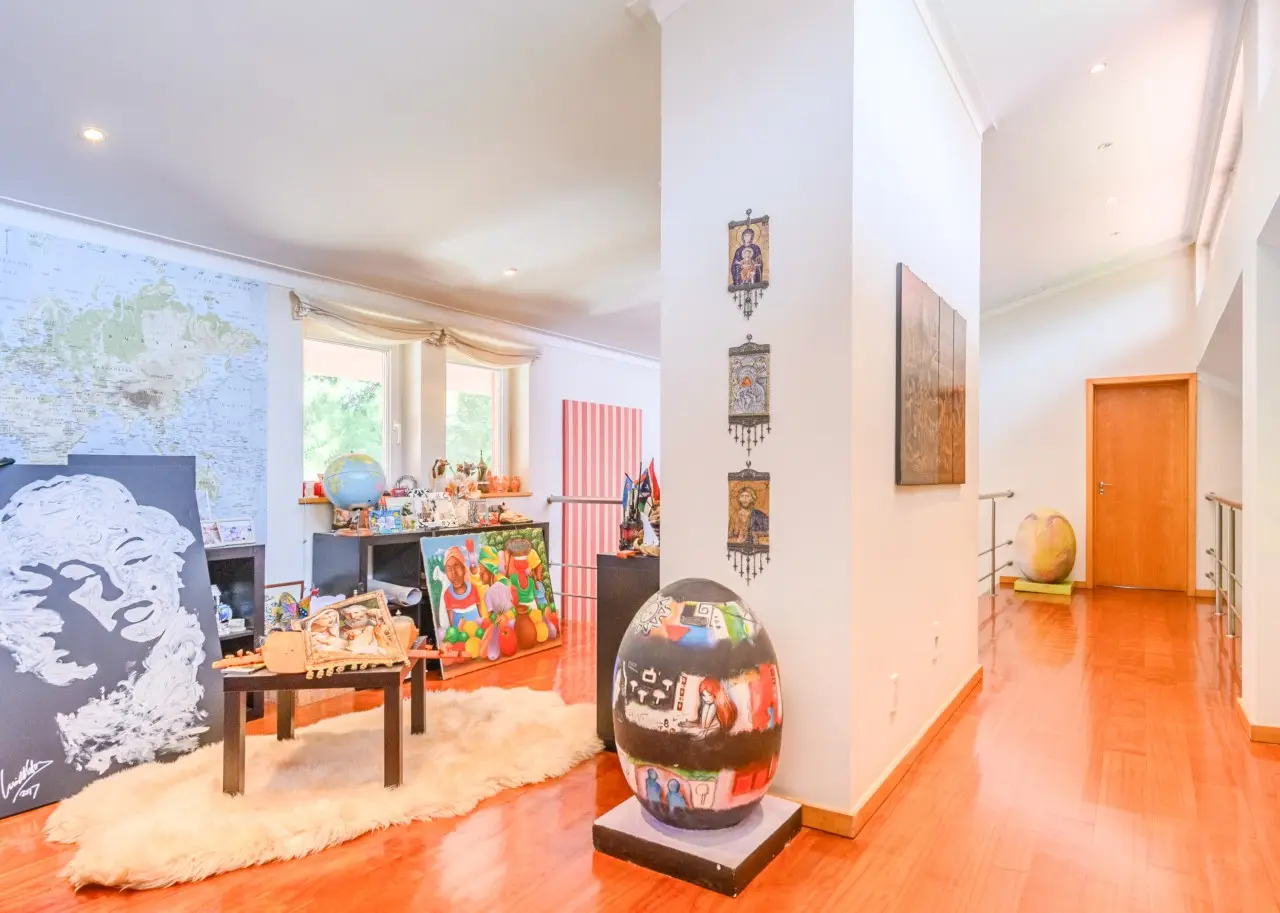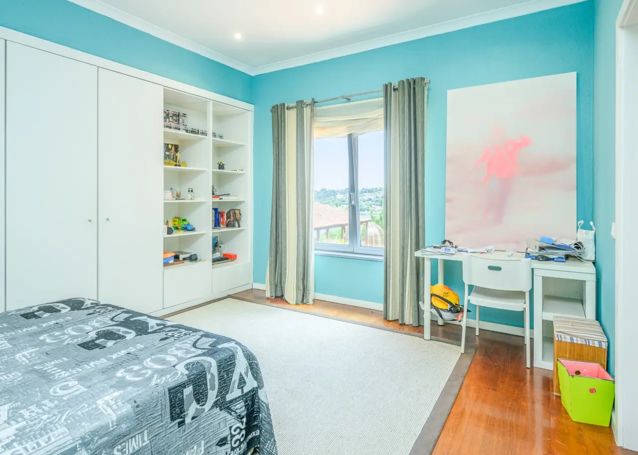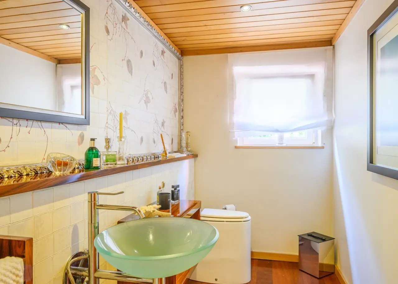 After crossing the access gates, we are enveloped by the woods that allow us to glimpse only the river, as far as the property boundary extends. The access path to the house confuses our senses. The feeling is that of being in some exotic paradise, and not at the gates of the cities of Gaia and Porto. it is more than a hectare of terraces that alternate between dense woods, mature gardens or fruit trees. The house surprises by its clean and straight lines, opening south to the extensive lawn where we find the pool and which anticipates the view of the immense river arm that seems to grow as we approach the limit of the landing on which we find ourselves. The distribution of the interior spaces was made in a fluid way and are organized in two levels. On the lower level we have the social areas that take special advantage of the direct communication with the surrounding garden. On the upper floor we find the bedrooms that benefit from the light and the unique views of the property. In the house, noble materials such as natural stone , floors and other carpentry in solid woods, Philippe Stark sanitary ware, thermal break frames and options such as the air conditioning system by ducts (air conditioning) stand out. We also find a gym area, sauna, garages, storage and other support areas essential to a property of these dimensions. CHARACTERISTICS: Plot Area: 12 282 m2 | 132 202 sq ft Deployment Area: 290 m2 | 3 122 sq ft Building Area: 556 m2 | 5 985 sq ft Bedrooms: 5 Bathrooms: 6 Garage: 4 Energy efficiency: B- FEATURES: River Views Garden Woodland Orchard Swimming pool