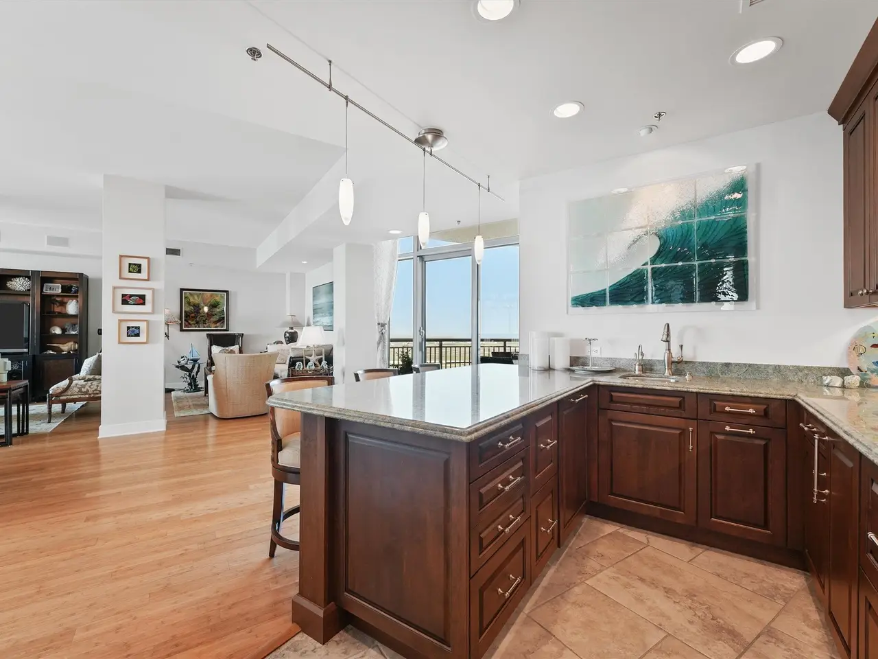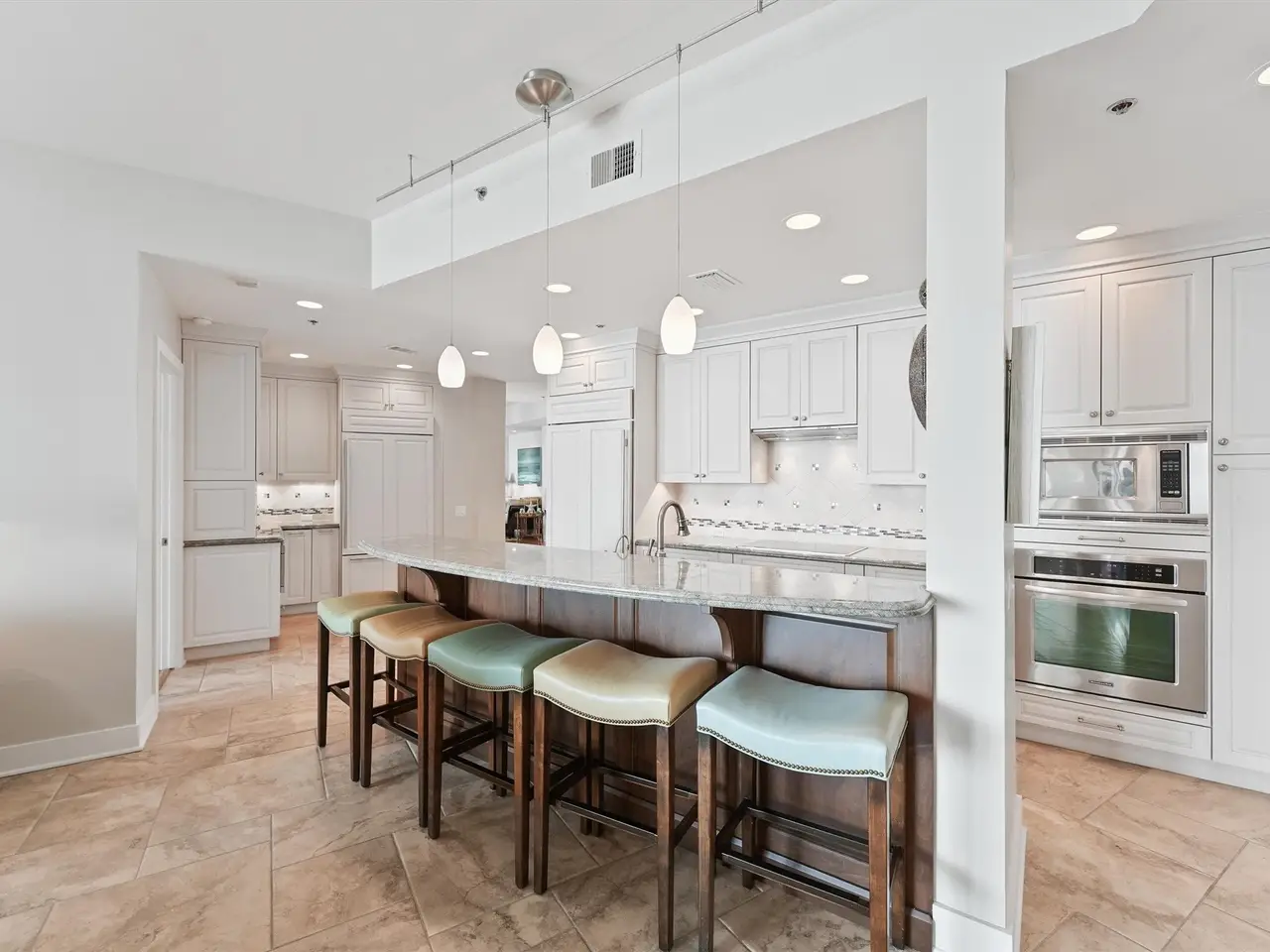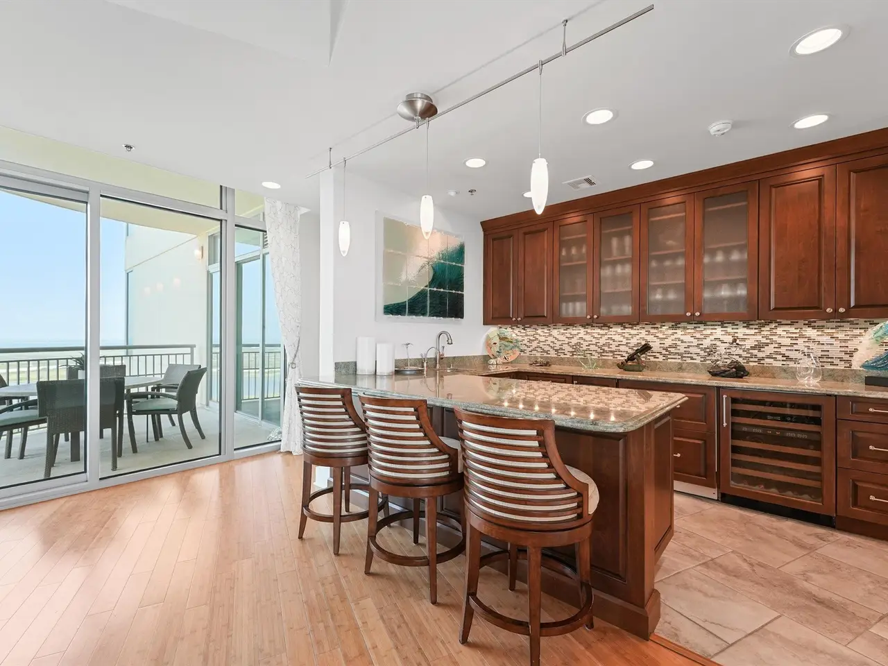 This exceptional 20th-floor residence combines two Signature floor plans — the “Newport” and “Malibu” — to create a truly unique home. Featuring 5 bedrooms (each with en-suite bath), this spacious condo offers 10-foot ceilings and four oversized balconies totaling 805 sq. ft., showcasing private, unobstructed views of the Bay and Gulf in every direction. The gourmet kitchen is accented with gorgeous costa esmeralda granite, custom premium cabinetry, and designer lighting. Additional highlights include a coffee bar, separate wet bar, with sub-zero dual control wine fridge, and undercounter beverage drawers. Making this an entertainer's dream! Enjoy the space and comfort of a large beach home, combined with the premier amenities and maintenance-free lifestyle of a luxury resort. A true home in the sky!