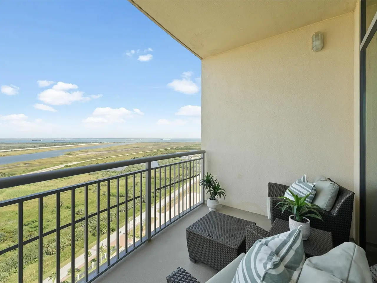 Oversized balconies with waterfront views