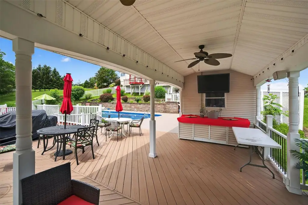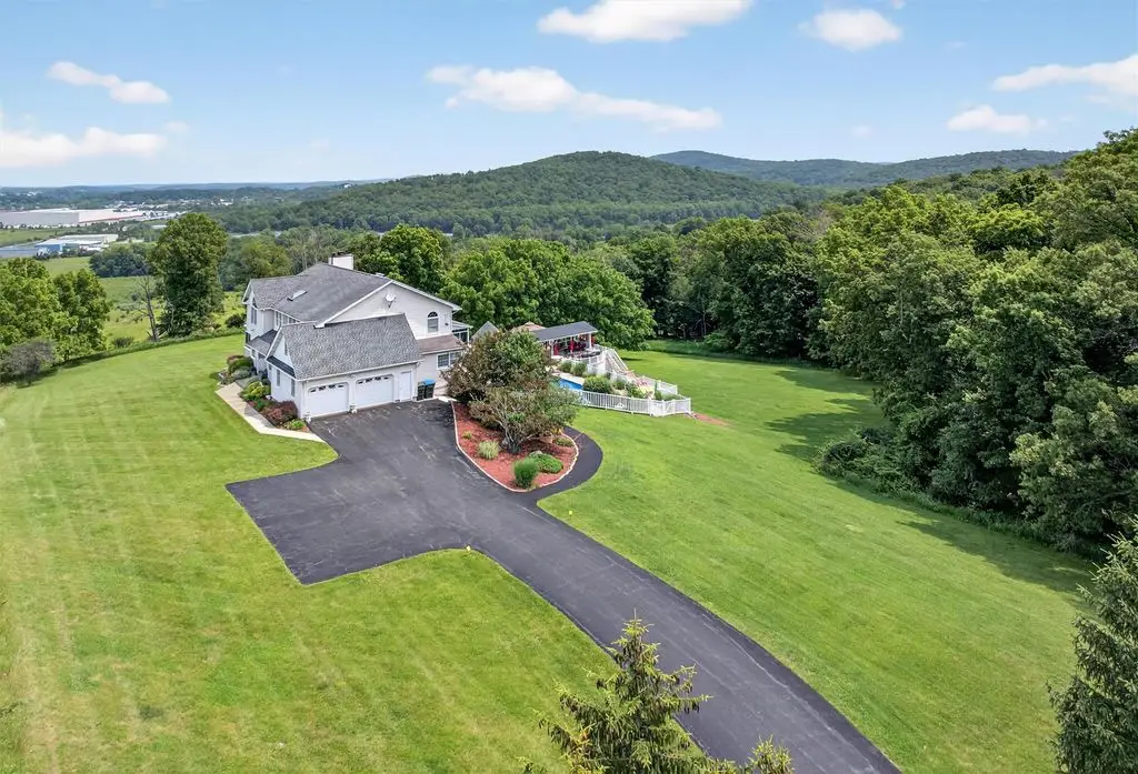 Welcome to an extraordinary 4,400+ square foot residence in the coveted Warwick School district, where luxury and lifestyle converge to create the ultimate entertainer's dream. This meticulously maintained and thoughtfully updated home offers breathtaking panoramic views, inviting you to unwind in the serene front atrium or the sun-drenched sunroom at the rear. Step inside to discover a harmonious main floor, where an open-flow layout seamlessly blends with versatile spaces tailored for a home office, music room, or study. Freshly painted in a neutral palette, the living room, complete with a TV and Bose surround sound system (included), sets the stage for memorable gatherings. The adjacent kitchen flows effortlessly into a convenient laundry and pantry room, strategically positioned off the garage for easy grocery unloading and discreet meal prep, keeping your entertaining space pristine. Ascend to the upper level, where the master suite serves as a tranquil retreat, boasting brand-new flooring, fresh paint, a modern ceiling fan, and a luxurious 2024-renovated bathroom featuring new fixtures, elegant tiles, and a rejuvenating steam shower. Three additional bedrooms share a fully renovated, contemporary bathroom with sleek fixtures and a walk-in shower, ensuring comfort for family or guests. The walk-out basement, currently a stylish home office, offers boundless potential as a guest suite or multi-generational living space, complete with a private bathroom and dining area for extended stays. The festivities continue outdoors on a private deck and patio, where you can luxuriate in the BRAND NEW hot tub, take a refreshing dip in the pool, or gather around the firepit for s'mores under the stars. Host unforgettable gatherings with the poolside TV, outdoor kitchen, and gazebo bar area, perfect for grilling favorites or crafting cocktails. Nestled just minutes from Harriman, Legoland, Woodbury Commons, and major shopping, with easy access to train and bus lines, this home offers both seclusion and convenience. A scenic drive to the charming Village of Warwick and approximately 50 miles to the George Washington Bridge make this an ideal retreat for those seeking a blend of rural serenity and urban accessibility. This is more than a home it's a lifestyle.