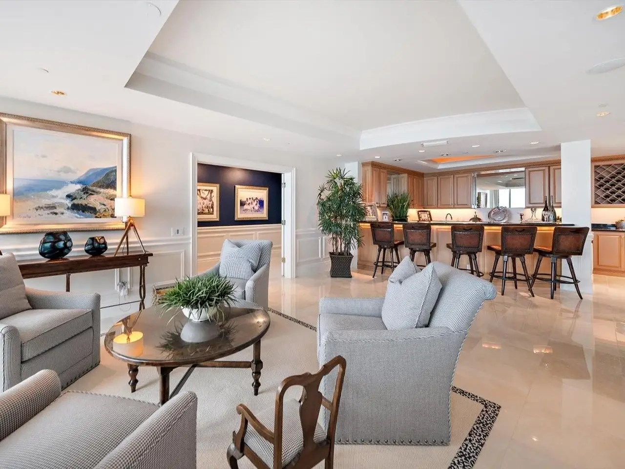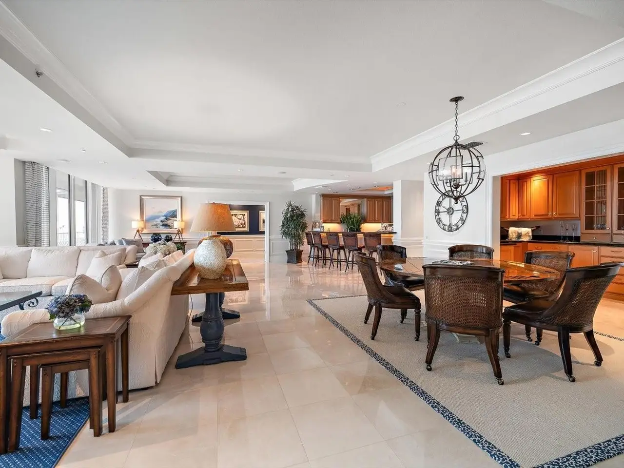 A rare FULL FLOOR DOMAIN! Sophisticated private condominium encompassing the entire sixth floor of Seaside III-this is the best of resort-style living, perfected, personalized and offering elevator to foyer exclusivity unlike any other property within the grounds of the very desirable Belleair Country Club. Discover the pinnacle of luxury living in this remarkable residence showcasing sweeping views from the Intracoastal Waterway to the Gulf waters. Exquisitely furnished and spanning over 6,000 square feet, the entire floor is a seamless combination of maximum space and minimal responsibility providing a superior quality of life without the burdens of homeownership. Designed with both elegance and comfort in mind, the floor plan features formal and informal living areas ideal for entertaining or quiet enjoyment. The chef's dream kitchen is equipped for high-level culinary experiences. With efficient organizational features, high end appliances, custom built-ins, impressive center island, butler’s pantry, and abundant storage, the area serves as a focal point for casual gatherings or creation of exceptional meals. The primary suite is secluded from the main living areas creating a peaceful welcoming retreat with its gracious sitting area. Enjoy the dressing areas and extensive customized closets. A luxurious bathroom complete with a spacious walk-in shower and separate soaking tub is inviting. On the opposite end of the primary suite, three guest suites, each with private baths and generous closets, provide refined accommodations for guests or extended family allowing for additional privacy. Throughout the home, custom millwork, coffered ceilings, signature lighting, artistically etched glass doors, marble flooring, and an impressive fully equipped bar area reflect fine craftsmanship. Floor-to-ceiling windows and doors, and wraparound balconies capture endless water views. This is an immaculately finished property where each item from furnishings to accessories has been selected by a top-tier interior designer-custom made and custom sized creating a refined and gracious retreat. Enjoy private, secure living with a 24-hour guarded gate, secured building entry, two under-building parking spaces, and additional storage. Located in a non-evacuation zone, this residence offers peace of mind and a truly carefree lifestyle—no worries with power failure or water intrusion during storm seasons. Residents of Belleair Country Club enjoy exclusive access to two championship 18-hole golf courses, pickleball and tennis courts, croquet, a fitness center, aquatic programs, boat slips, and fine dining—all within this premier coastal community. A rare offering that embodies the essence of refined living in a fabulous country club environment, this is a key departure from a single-family home-ideal for seasonal residents or frequent travelers.