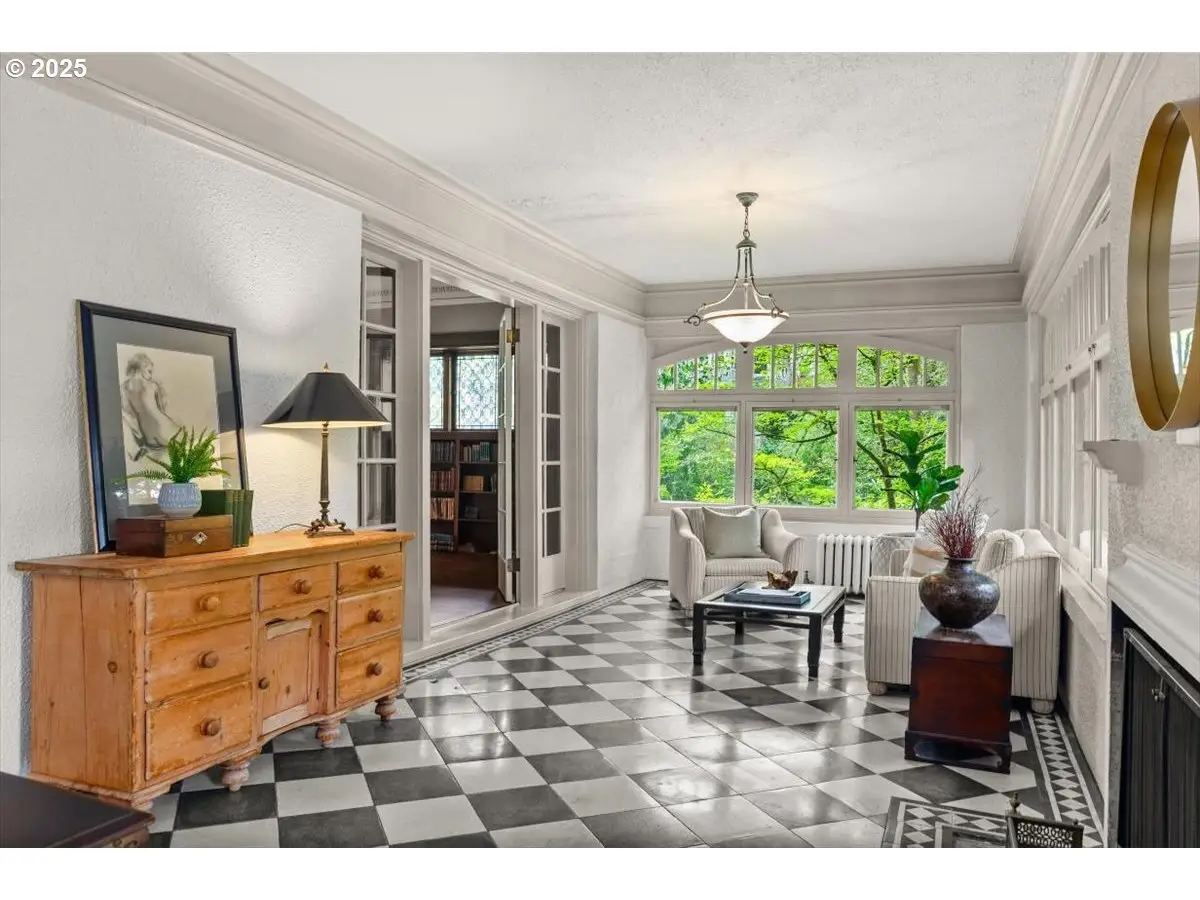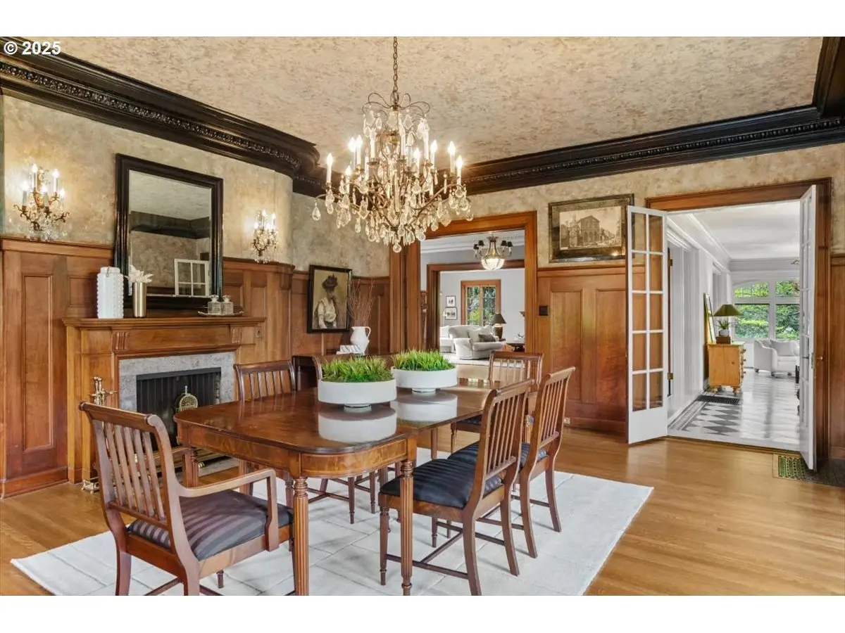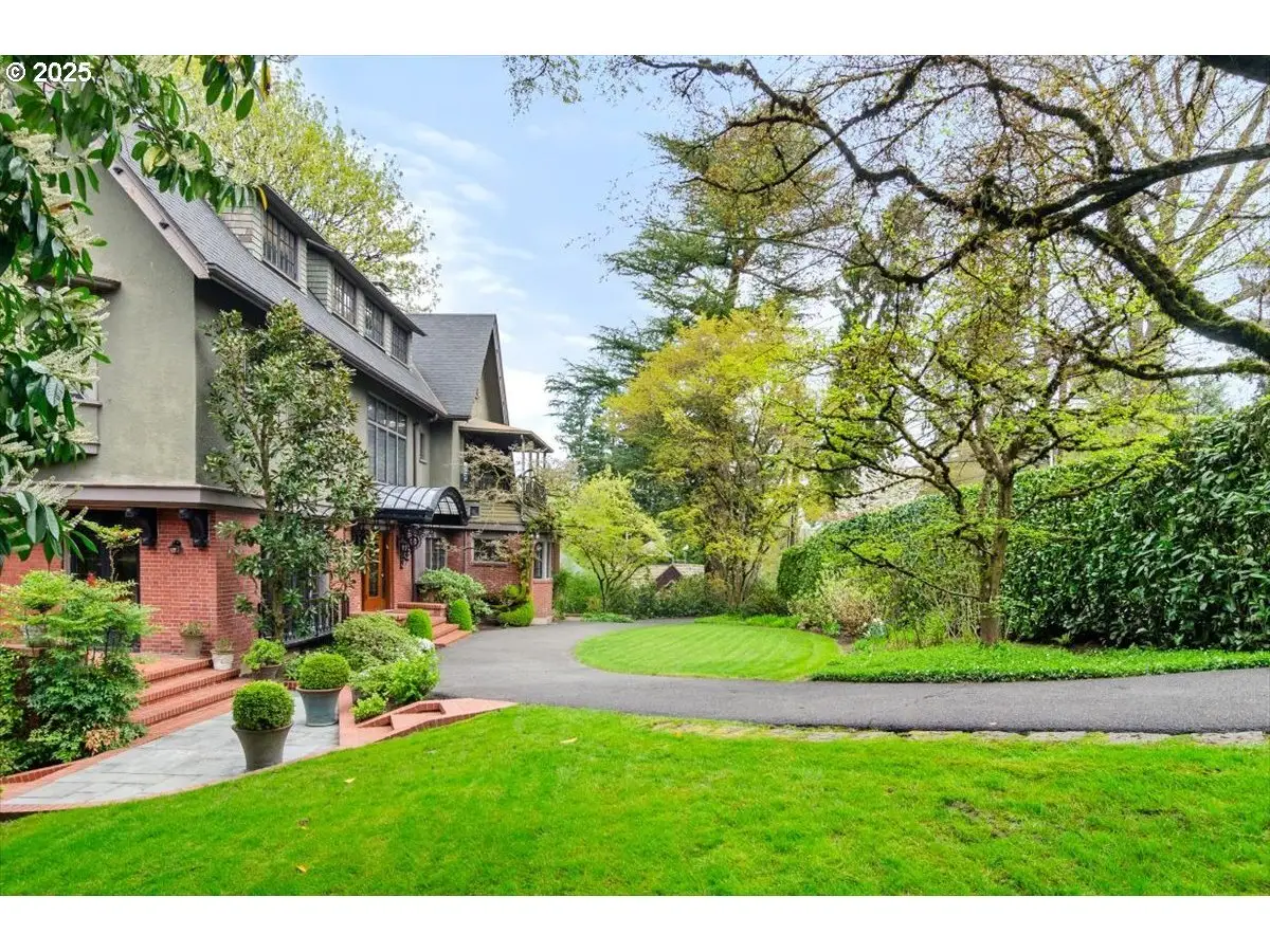 Designed in 1912 by Architect Josef Jacobberger, the Giesy/Failing House is a stunning blend of Craftsman and Arts and Crafts styles, offering an unparalleled sense of grandeur. Ideally located in the coveted West Hills on 1.55 acres, this property features steep intersecting gabled roofs, a cantilevered stucco second floor, and exquisite wrought-iron detailing. The distinguished arched glass and wrought-iron canopy at the entrance sets the tone for the home's stately interiors. Inside, the high ceilings throughout, wood paneling, leaded glass windows, intricate moldings, and multiple fireplaces create an atmosphere of timeless sophistication. With five bedrooms, four full and two half bathrooms, and expansive living spaces — including a grand foyer, sunroom, library, formal dining room, and recently remodeled kitchen — this residence seamlessly blends architectural heritage with modern convenience. Listed on the National Register of Historic Places and located on a dead-end street just minutes from parks, trails, the city, major hospitals, schools and high tech, this is a rare opportunity to own a true Portland landmark. [Home Energy Score = 1.]