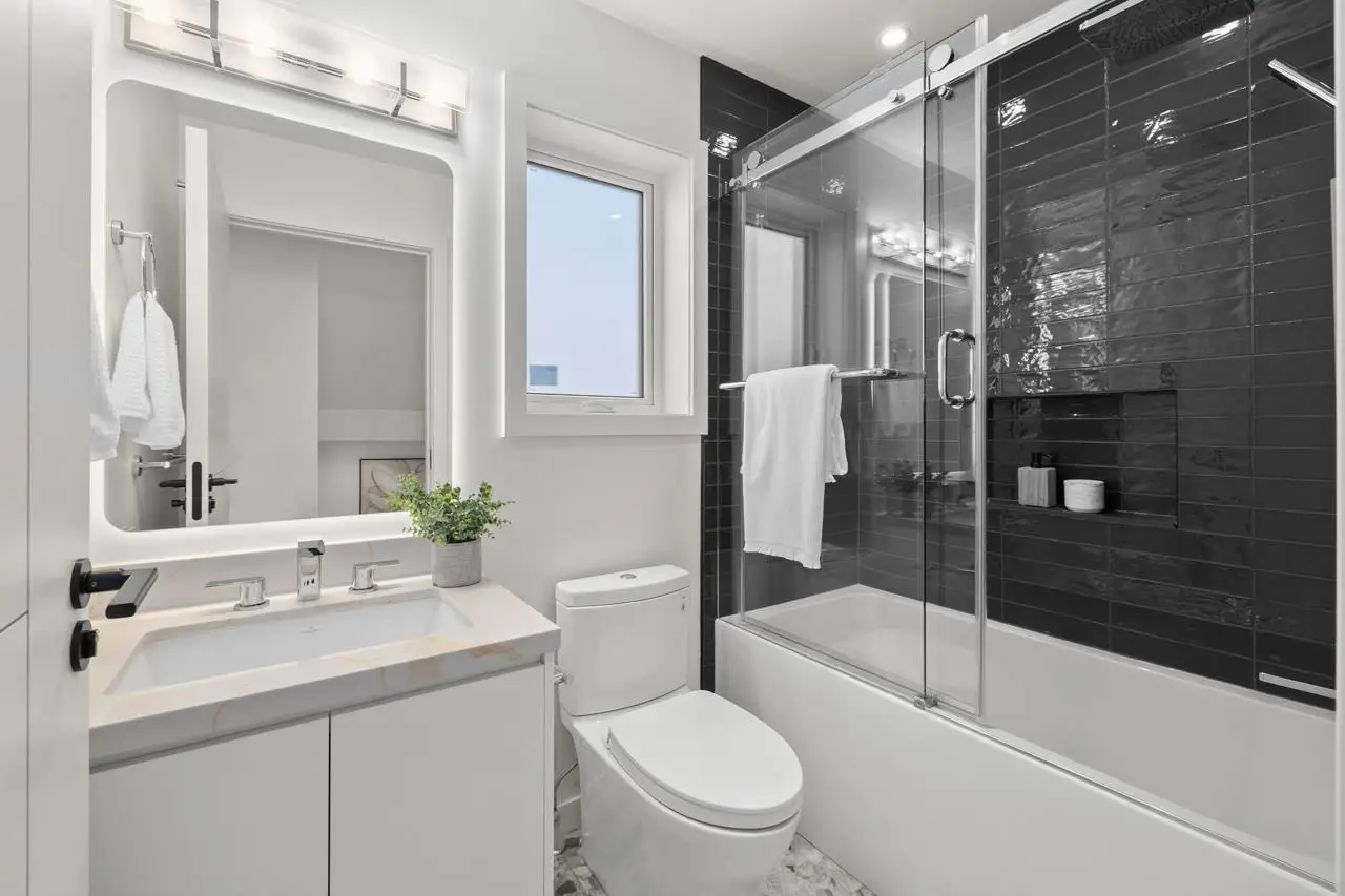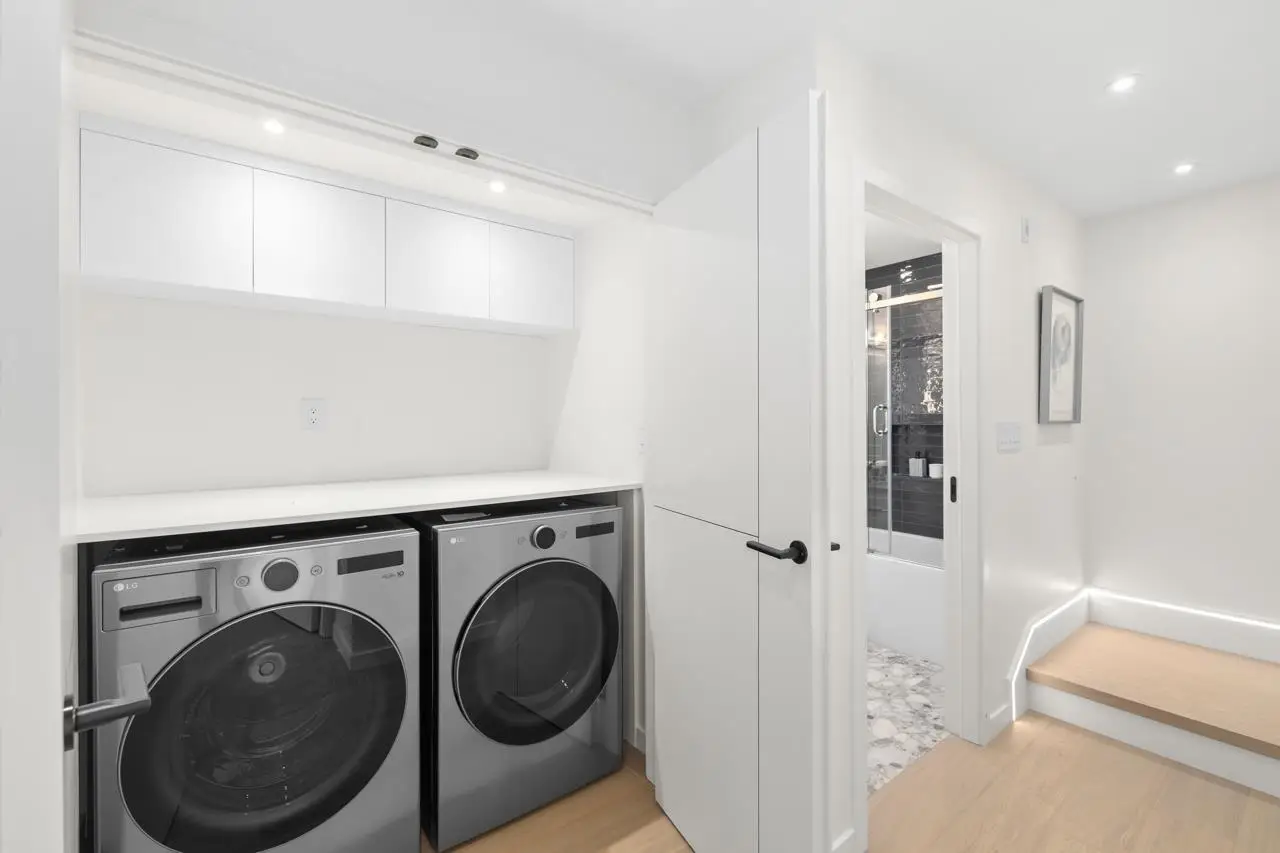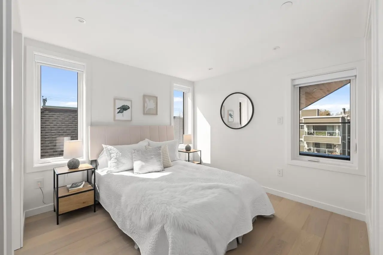Discover refined living in this stunning 1/2 duplex by Mahnger Homes in the heart of Douglas Park! Elegant design meets luxury with warm tones, oversized windows, and brushed White Oak floors throughout. The large gourmet kitchen boasts sleek flat-panel cabinetry, quartz counters/backsplash, and premium matte white appliances. Upstairs, find the spacious primary bedroom with walk-in closet and balcony. The versatile third level offers a bedroom, guest room, or expansive family room opening to a covered deck—perfect for entertaining. Stay comfortable year-round with a heat pump for heating and cooling. Covered parking and 3 storage lockers add convenience. Steps from parks, cafes, top schools, and transit—this is urban living at its finest! Open House Nov 8th/9th Sat/Sun 2-4pm