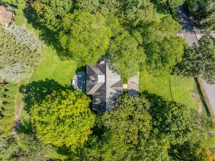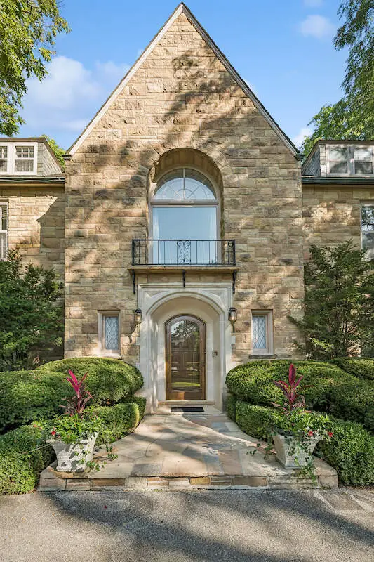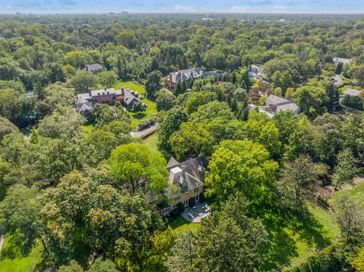 Nestled down a winding, private road on 1.9 meticulous park-like acres, this grand, almost 10,000 square foot residence exudes luxury and timeless elegance. The front entrance is set apart from the road by a sweeping circular drive bordered by private hedges and mature trees. Upon entering the stately, two-story foyer with a 25' ceiling, bridal staircase, black and white marble floor, formal powder room and two coat closets, you are greeted by the sophistication that defines this home. The main level features a spacious, step-down living room with inlaid floors, a marble, gas and wood fireplace, and two picture windows that fill the room with natural light. Pass through the living room to an adjoining, architecturally beautiful solarium with a slate floor, that offers panoramic views of the lush grounds surrounding the residence. The formal dining room also features inlaid floors, and picture window. The handsome family room with custom cabinetry, lighting, millwork, and a marble, gas and wood fireplace, provides the perfect space for entertaining and relaxation while overlooking a yard large enough for a pool. The family room seamlessly flows into a large kitchen area that includes not only a custom kitchen but also a breakfast room, butler's pantry, back staircase, and mud room. The butler's pantry has an ice maker, second dishwasher, and beverage refrigerator. Upstairs, the luxurious primary bedroom suite boasts a marble, gas and wood fireplace, walk-in closet, and an adjoining sun room with stunning views of the grounds. It is perfect for family gatherings, office space or nursery. Adjacent to the dual sink primary bath with a vanity table, there is a winding staircase that leads upstairs to the third floor where you will find a beautifully crafted wardrobe/dressing room with many custom built-ins, lighting and mirrors. This lovely area conveniently leads to an exercise room, powder room and an oversized cedar closet, and this completes the third floor. There are four additional family bedrooms on the second floor, two share a Jack and Jill bathroom, one has its own en-suite, and the fifth bedroom suite offers versatile living space. The fifth bedroom and sitting room, located near the back stairs, welcomes an in-law arrangement, live-in nanny, or out-of-town guests. The full basement offers at least another 2,444 square feet of living space and includes a large recreation room with fireplace, billiard room, wet bar, spacious laundry room, large cedar closet, another storage room with built-in shelving, and a powder room. The yard is professionally landscaped, private, and nearly two acres is quite hard to come by in Winnetka. Additional features of this remarkable residence include: a three car, heated, attached garage, magnificent craftsmanship, glorious room sizes, four fireplaces, a slate roof, copper gutters, circular driveway and uncommon privacy. This residence is a true gem in the heart of Winnetka. Live a life of luxury and sophistication in this exceptional home. Woodley Road, with its canopy of mature trees, is a coveted private oasis, and yet is conveniently located near town, train, restaurants, schools and a public golf course. This property is not located in the flood plane.