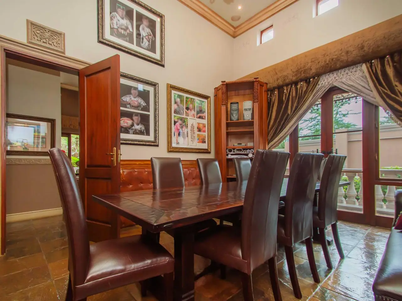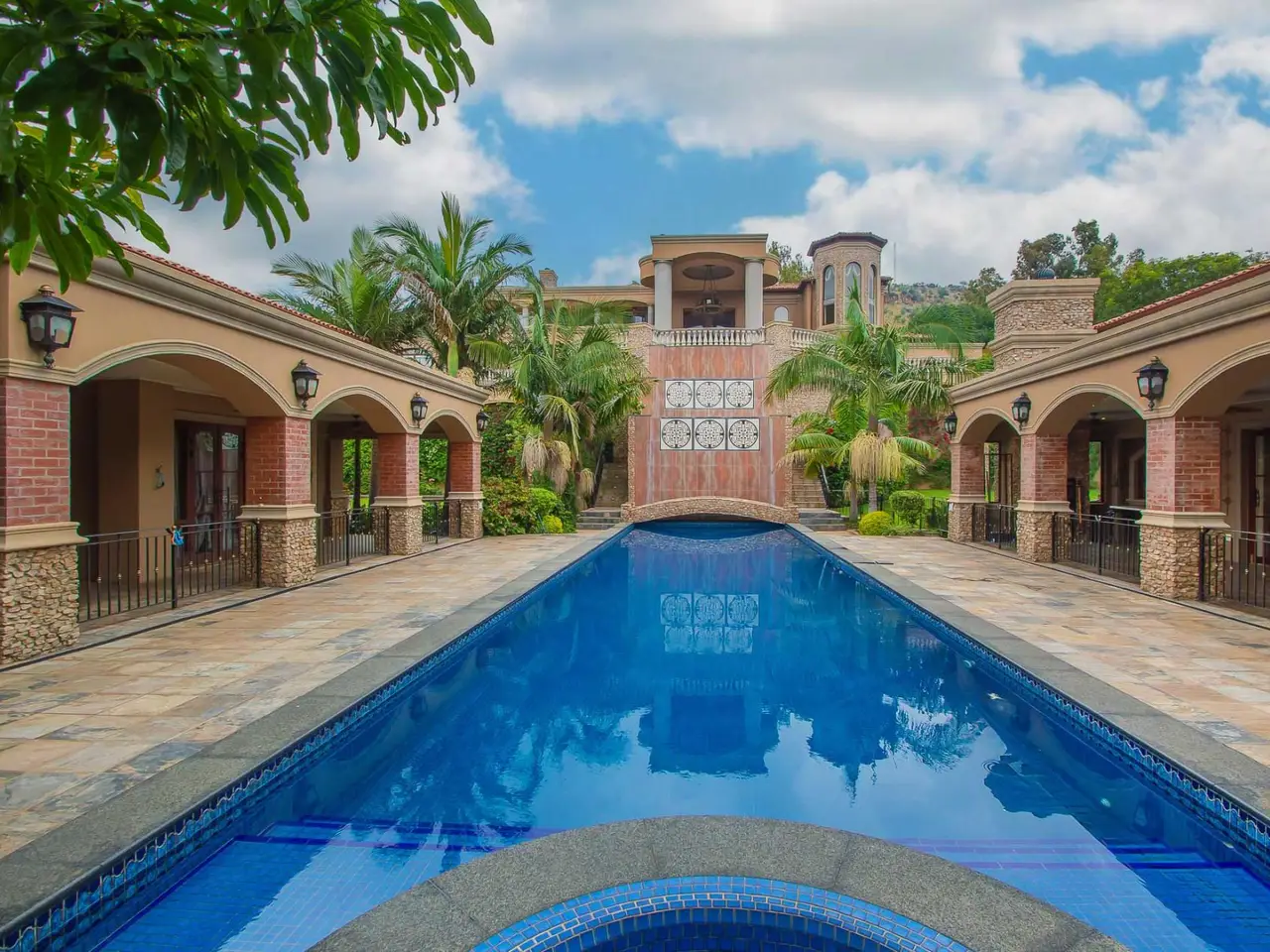 Positioned high against the slopes of the West Rand mountains, this landmark estate invites you into a world of refined luxury, expansive entertainment spaces, and unrivalled views stretching across Gauteng. This multi-residence property is thoughtfully designed for effortless living and exceptional hosting, offering a harmonious blend of lifestyle and functionality across the Main Villa, Pool House, Guest House, and a fully-equipped Office BuildingGÇöall privately set within lush landscaped grounds. The Main Villa greets you with a grand double-volume entrance, sweeping staircase, and statement chandelier. Designed around flow and connection, the open-plan living and dining spaces lead to a panoramic balcony with built-in braai, perfect for enjoying twilight dinners over the cityscape. A state-of-the-art cinema room, climate-controlled wine cellar, Jacuzzi room, and chefGÇÖs kitchen (complete with pizza oven and scullery) cater to every indulgence. The ground floor also features two elegant guest suites and triple double garages with space for six vehicles. Upstairs, accessible by staircase or elevator, the luxurious main suite offers a walk-in wardrobe, private balcony, and spa-like bathroom. Two additional en-suite bedrooms each have their own balconies, with one including a private sauna for the ultimate in-home relaxation. The Pool House is an entertainer's dream: a cinematic experience with a 180-inch screen and Dolby surround sound, full bar, automated blinds, and stacking doors opening to a fire-lit boma and sparkling resort-style pool. The adjacent Guest House offers open-plan living with a modern kitchen, two well-appointed bedrooms, and easy flow to the entertainment areas - ideal for extended family or VIP guests. A separate Office Building includes a reception area, two private offices, a boardroom, built-in bar, and kitchen - perfect for business owners who want to blend work and luxury living. Additional features include a Sun City-inspired pool, Jacuzzi, tranquil water features, lush gardens, borehole, 1000kva generator, dog kennels, veggie garden, staff accommodation for three, and a fully secured perimeter with cameras, alarm, and a guardhouse. With smart home automation, integrated audio, automated lighting, and WiFi throughout, this property represents the cutting edge of both comfort and design. This villa is more than a home - it's a statement. Designed for those who appreciate excellence, privacy, and unforgettable entertaining, this is a once-in-a-lifetime opportunity to own one of Gauteng's most iconic lifestyle estates.