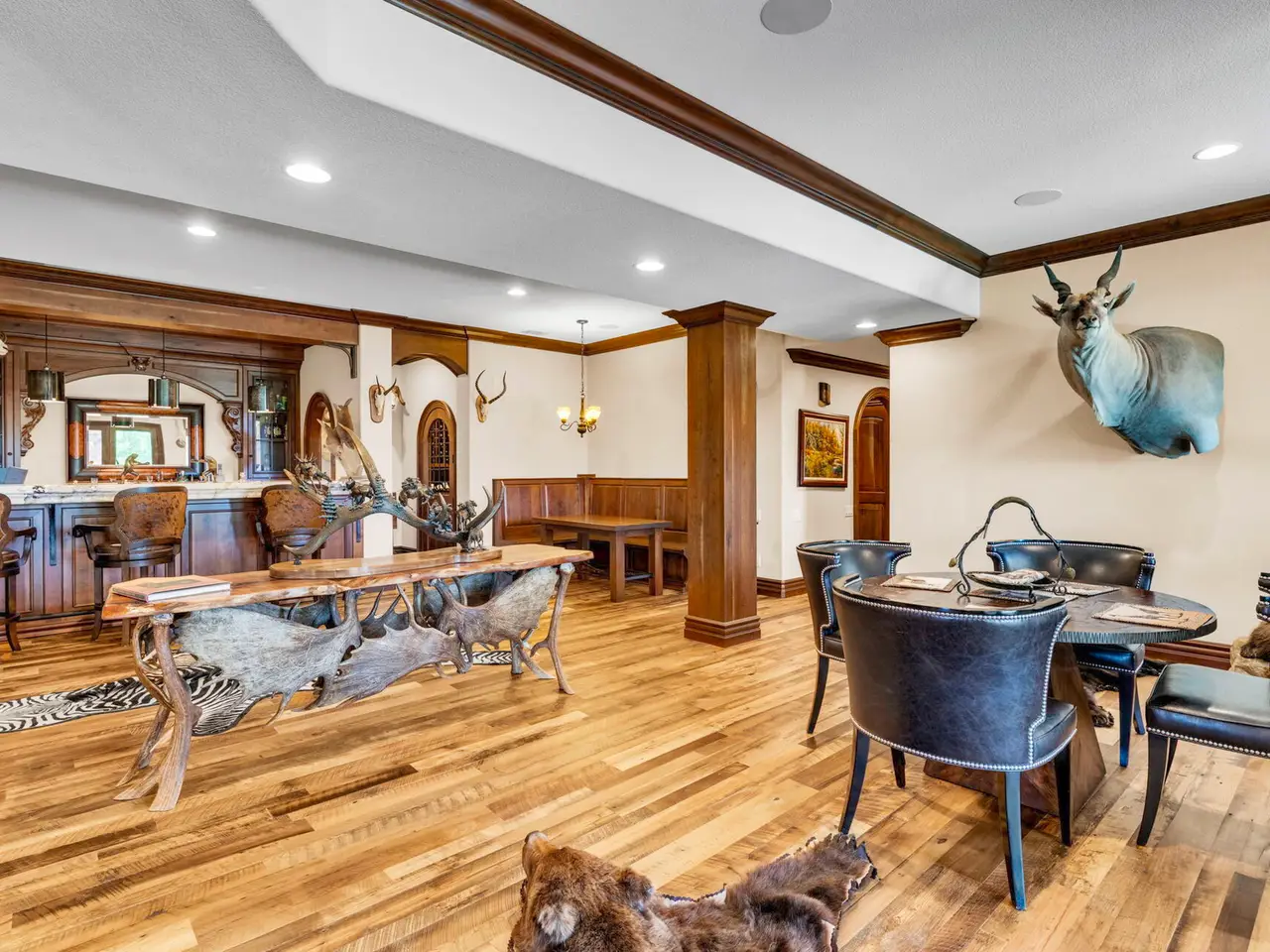 • Custom-built bar with rich detailed wood carvings