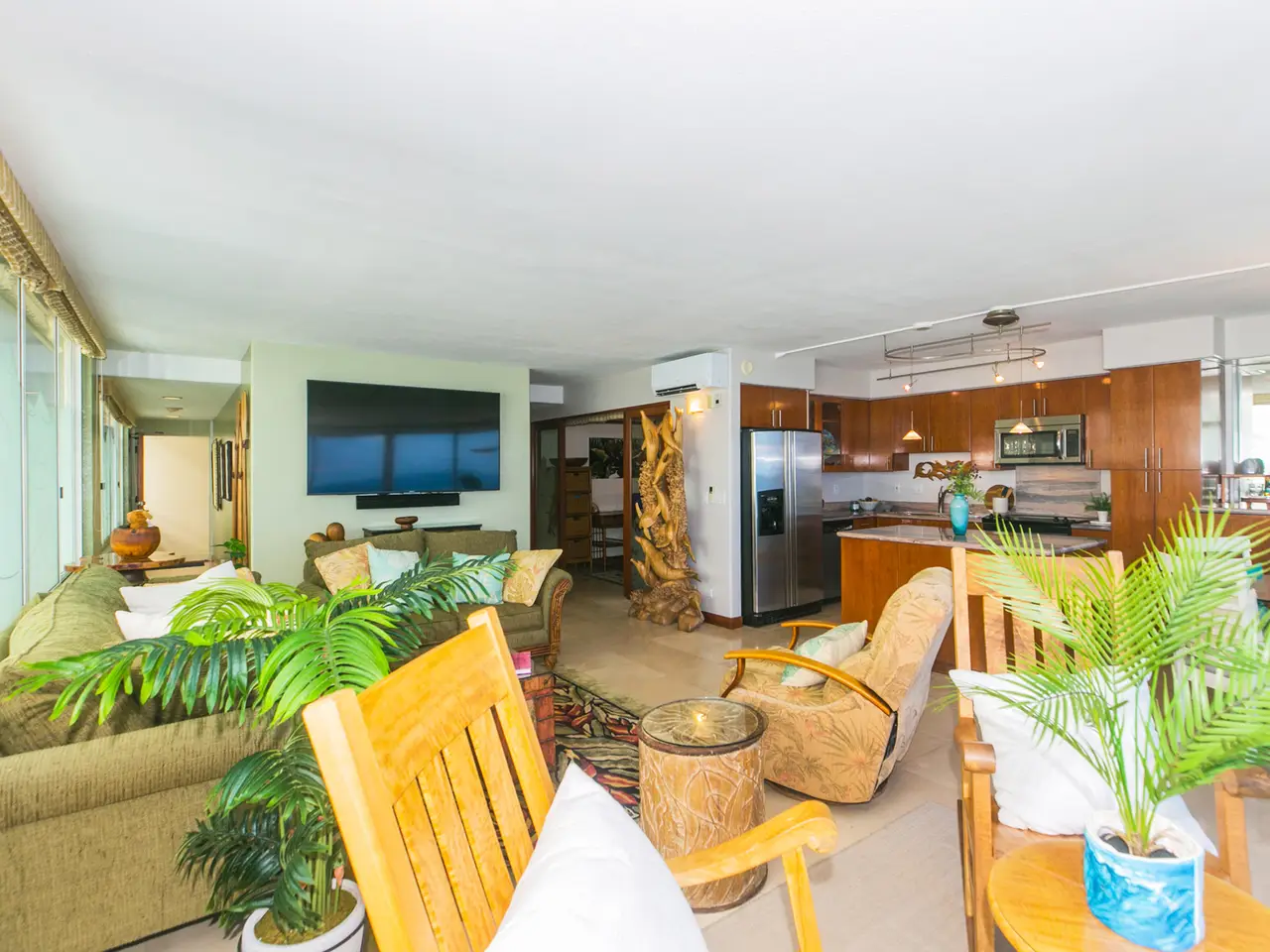 FEE SIMPLE DIRECT OCEANFRONT TWO BEDROOM TWO BATH FULLY AIR CONDITIONED UNIT. PARKING STALL COVERED AND SECURED.NICE SMALL BEACH AND NICE SWIMMING AREA OUTSIDE SECURED BEACH GATE. COMPLETING BOTH NEW ELEVATORS NOW. RESIDENT MANAGER LIVING ON SITE. NICE BUILDING OFFICE BY FRONT DOOR AND ENTERPHONE. VERY QUIET UNIT WITH SUNSET YEAR ROUND. TWENTY FOUR FEET DIRECT OCEAN GLASS VIEW FLOOR TO CEILING. HIGH TIDE WITH SURF TOUCHES THE SEAWALL UNDER YOUR TOES WHILE WATCHING WHALES, DOLPHINS AND ALL THE OCEAN RECREATIONAL ACTIVITIES. FULL SIZE WASHER AND FULL SIZE DRYER SIDE BY SIDE. NEW TWO ELEVATORS, AGENT/OWNER OCCUPIED.