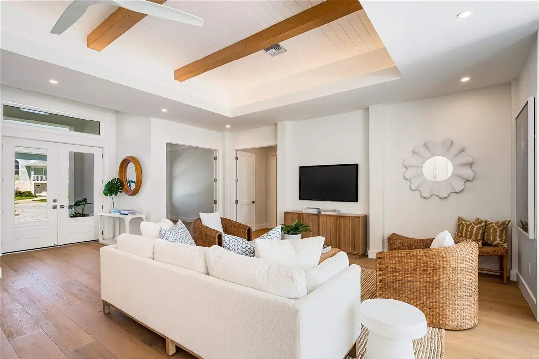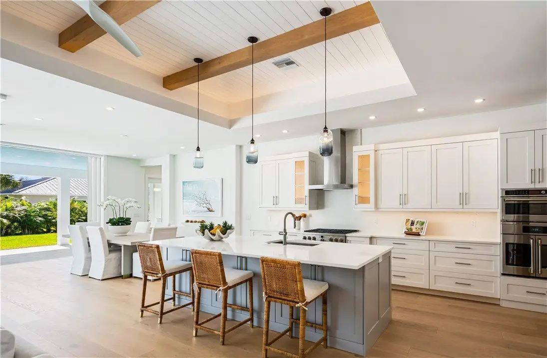 Ideally located east of A1A, this newly constructed home is just one block from the beach! Offering 3BR/3BA + office/den, custom finishes, impact windows/doors, and loads of natural light. The chef's kitchen has quartz counters, Cafe appliance package, custom cabinetry, a wine bar, and butler's pantry. The private primary suite includes a spa-like bath and pool access. Enjoy year-round outdoor living with a covered lanai, inviting pool/spa. Quality construction in a desirable location near beaches, dining, parks, and boutique shopping along Ocean Drive. TCBA Grand Award Winner 2025!