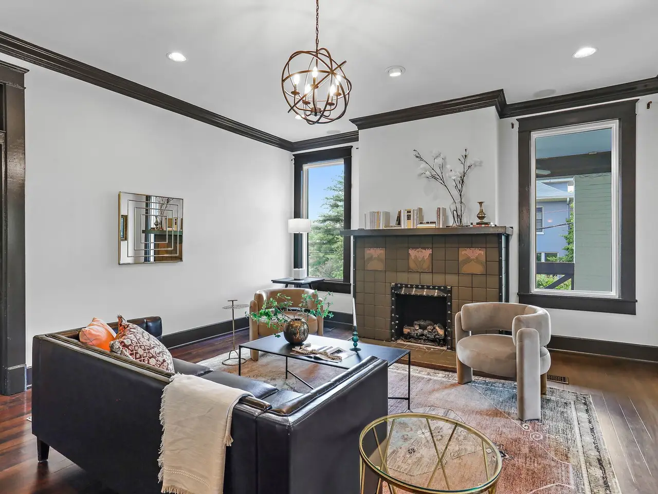 • Hand-painted Minton tile fireplace