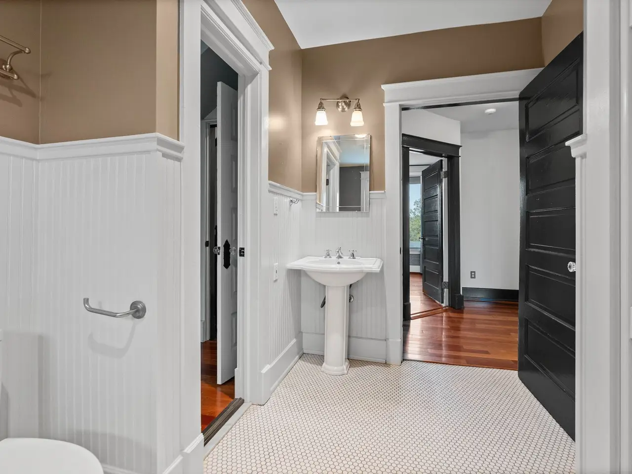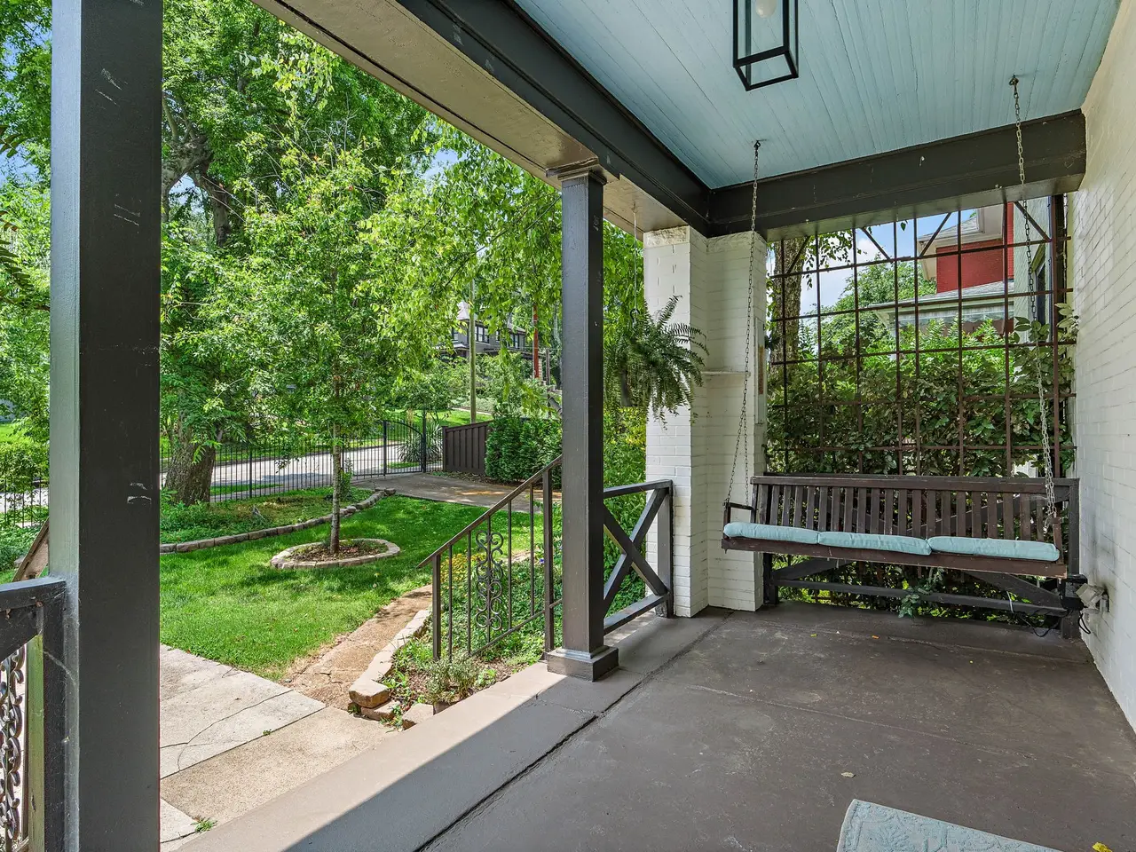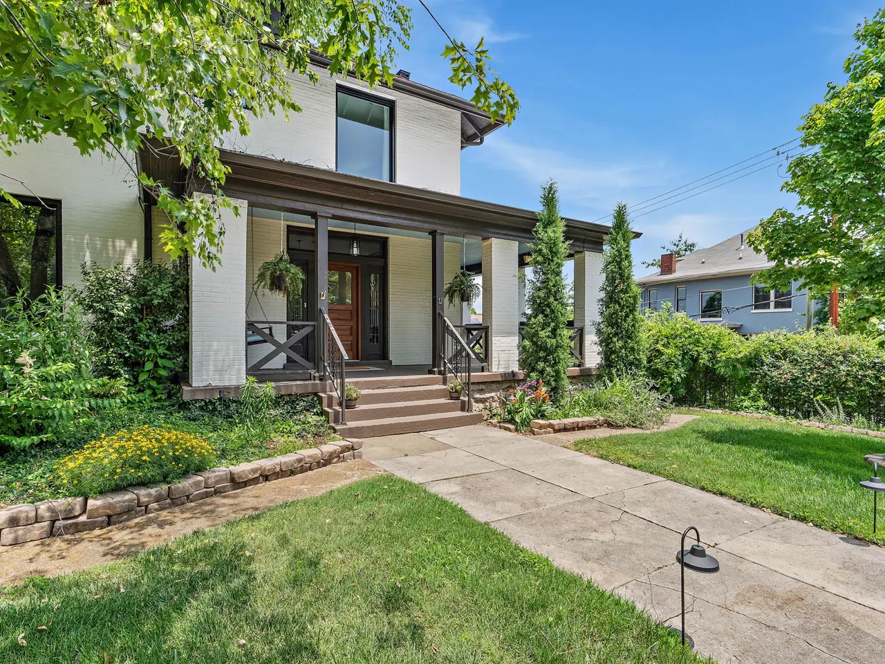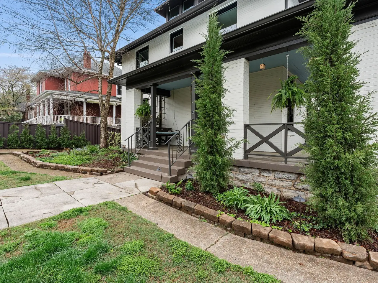 This stunning 1920s American Foursquare is one of Nashville's true historic gems. Rich with original character and timeless charm, it has been lovingly preserved to maintain its architectural integrity while offering modern comfort. From the inviting front porch to the intricate millwork, rare hand-painted Minton tile in the front room fireplace and solid African cherry hardwood floors, every detail tells a story. Nestled in Belmont Hillsboro, one of the city's most coveted neighborhoods, it's just a short walk to vibrant restaurants, boutiques, parks, and renowned universities. This historic treasure has been thoughtfully restored and updated with meticulous detail to include new roof (2023), brand new high-end energy efficient windows throughout and much more. Rare 2-car attached garage with alley access and motorized gated entry, as well as a gated entry from Blair Blvd. In addition to the two-car garage, you have space to park two cars off-street without blocking driveway, something not too common in this area. There's even a hidden safe room for additional security or for storing valuables. The entire property is secured with perimeter fencing and a customized hard-wired video security system. Home is currently set up as a four bedroom but could easily be configured for 5 or even 6 bedrooms. There are technically two primary bedrooms, the one on main level is currently used as a den off of the kitchen. Whole house generator system connected to city natural gas lines will run all four floors including appliances. The ground level has its own private entrance and had been used as a recording studio and offices with an isolation booth remaining. Could be used as a recording studio or easily converted to additional living space. This is a rare opportunity to own a piece of Nashville's history in a location that perfectly blends classic elegance with urban living. Timeless, walkable and undeniably special!