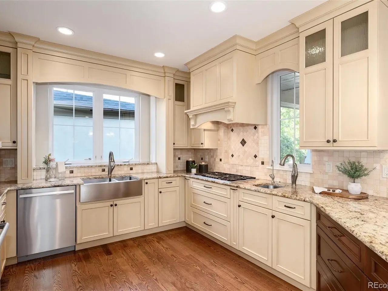 Welcome to this stunning 5-bedroom, 5-bath Craftsman-inspired home in the heart of Lowry, ideally positioned on an expansive 8,988 sq ft lot directly across from Crescent Park! With 5,485 sq ft of luxurious living space & a highly functional floor plan, this beautifully maintained residence is designed for both comfortable everyday living & effortless entertaining. A large wraparound front porch sets the tone for the timeless charm & modern comforts you’ll find inside. Step through the gracious foyer w/ soaring two-story ceilings into the inviting living room, where oversized glass doors open to the porch & a stone-surround fireplace adds warmth & character. The living room flows seamlessly into the gourmet kitchen, appointed w/ Thermador stainless appliances, a Liebherr refrigerator, Euro-style cabinetry, granite counters, prep sink w/ reverse osmosis faucet, & a large walk-in pantry. A cheerful breakfast nook opens to the backyard patio, while the butlers pantry w/ wet bar & wine cooler connects to the elegant formal dining roomperfect for hosting gatherings large or small. Additional main level highlights include a spacious study, mudroom w/ custom built-ins, a laundry room, and convenient access to the oversized 3-car garage. Upstairs, the serene primary suite overlooks Crescent Park and offers a sitting area with fireplace, spa-like bath, and a generous walk-in closet. A sun-filled loft and two spacious bedroomseach with its own ensuite bathcomplete the upper level. The finished basement impresses with tall ceilings, a large family room, two additional bedrooms, a full bath, and a versatile bonus room. Step outside to your private backyard oasis, featuring mature perennial gardens, fruit trees, & a generous patio for year-round enjoyment. Perfectly located near Lowry Town Center, Boulevard One, top-rated public and private schools, Cherry Creek, Rose Hospital, and Anschutz Medical Campus, this home offers the best of central Denver living. WELCOME HOME!