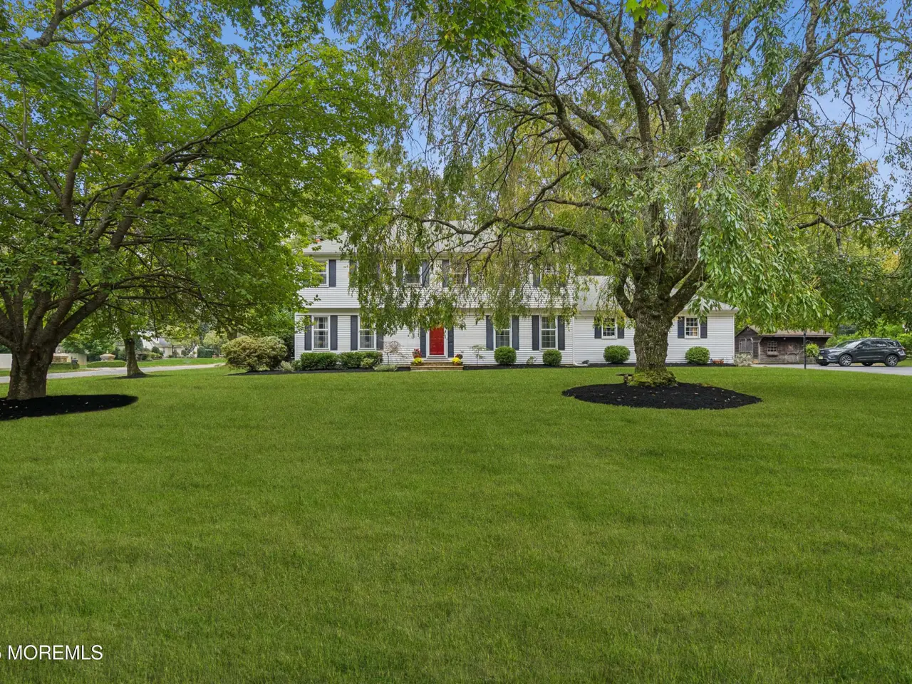 Welcome to this 4-bedroom, 2.5-bath Center Hall Colonial situated on over an acre of park-like property. This home offers a spacious living room, formal dining room, and an eat-in kitchen that opens to a cozy family room with a fireplace perfect for gatherings. The primary suite features a newer full bathroom with a soaking tub, shower stall, and a walk-in closet/dressing room. Enjoy the full finished basement, ideal for recreation or home office space. Step outside to your private backyard oasis with an in-ground heated saltwater pool. Additional highlights include a 2-car garage, ample storage, and a prime location near schools, transportation, major routes, shopping, dining, parks, and the Jersey Shore beaches. A must-see!