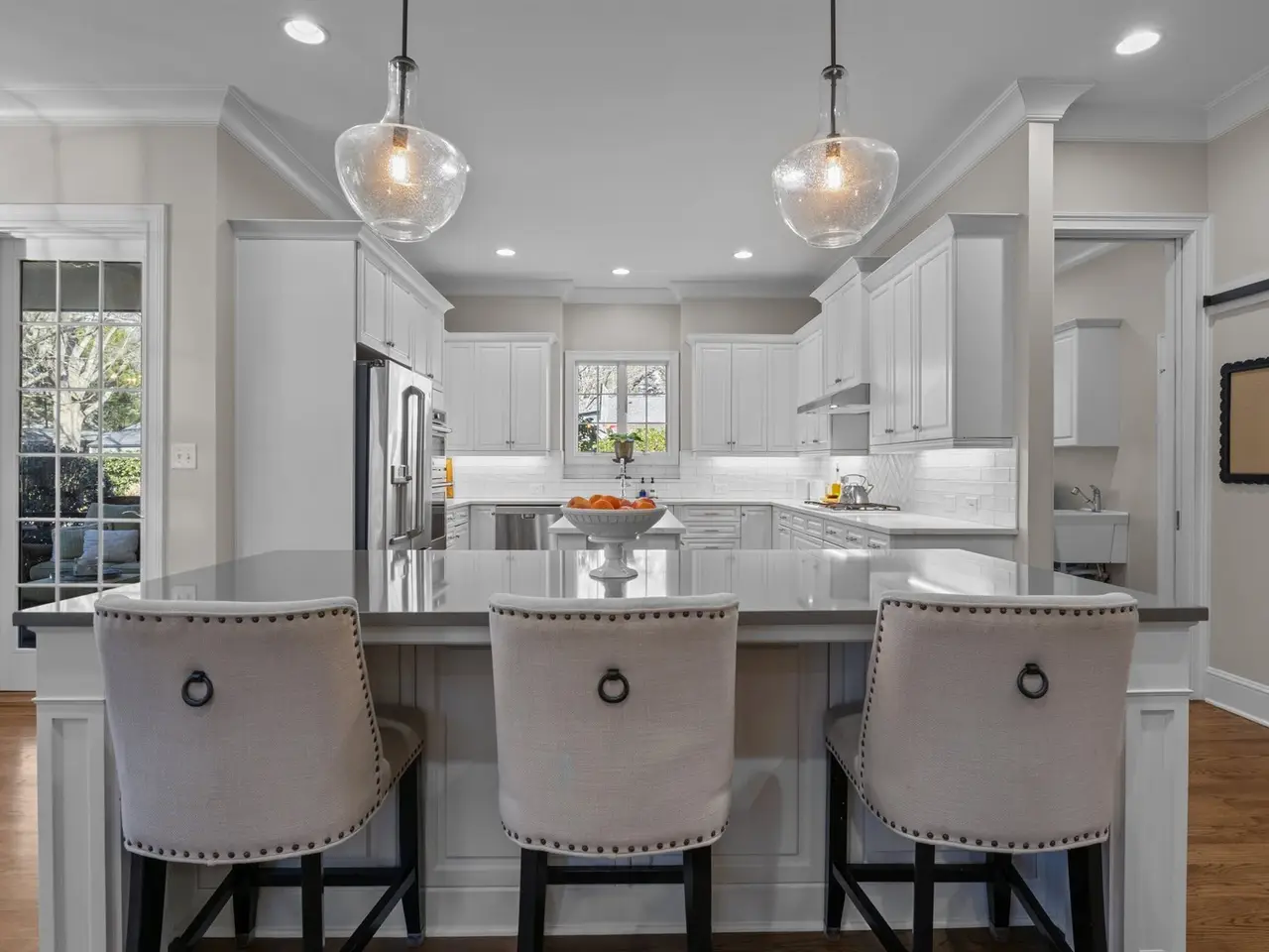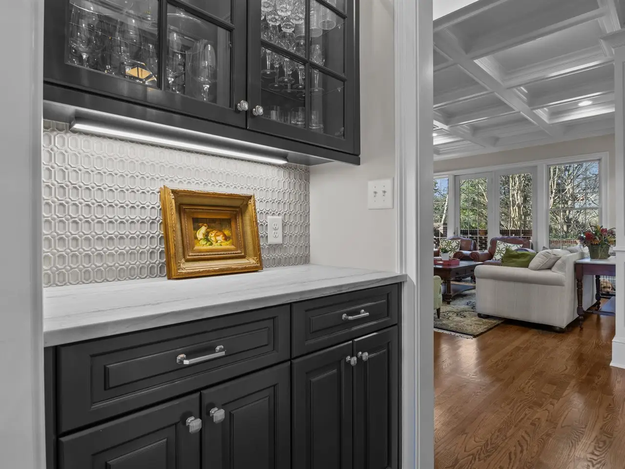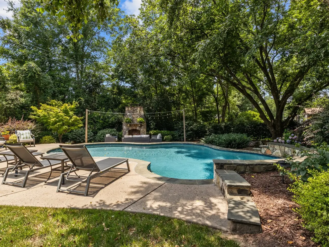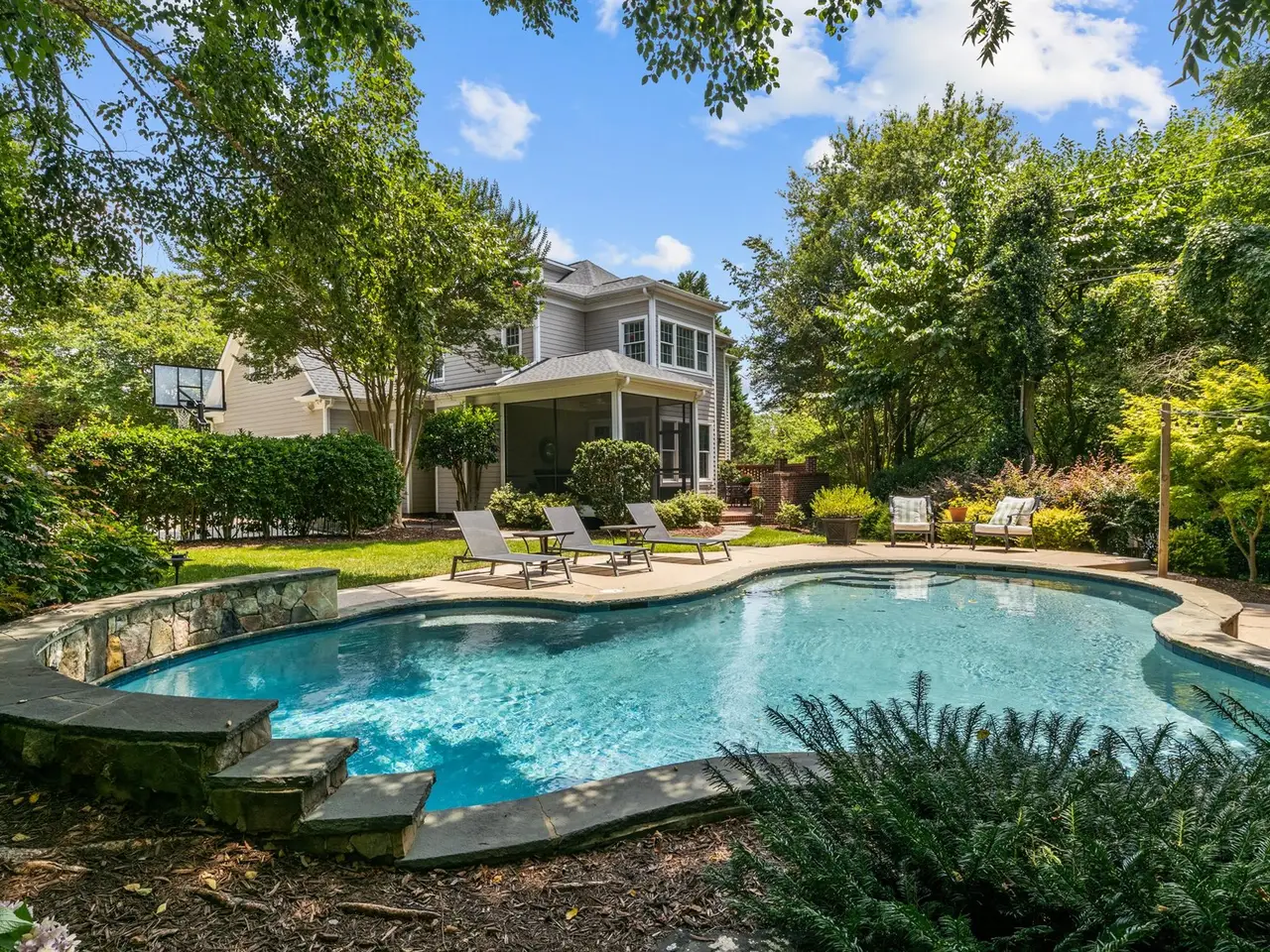 Nestled in the heart of Davidson, this exceptional home offers the rare opportunity to live just a short walk from charming shops, top-rated restaurants, and Davidson College. Thoughtfully designed with quality craftsmanship and superior finishes, this residence seamlessly blends character and modern convenience. Inside, you'll find an inviting open floor plan with abundant natural light, custom millwork, custom wine cellar, and hardwood flooring throughout. The chef's kitchen features a large quartz island, subway tile backsplash, and custom light fixtures - perfect for entertaining. The coffered ceiling great room serves as a stunning gathering space, while the spacious primary suite boasts a luxurious en suite bath. Step outside to enjoy the serene backyard, complete with a custom saltwater pool, exquisite decking, and professionally designed landscaping. Additional features include a two-car garage with epoxy flooring, ample storage, and a beautifully designed outdoor living space.