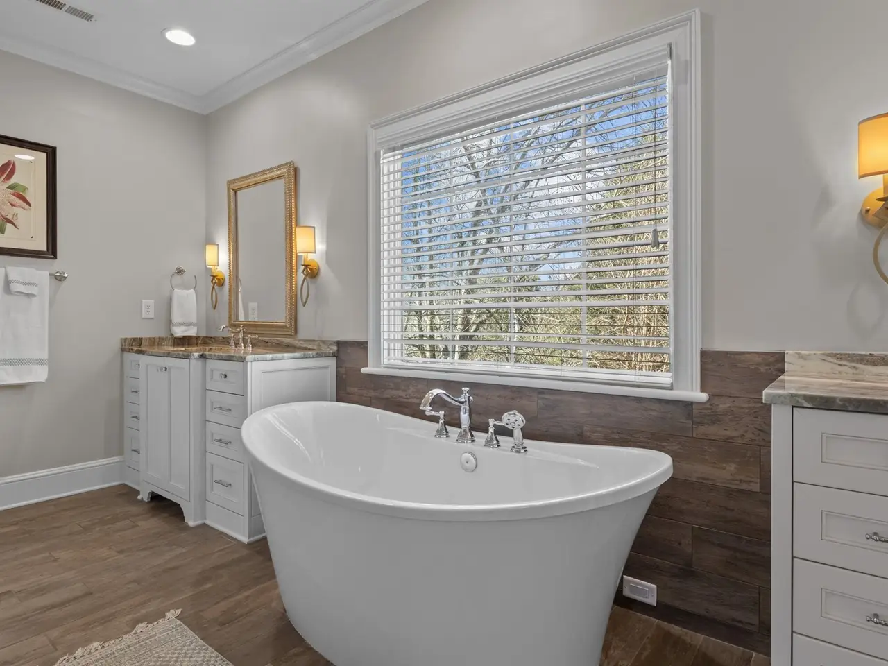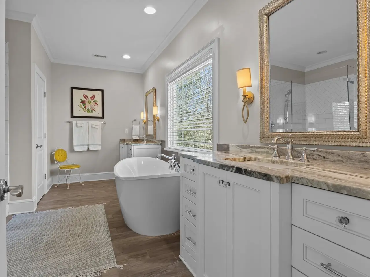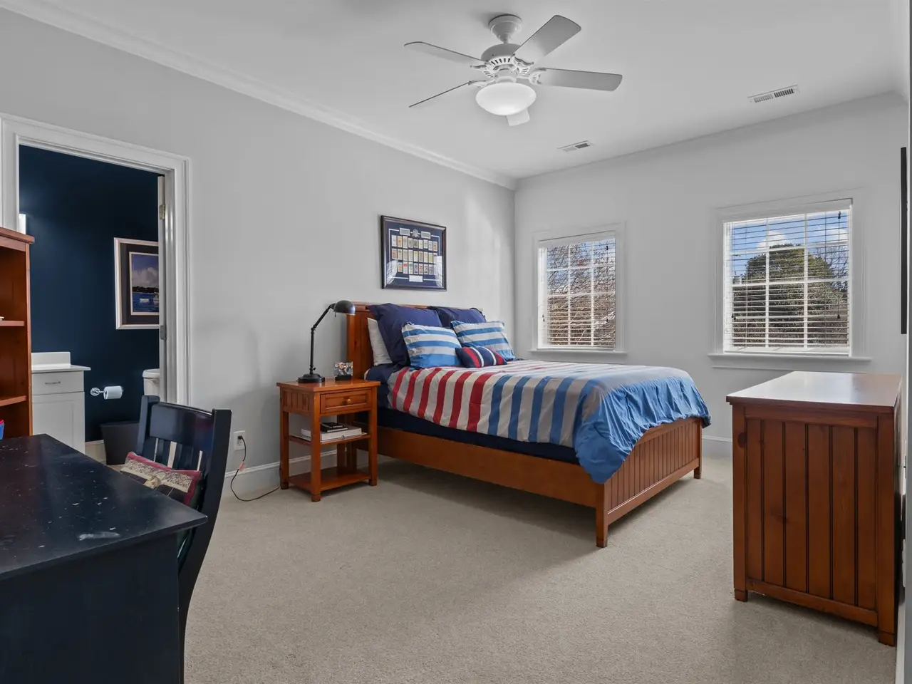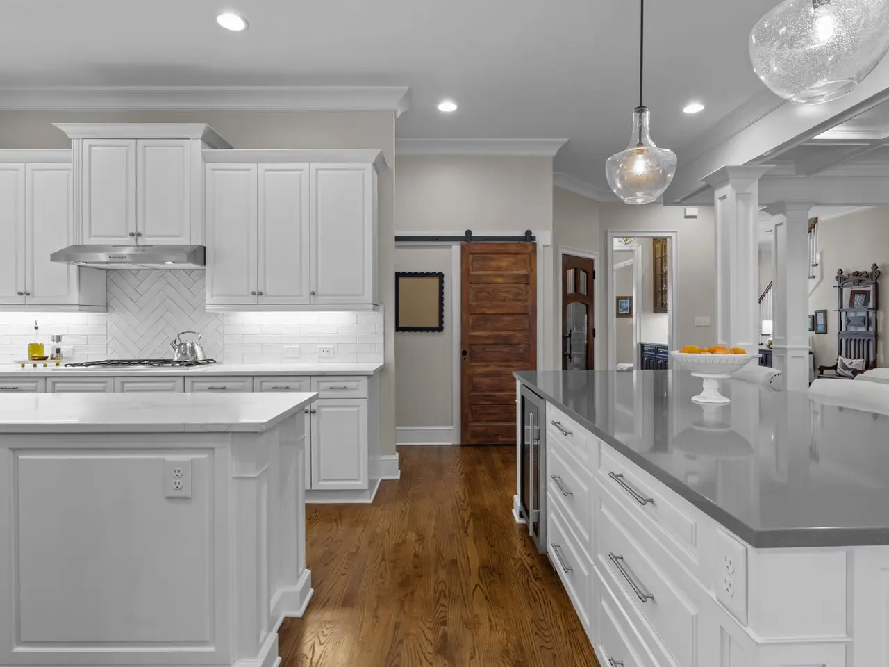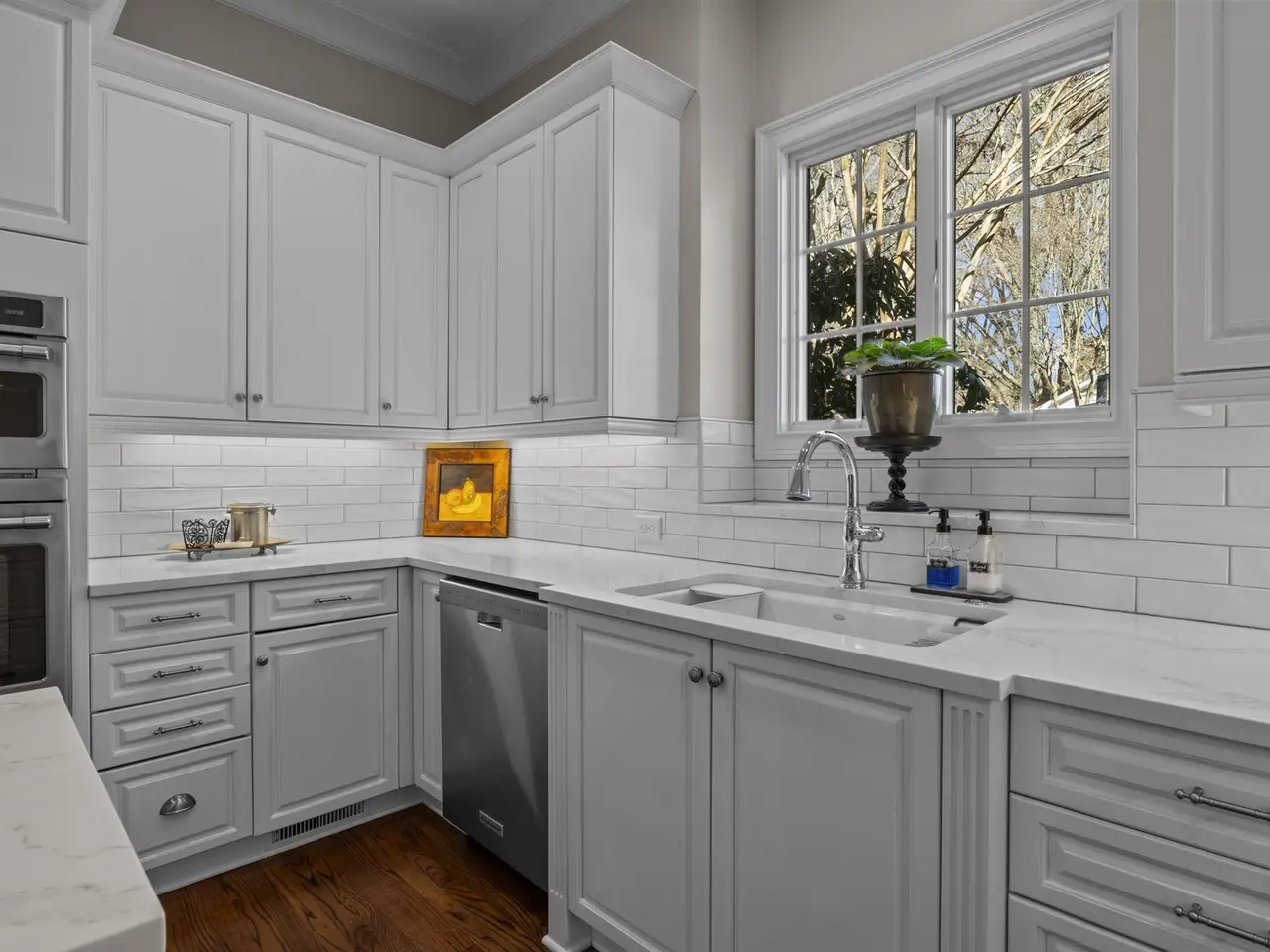 Nestled in the heart of Davidson, this exceptional home offers the rare opportunity to live just a short walk from charming shops, top-rated restaurants, and Davidson College. Thoughtfully designed with quality craftsmanship and superior finishes, this residence seamlessly blends character and modern convenience. Inside, you'll find an inviting open floor plan with abundant natural light, custom millwork, custom wine cellar, and hardwood flooring throughout. The chef's kitchen features a large quartz island, subway tile backsplash, and custom light fixtures - perfect for entertaining. The coffered ceiling great room serves as a stunning gathering space, while the spacious primary suite boasts a luxurious en suite bath. Step outside to enjoy the serene backyard, complete with a custom saltwater pool, exquisite decking, and professionally designed landscaping. Additional features include a two-car garage with epoxy flooring, ample storage, and a beautifully designed outdoor living space.