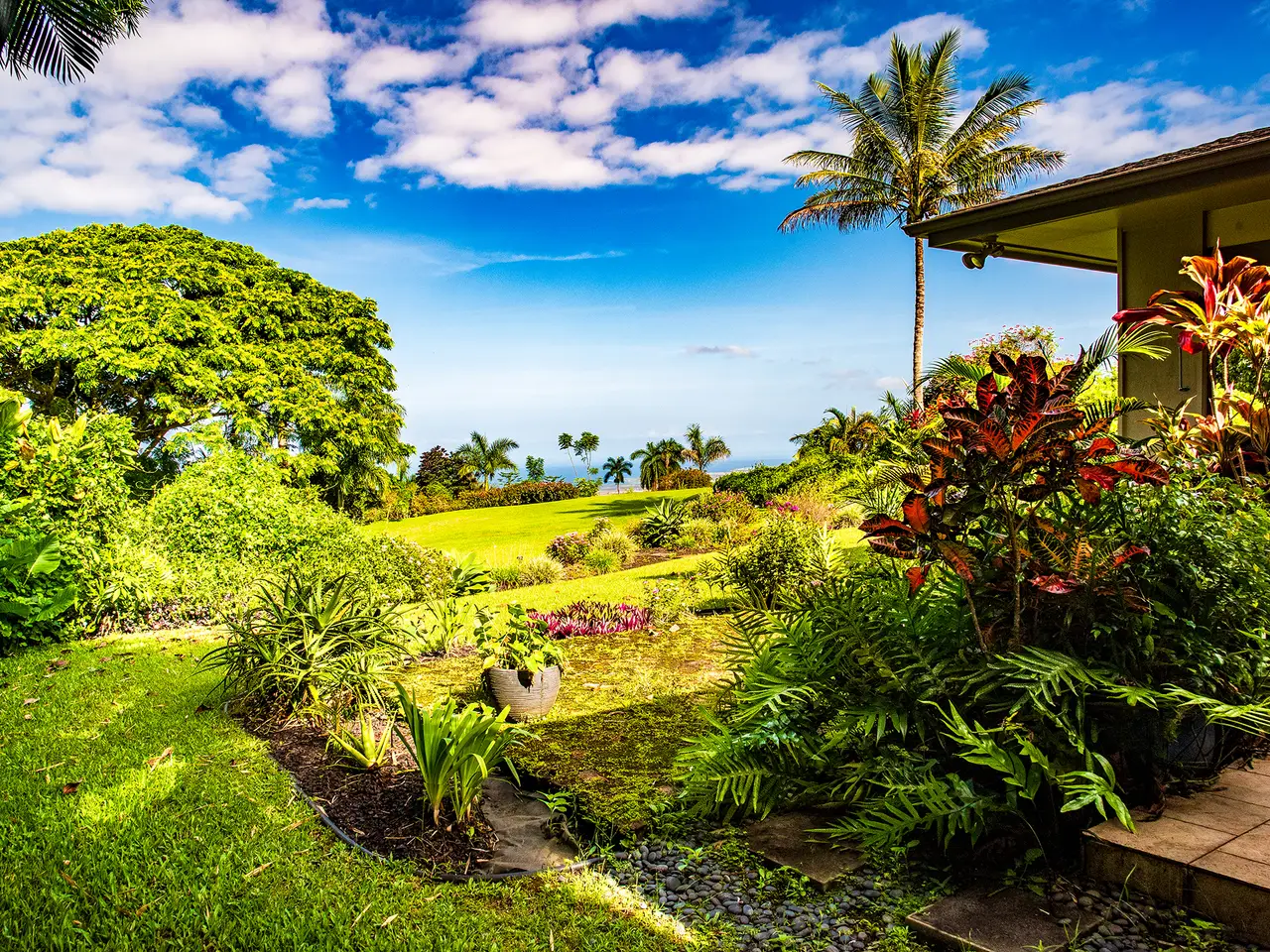 Serene Custom home on acreage with ocean views, parklike grounds, just 1 mile to Holualoa Village! This property has it all, custom home with two suites, huge covered lanai, detached garage with two extra rooms, for whatever your needs are! Located in a very small four-home subdivision, NO HOA dues, less than a mile to Holualoa Village and 10 minutes to downtown Kailua-Kona! Lush expansive grounds with Tropical flora, avocados, citrus, cacao, bananas, you name it, it will grow, super private and very quiet! Seller wants to help you buy and he giving a Buyer Concession of $25,000 at closing!