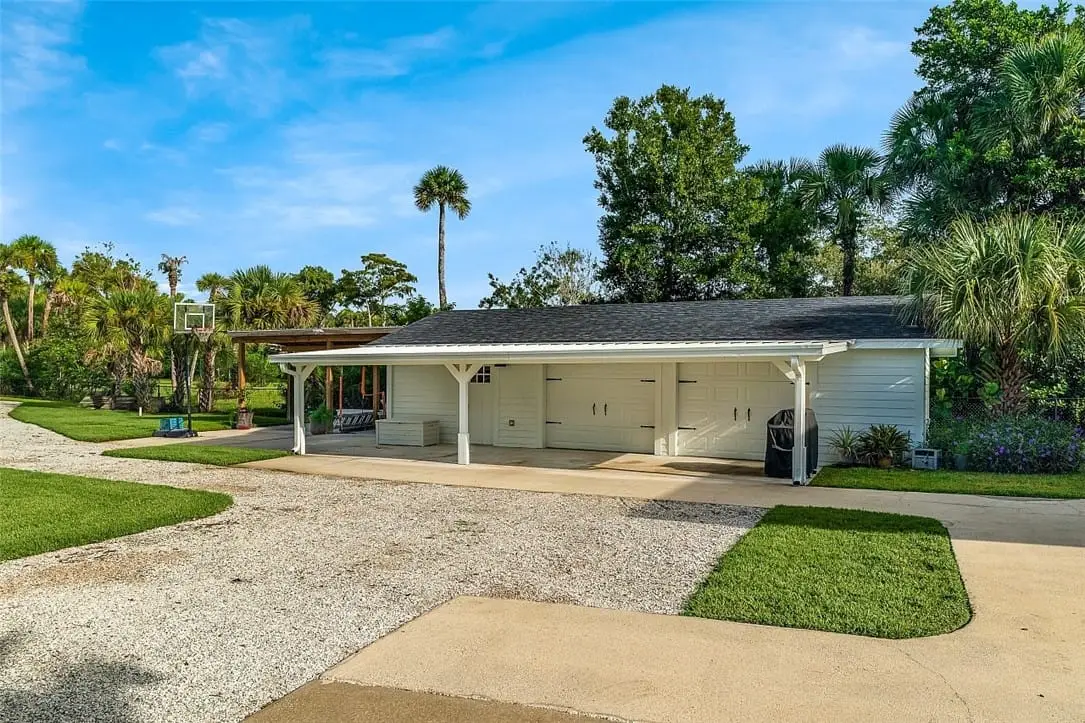 Sensational Direct Riverfront Home on Nearly three Acres! This home has been completely remodeled with attention to every detail. Enjoy the serene intercoastal views from the first-floor primary suite, open concept main living area and kitchen. The two guest bedrooms on the second floor share a jack-n-jill bathroom and provide more idyllic views. Properly enjoy the natural setting with space for all of your toys, including an 800 square foot garage/workshop, three RV hookups, a stocked pond, and a dock with a 10,000lb lift, all in a non-HOA community just minutes from the Inlet. Room sizes are approximate.