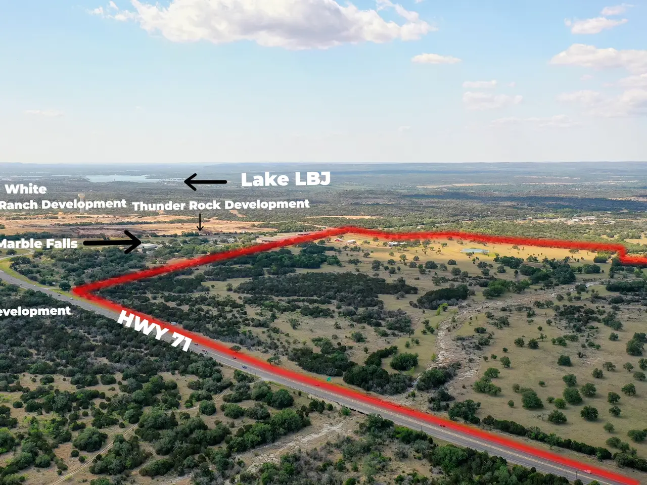 3923 U.S. 281, Marble Falls, TX 78654 +/-288 acre Development Opportunity on the Corner of Highways 71/281, +/- 3,840® on Hwy 71, +/- 100® on Hwy 281, Burnet County, Marble Falls This 288-acre site, strategically located on the corner of Highway 71 and 281 represents a prime development opportunity just outside of Marble Falls, Texas. The site is currently used as a family, legacy-ranch, held within the same family since the mid-1800®s. The ranch enjoys an ag-evaluation, leased for cattle grazing and is home to various exotics including Scimitar Oryx, Nubian Ibex and Markkhor Goats. Additionally, the ranch has Blackbuck, Axis, and free range Texas Whitetail. Various pastures within the ranch are high-fenced, while the entire exterior of the property is low-fenced. As you enter the ranch through a custom rock gated entrance with cattle guard, there are two homes, a custom built 1 bedroom, 1.5 bath ranch main house, with approximately 3,600sqft. built in 2020 and a custom built 3 bedroom, 2.5 bath, 3,400sqft. guest house that was fully remodeled in 2017. The homes overlook a pool with a 10-person hot tub, outdoor kitchen, and seating/entertainment area. There are several improvements, including 2 water wells, a 36x48, 1,500sqft. horse barn, with tack room, office and 4 stalls, a 50x100, 5,000sqft. equipment barn with 5 roll-up doors, full bathroom, and 2-15x48 lean to structures. The ranch features Flatrock Creek that runs through the property, and a spring that has produced nice flow since the owners can remember, with a large man-made stock pond holding bass, catfish and perch. This ranch has an above ground garden, chicken coop, working cattle pens, feeders and deer blinds. This ranch has been cleared in various areas to emphasize the beauty of the mature live oak trees, pecans trees, and native trees. The property has rolling hills, far-reaching views, open pastures, and hill tops, and has views of Downtown Marble Falls and Shovel Mountain. Location: 6 minutes from Marble Falls, 45 minutes to Austin, 1.15 minutes to San Antonio Marble Falls, nestled in the Highland Lakes area, is known for its stunning lakes like Buchanan, Inks, LBJ and Marble Falls. The community is buzzing with new developments, including expanding residential neighborhoods, infrastructure improvements and a revitalized downtown. - 10/31/2025 8:00:54 AM