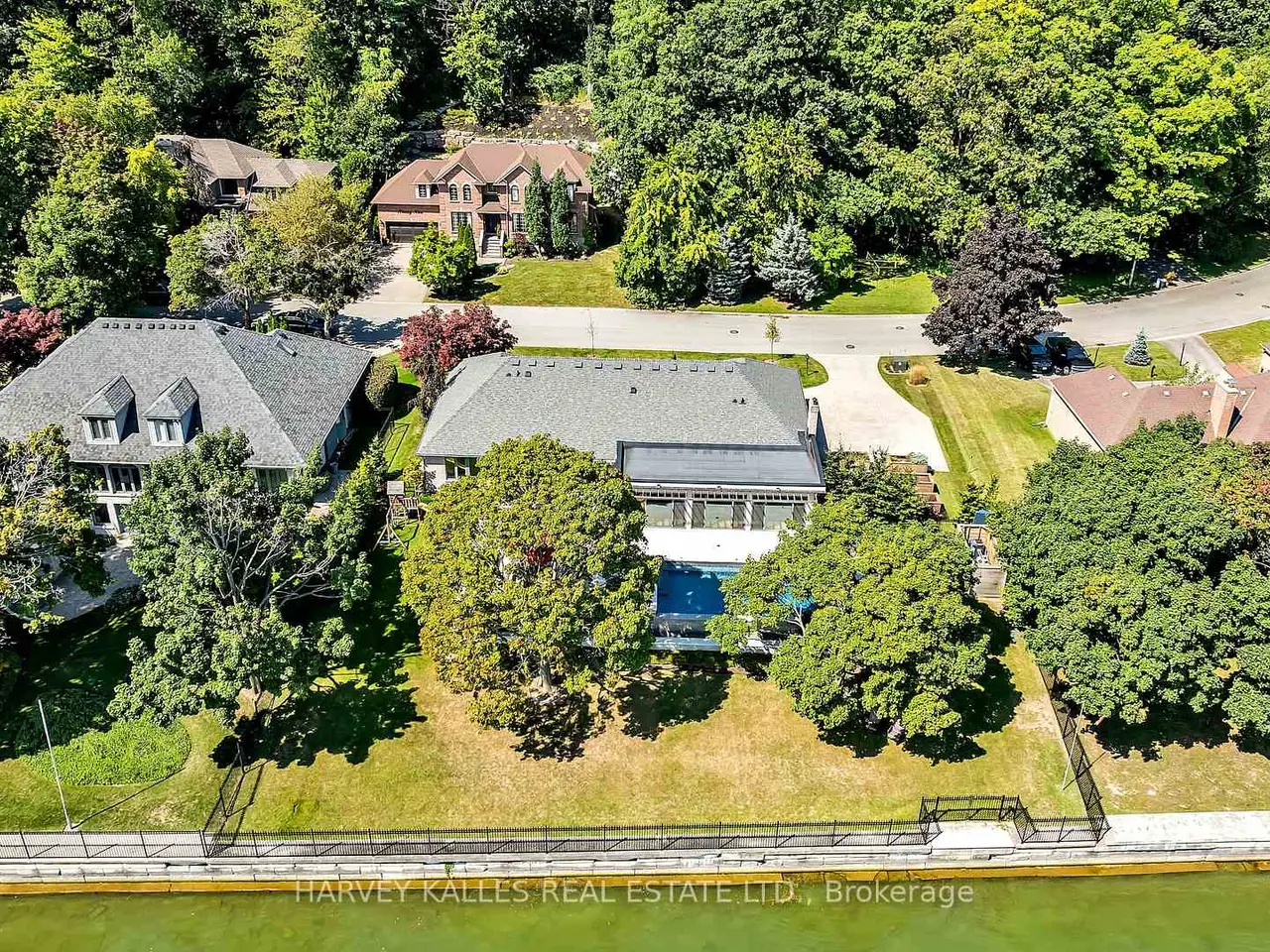 Exclusive ultra-private, this street is home to many of Canada's most prominent families. Located on the shores of Lake ON it has almost an acre, with Burlington and Oakville mins away. The multi-million reno on this bungalow has transformed it into open concept west coast modern aesthetic using natural materials of wood, marble, stone and granite. The architecture embraces the natural setting offering multiple glass walk-outs to the water and views from all the principal rooms. The hot tub, pool with infinity edge overlooking the Bay is irresistible! One a few properties that are allows for a dock. Imagine, after work, you pop into your boat or kayak for a quick work out before slipping into the hot tub. The Great Room has a book matched marble floor to ceiling marble fireplace that is calling for a roaring fire on a winters night. The Observatory Room is special place, whether it is evening drinks or morning cappuccino you will find yourself drawn to sit and watch the lake. **EXTRAS** Air exchanger, Alarm system. Separate heating controls, hot water tank & Irrigation system.