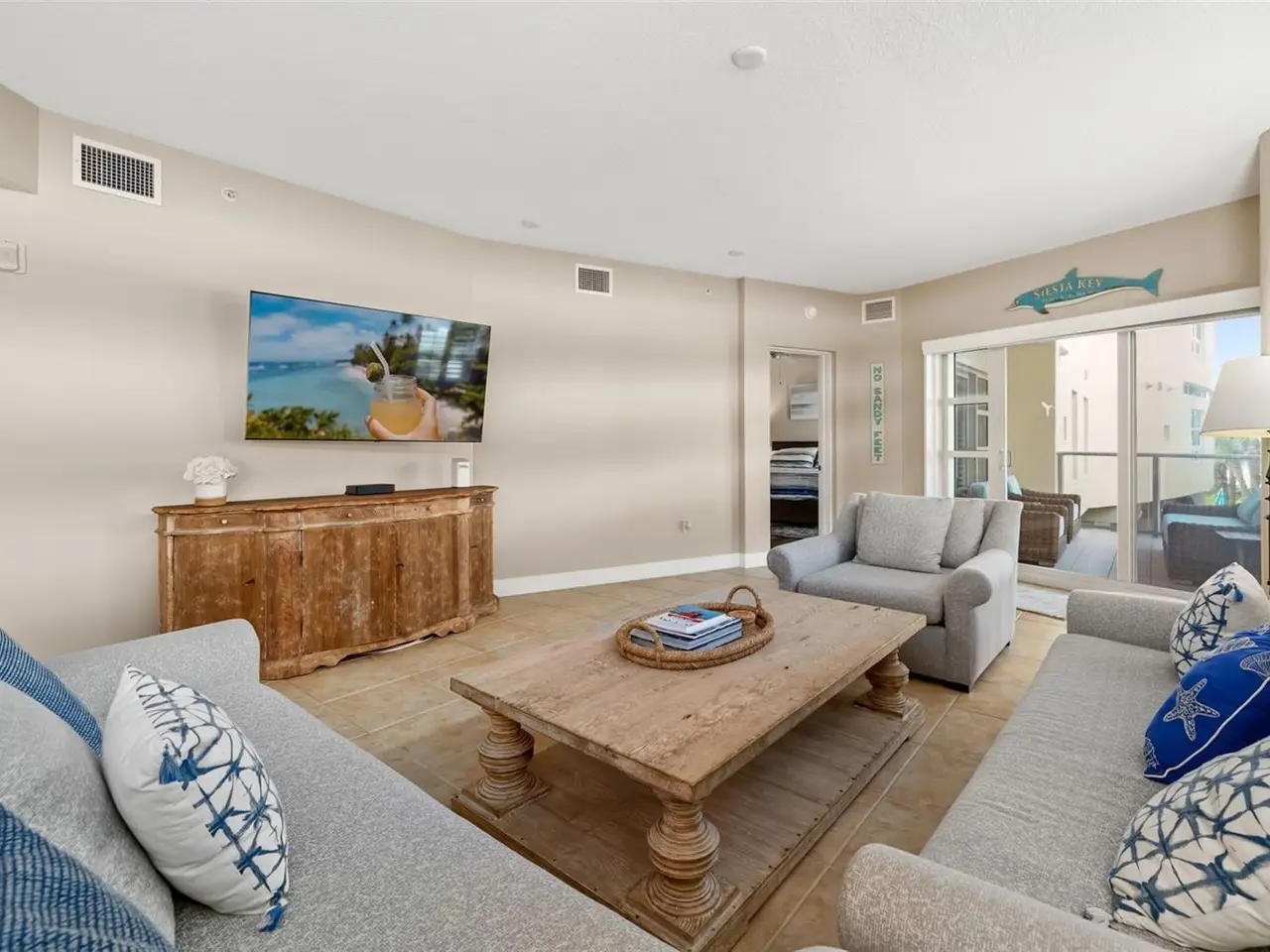 Breathtaking and poised alongside Crescent beach on Siesta Key, discover the rare opportunity to own a spacious beachfront condo that combines contemporary design, durability, and pet-friendly living. With only 26 residences in the community, the Crescent offers an intimate, exclusive lifestyle with an eye-catching façade and meticulously maintained grounds that stands out amongst the adjacent communities. The exterior elegance is paired perfectly with an exceptional, 1,883 square foot interior featuring neutral tones, luxurious furnishings and delightful coastal charm. Three bedrooms and a den afford you the ability to entertain your family and friends with ease while the generous designer kitchen and open concept living area allow you to enjoy every moment and memory of your festivities. Step outside to savor the sea breeze on either one of your two terraces, one with views of the crystal blue waters of the Gulf and the other with a built-in gas grill overlooking the dazzling mid-complex pool. Saunter to the gulf front pool, situated at the western edge of the property, featuring luxury loungers and a soothing whirlpool hot tub. You will feel the difference of the interior luxury finishes while enjoying top of the line amenities including an onsite property manager, social room, modern fitness center, two covered parking spaces, e-vehicle charging stations, an engaged and active homeowner’s association, and professional, onsite rental management. One of the most coveted features of this property is its welcoming pet policy, allowing up to two pets, making it the perfect haven for those that want a beachfront lifestyle that includes the four-legged family members! Location matters on Siesta Key, and this one is considered one of the best. Positioned just across the street from the ‘south village’ is the convenience of grocery, dining, coffee and donut shops, shopping and beach vehicle and equipment rentals. Whether as a primary residence, a vacation retreat, or an investment property, this condo offers a blend of modern comfort, storm-ready construction, and exceptional space all on Siesta Key, Florida’s premier gulf coast destination.construction, and exceptional space all on Siesta Key, Florida’s premier gulf coast destination.